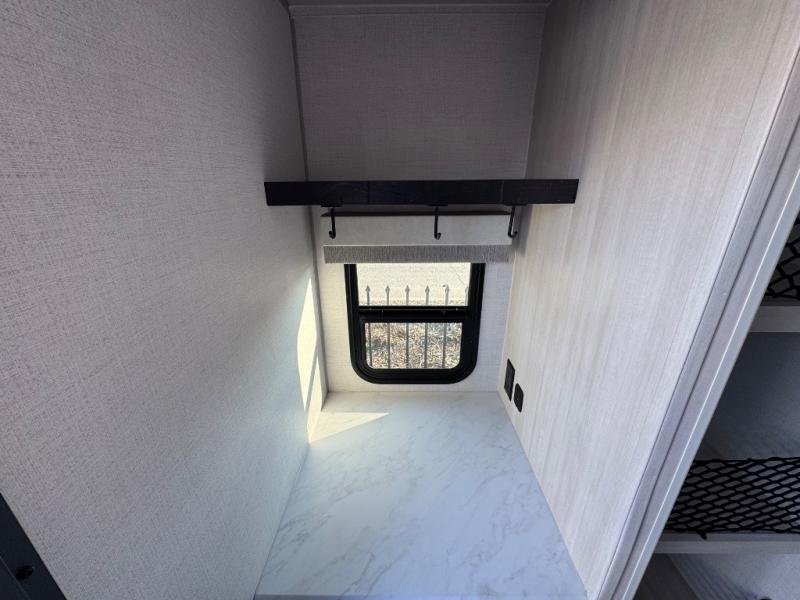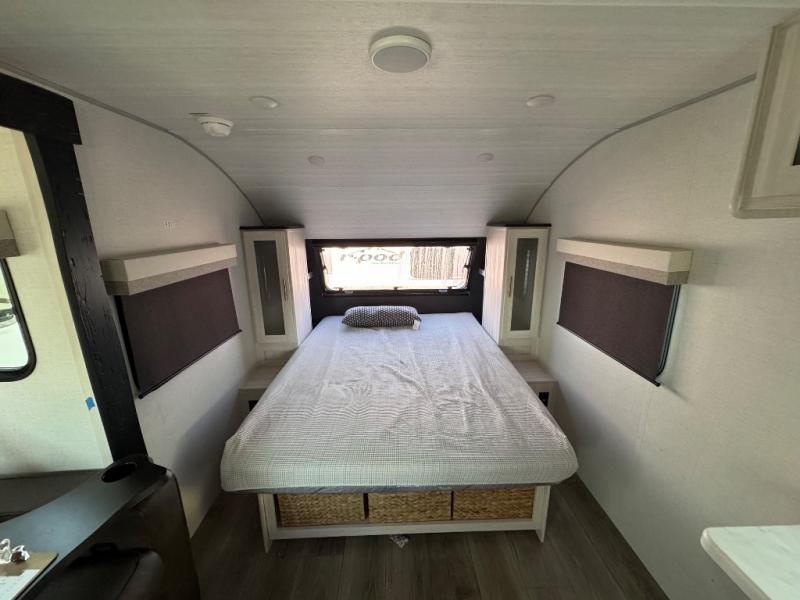With any R-Pod travel trailer by Forest River, you will enjoy affordable luxury at the lowest tow weight in its class! There is a sealed underbelly with forced heat, a curved dual-pane acrylic front window with a bug screen and night shade, plus a large roof mounted solar panel for off-grid capabilities. The 15K A/C unit will keep you comfortable during the summer camping months, and the tankless water heater will provide endless hot showers after hiking, biking, swimming and more! Each model also includes a black glass friction hinge entrance door, roof ladder prep, exterior motion lighting, plus a hot and cold exterior spray port to wash off sand from the beach. Inside, you'll enjoy seamless Surf-X kitchen countertops, blackout roller shades, and a central vacuum system for hassle-free cleaning!