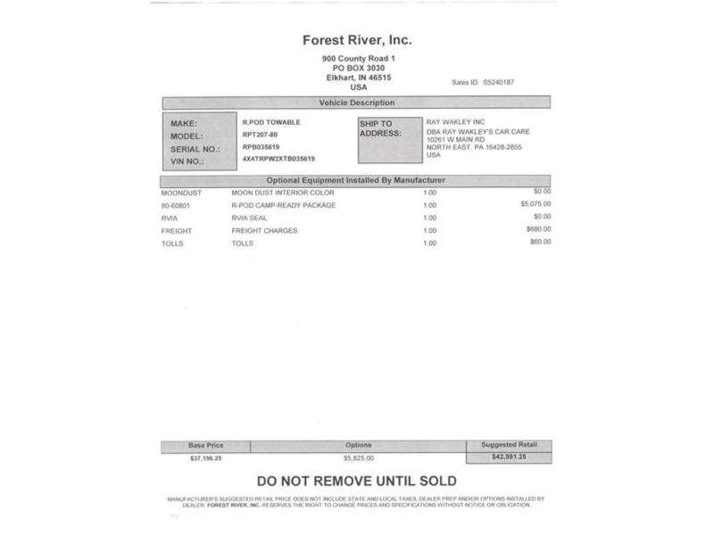 Meet the owner in Buffalo and talked to him and gave him a pair of gloves to dump his RV, what a pleasant guy to visit with. I would go in when I’m ready to buy. - Sheldon