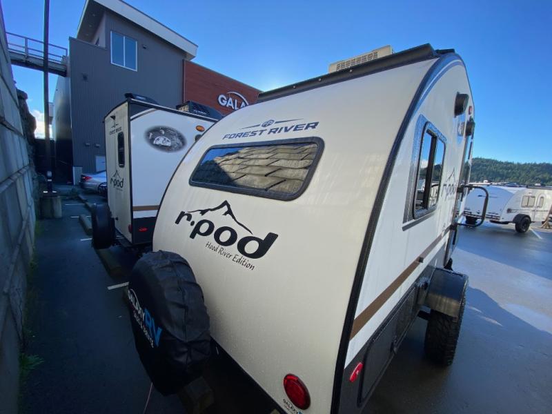 With any R-Pod travel trailer by Forest River, you will enjoy affordable luxury at the lowest tow weight in its class! There is a sealed underbelly with forced heat, a curved dual-pane acrylic front window with a bug screen and night shade, plus a large roof mounted solar panel for off-grid capabilities. The 15K A/C unit will keep you comfortable during the summer camping months, and the tankless water heater will provide endless hot showers after hiking, biking, swimming and more! Each model also includes a black glass friction hinge entrance door, roof ladder prep, exterior motion lighting, plus a hot and cold exterior spray port to wash off sand from the beach. Inside, you'll enjoy seamless Surf-X kitchen countertops, blackout roller shades, and a central vacuum system for hassle-free cleaning!