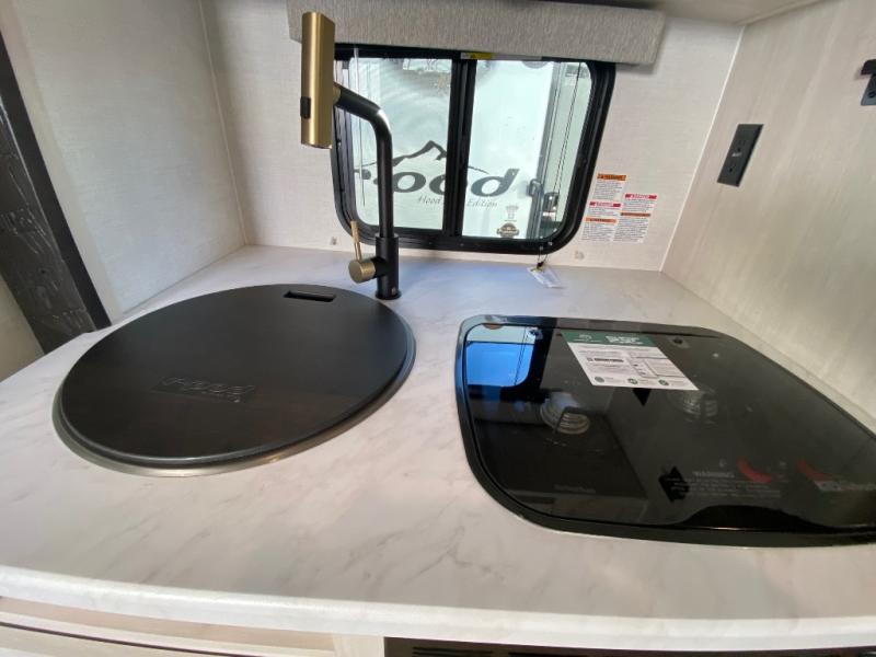 Get ready to travel just about anywhere with this lightweight travel trailer! This model is ideal for any couple. There is sleeping space on the front queen bed, and the booth dinette can easily convert into a sleeping spot for another tired camper. The slide out along the roadside helps open up the floor space, plus you will find all of the kitchen amenities here. The spacious full rear bath with a night light in the rear has plenty of room to easily get ready for any adventure that lies ahead. You will also enjoy all of the exterior storage for all of your outdoor camping gear. This model also includes the Hood River Edition that comes with Mud Legend all terrain tires with TPMS, a MaxxAir vent cover, and 12V tank heaters!