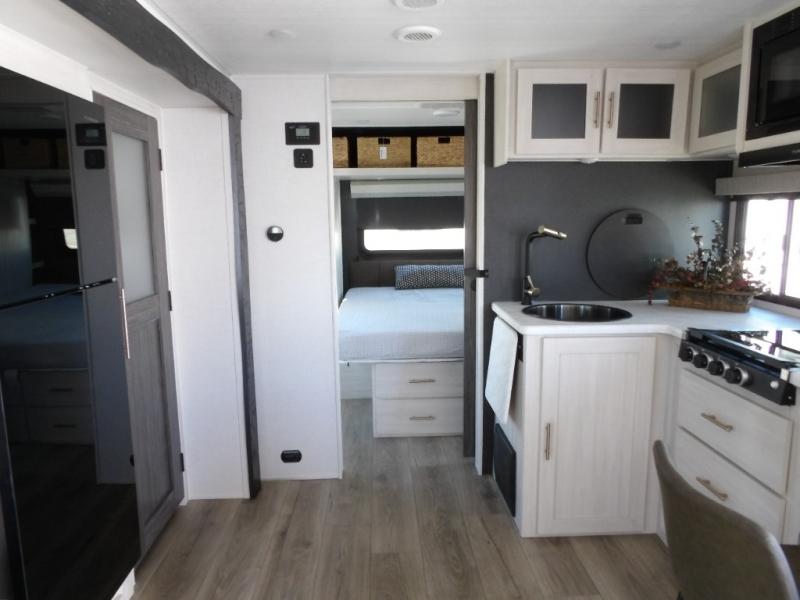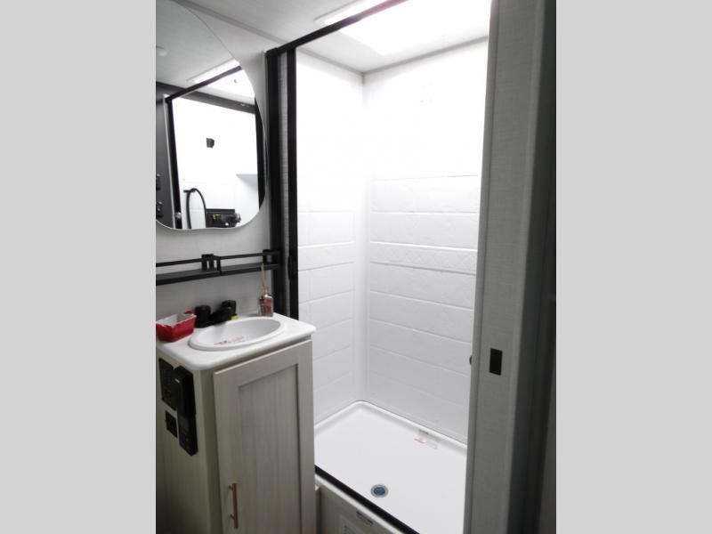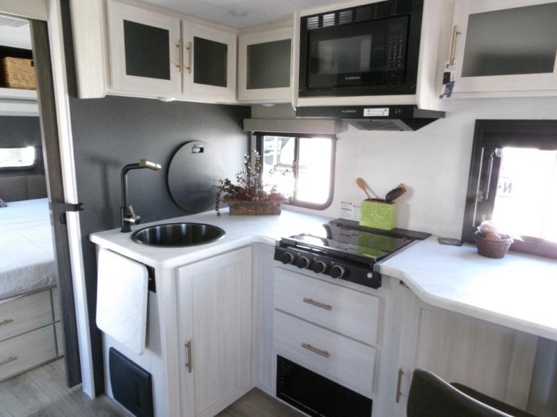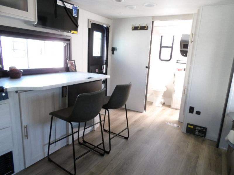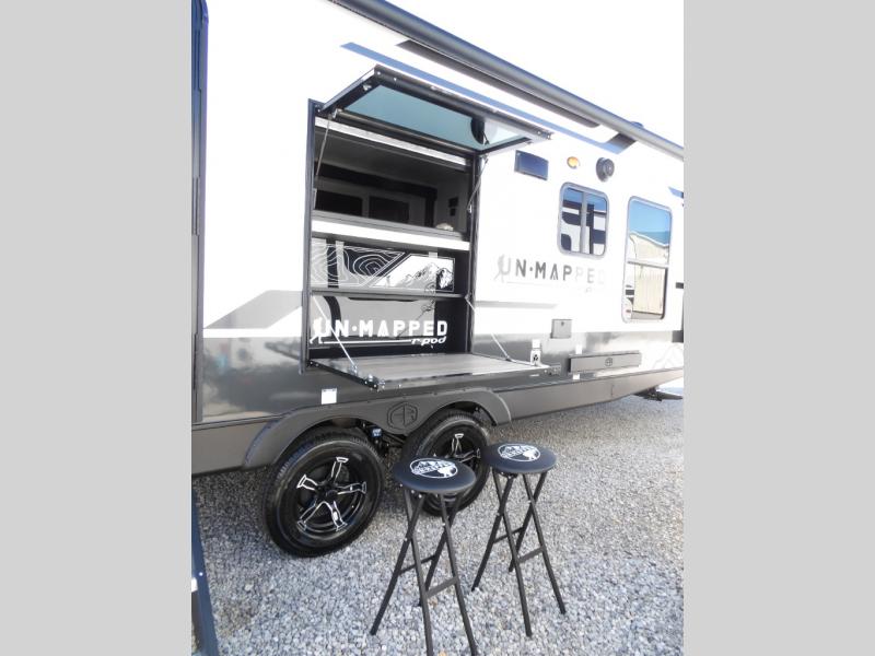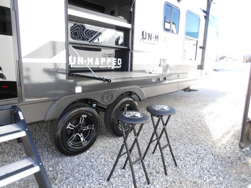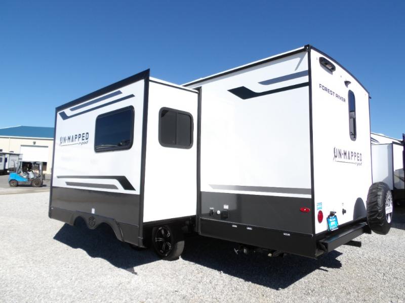 The Forest River Un-Mapped travel trailers deliver an unparalleled travel experience thanks to their incredible features, starting with the aluminum-framed floor with block foam insulation that ensures exceptional structural integrity and thermal efficiency, along with the sealed underbelly with forced heat & radiant foil barrier that provides superior insulation and heat management, and the power tongue jack facilitates easy maneuvering and stabilization of the trailer. Plus, the 30 Amp charge controller with solar inverter prep is ready for integration with solar power systems, catering to eco-conscious travelers seeking off-grid capabilities. Inside, you will find seamless Surf-X kitchen countertops that offer a sleek, durable surface and are easy to maintain for busy travelers. Further, the blackout roller shades will add privacy and light control for restful nights and cozy daytime retreats.