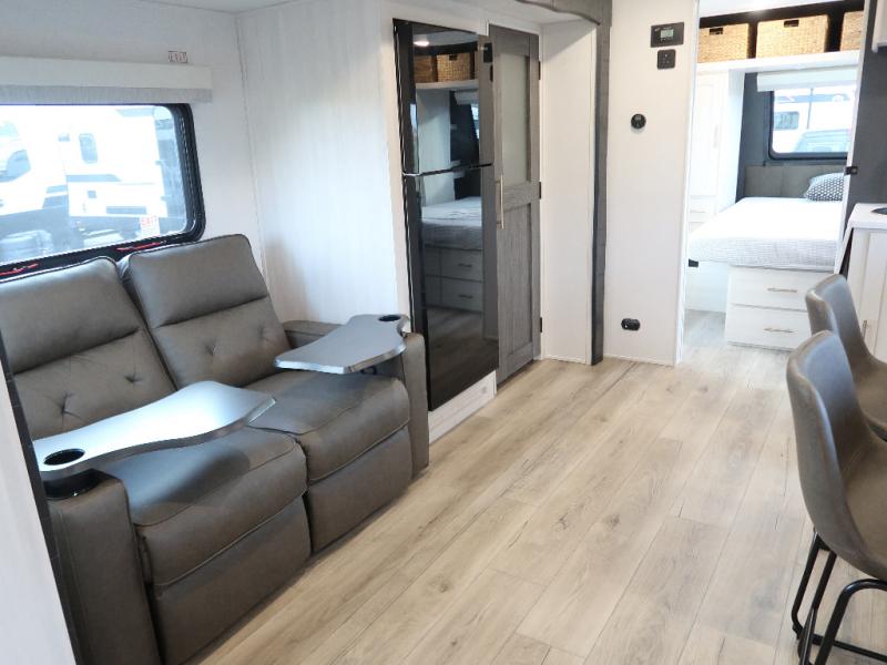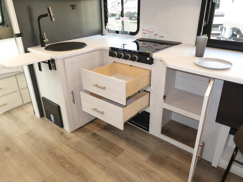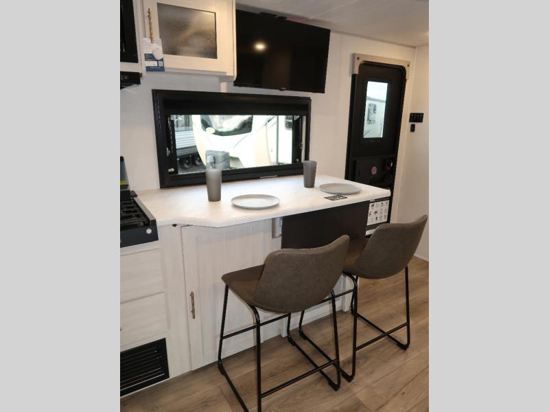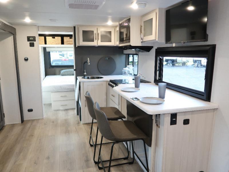 Brand NEW Make!!Single Slide, Front Bedroom/Rear Bathroom Floorplan, Sleeps-2, Outdoor Camp Kitchen, Goodyear Tires, Trailgate Outdoor Bar Window, King Island Bed, Bar 2 Table Pull Out Dinette, 400 Watt Solar Panel, Heated/Enclosed Underbelly, On Demand Water Heater, Central Vacuum, Air Fryer/Microwave, LED 12V TV, 50-AMP Service, 15,000BTU Air Conditioner, 19' Power Patio Awning