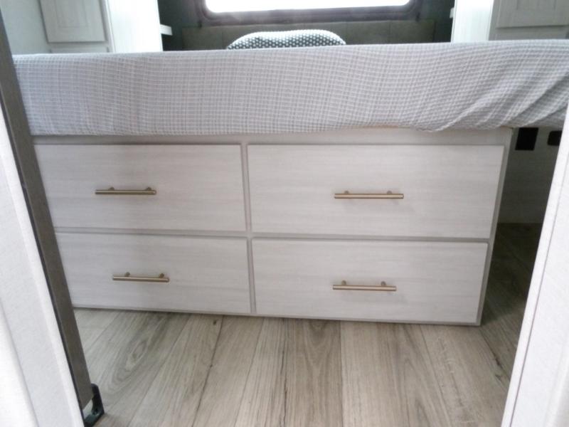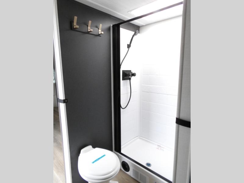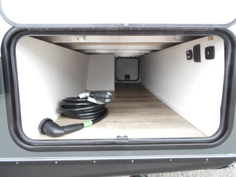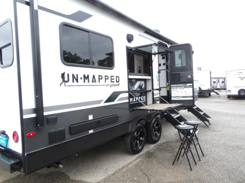 The Forest River Un-Mapped travel trailers deliver an unparalleled travel experience thanks to their incredible features, starting with the aluminum-framed floor with block foam insulation that ensures exceptional structural integrity and thermal efficiency, along with the sealed underbelly with forced heat & radiant foil barrier that provides superior insulation and heat management, and the power tongue jack facilitates easy maneuvering and stabilization of the trailer. Plus, the 30 Amp charge controller with solar inverter prep is ready for integration with solar power systems, catering to eco-conscious travelers seeking off-grid capabilities. Inside, you will find seamless Surf-X kitchen countertops that offer a sleek, durable surface and are easy to maintain for busy travelers. Further, the blackout roller shades will add privacy and light control for restful nights and cozy daytime retreats.