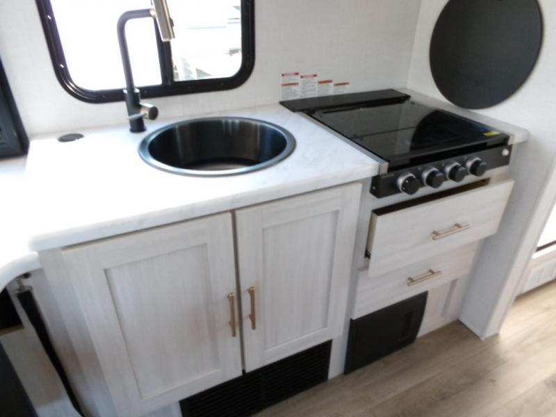 The Forest River Un-Mapped travel trailers deliver an unparalleled travel experience thanks to their incredible features, starting with the aluminum-framed floor with block foam insulation that ensures exceptional structural integrity and thermal efficiency, along with the sealed underbelly with forced heat & radiant foil barrier that provides superior insulation and heat management, and the power tongue jack facilitates easy maneuvering and stabilization of the trailer. Plus, the 30 Amp charge controller with solar inverter prep is ready for integration with solar power systems, catering to eco-conscious travelers seeking off-grid capabilities. Inside, you will find seamless Surf-X kitchen countertops that offer a sleek, durable surface and are easy to maintain for busy travelers. Further, the blackout roller shades will add privacy and light control for restful nights and cozy daytime retreats.