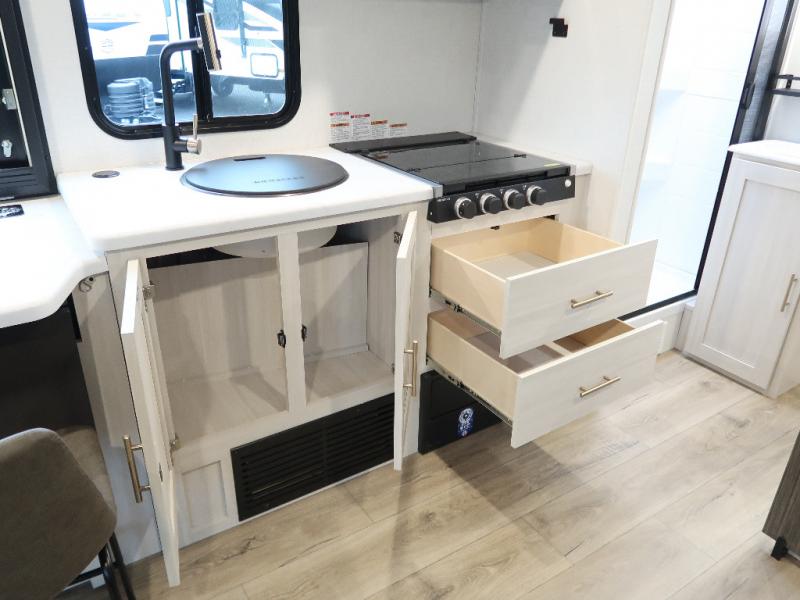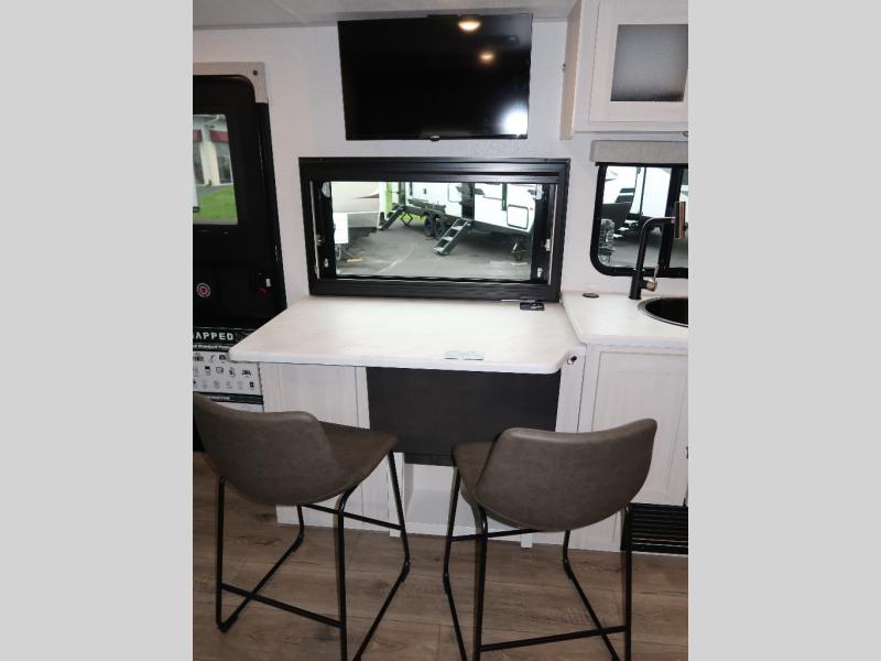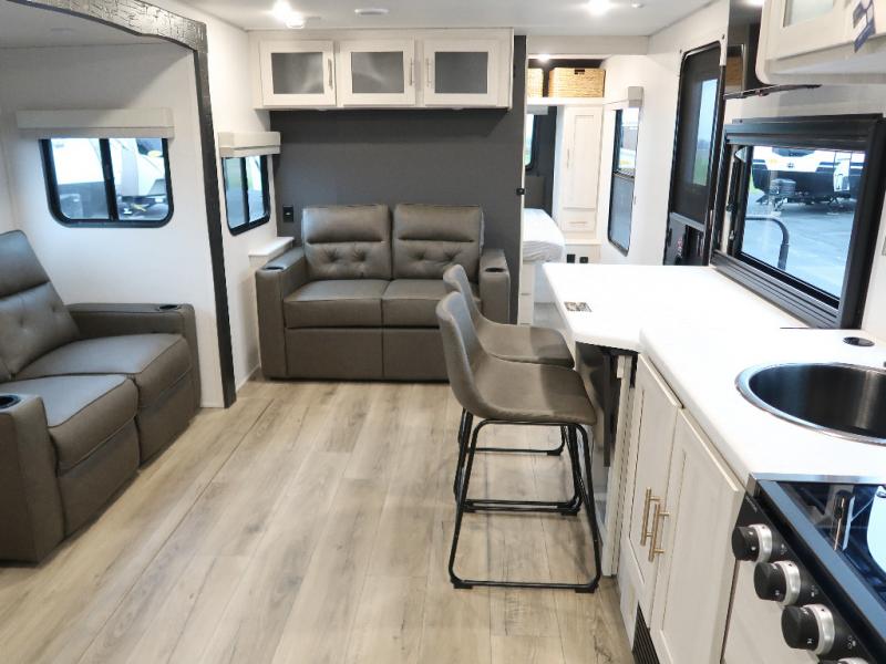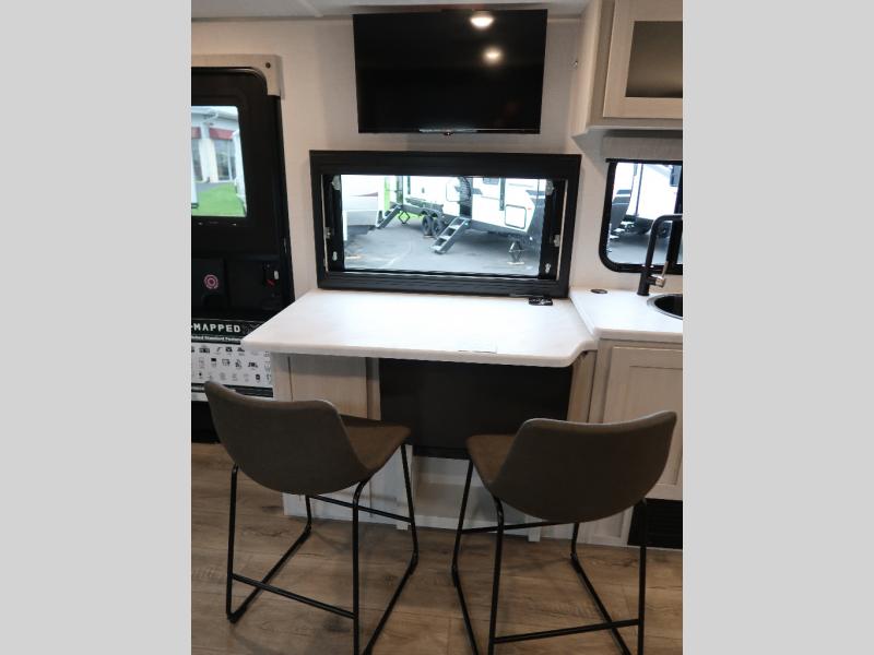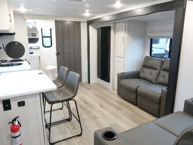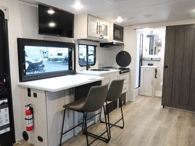 Brand NEW Make!!! Single Slide Out, Front Bedroom/Rear Bathroom Floorplan, Sleeps-4, Outdoor Camp Kitchen, Trailgate Outdoor Bar, Goodyear Tires, Central Vacuum, King Island Bed, 21' Power Patio Awning, Theater Seating, 400 Watt Solar Panel, LED 12V TV, Enclosed/Heated Underbelly, Bar 2 Table Pull Out Dinette, On Demand Water Heater, 15,000BTU Air Conditioner, Air Fryer/Microwave, Rear Receiver Hitch