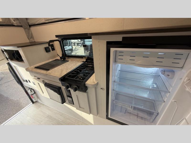 Ultra-light pop-up truck camper designed for half-ton and larger trucks (fits 5’6?–8' beds). Weighing around 1,800 lbs, it’s built for adventure — featuring a 400W solar package with lithium battery system for extended off-grid trips. Inside you’ll find a front queen bed, jackknife sofa with table, compact galley with 2-burner cooktop, 12V fridge, and the half-door cassette toilet setup for convenience without the bulk of a full wet bath. Durable soft-side design, electric jacks, LED lighting, and lightweight construction make this the perfect balance of comfort and mobility.