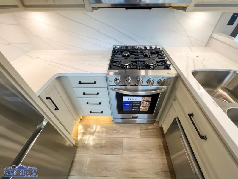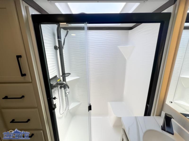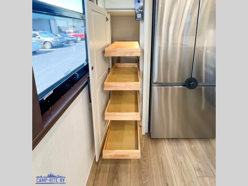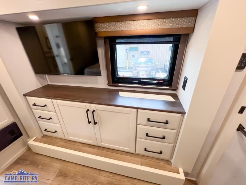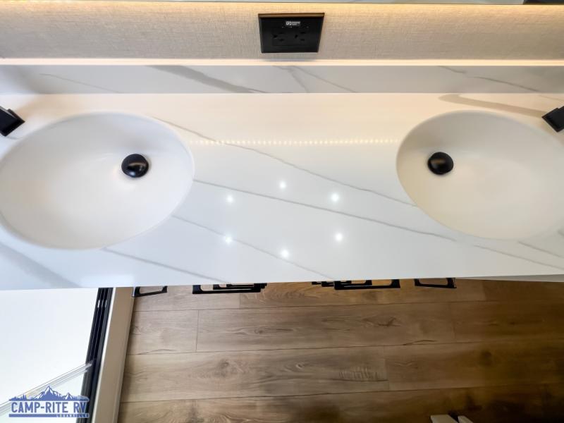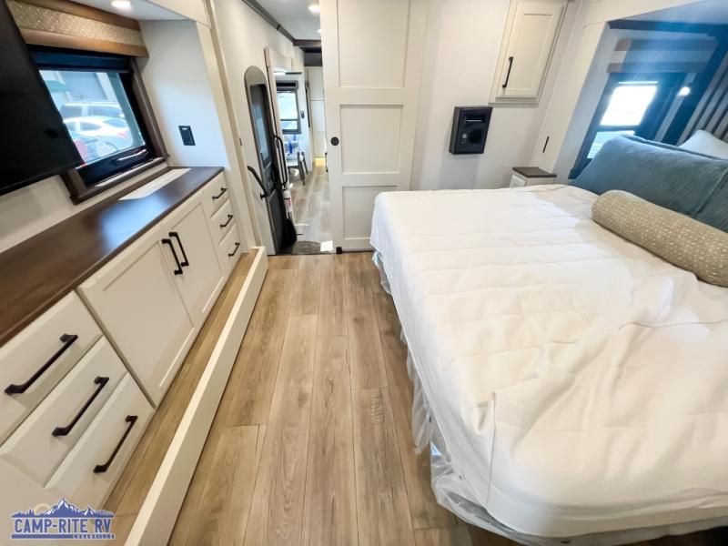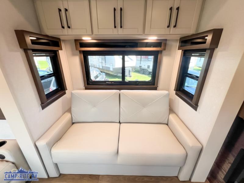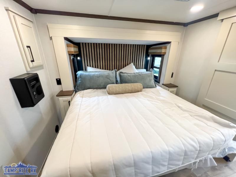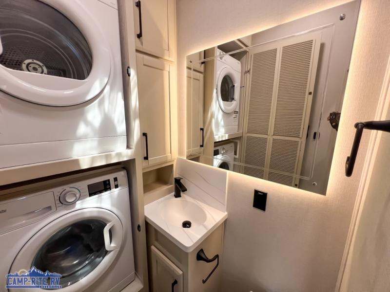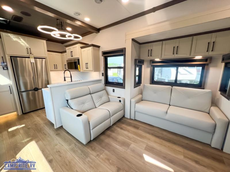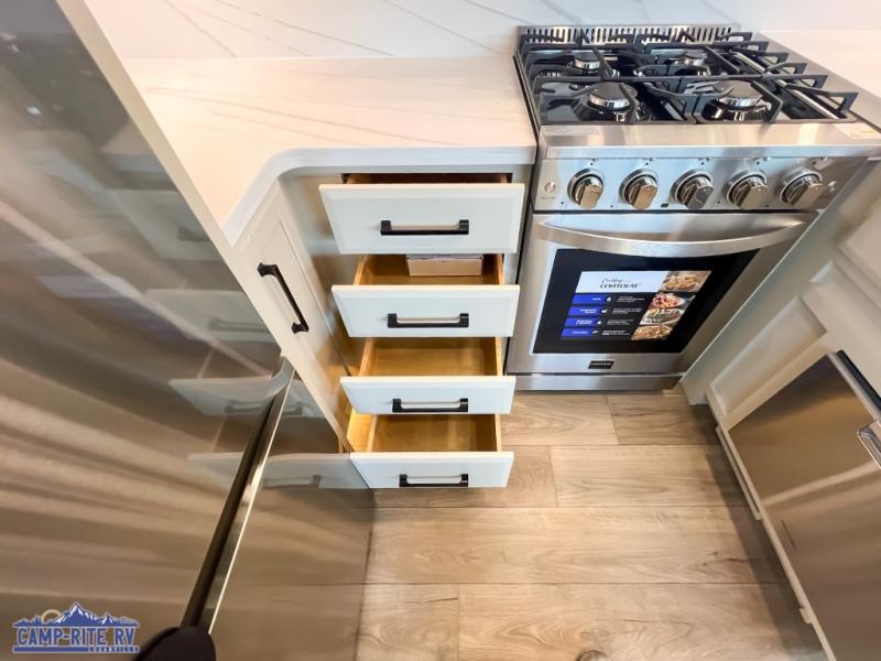 The Forest River RiverStone fifth wheels and toy haulers are luxurious units that have it all! You'll find an automatic six-point hydraulic level-up system to keep your unit in place, and there is preparation for a four-camera observation system. The TravlFi Journey XTR 4G/LTE router and WiFi extender will help you stay connected to the outside world, and you'll never have to overpack again since the Splendid “Astral” stackable washer and dryer will let you clean the small amount of clothes you've brought with you. Another high luxury is the Fischer Paykal dishwasher which will allow you to spend more time enjoying your camp life and less time cleaning up. Each unit is built with an LCI Road Armour suspension system, dual-pane frameless windows, a full docking station, a 200W solar panel, and a BMPro touch control system.