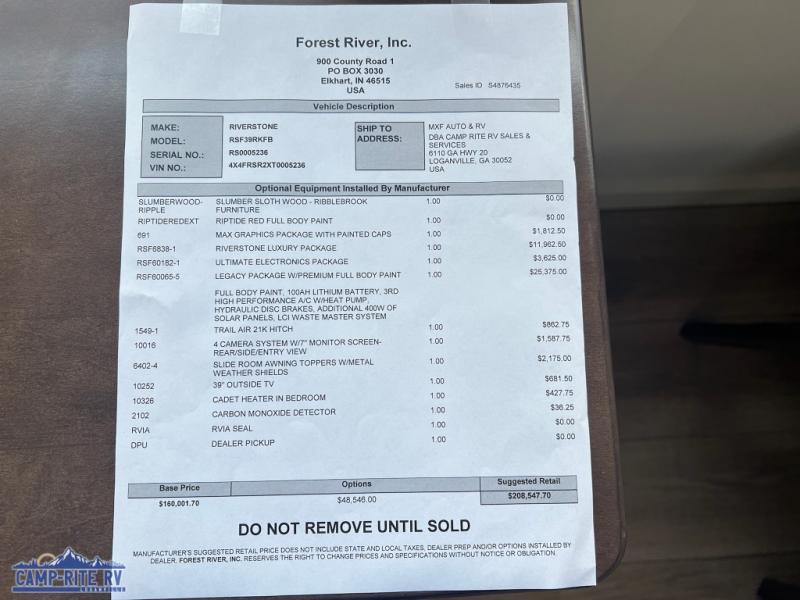 Forest River RiverStone fifth wheel 39RKFB highlights: