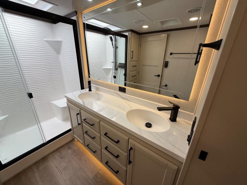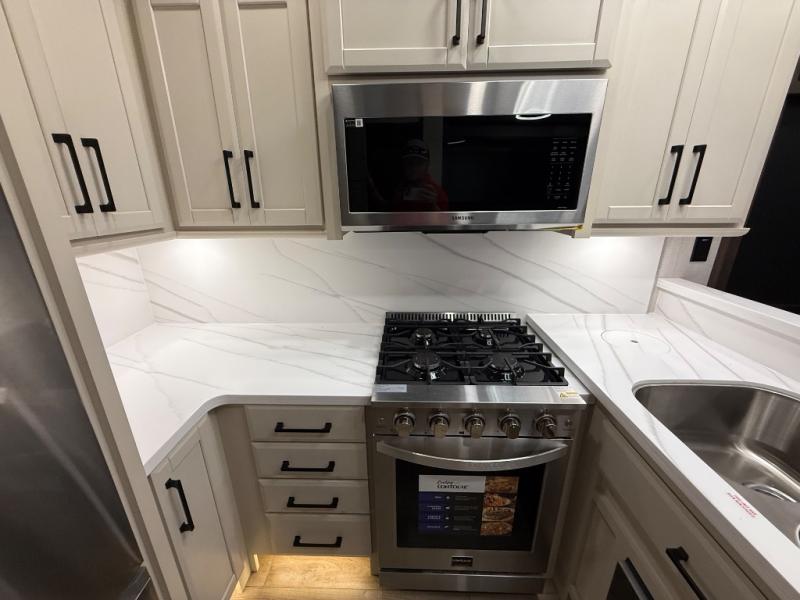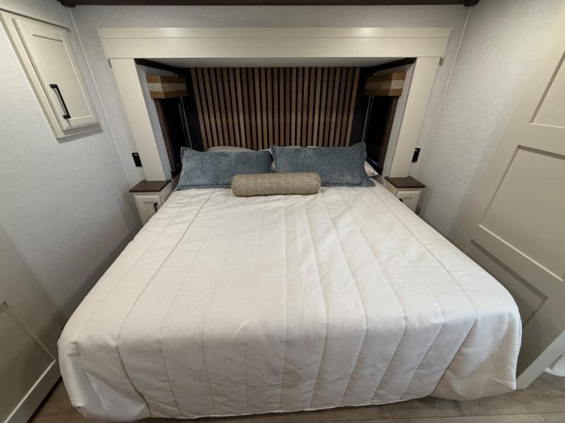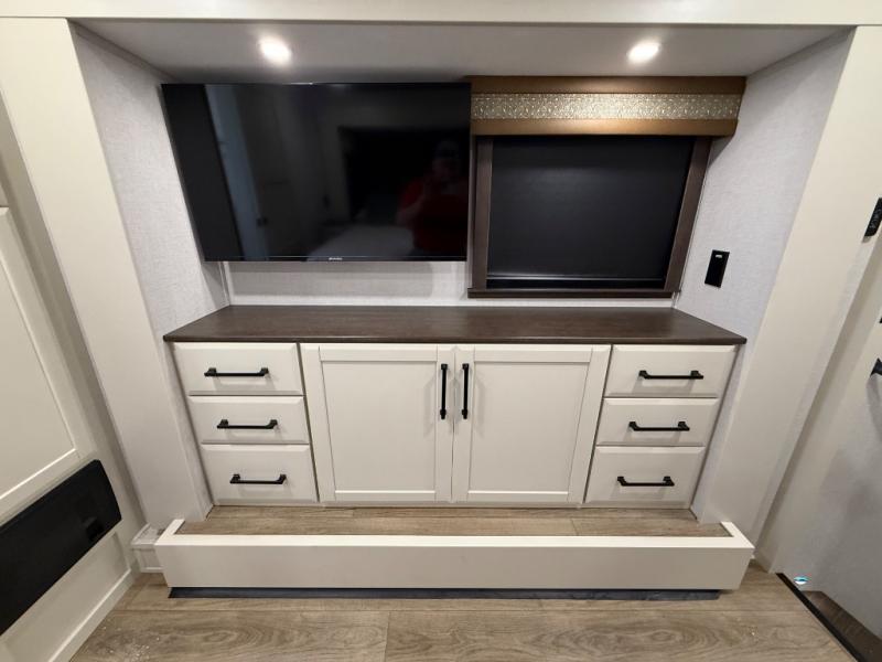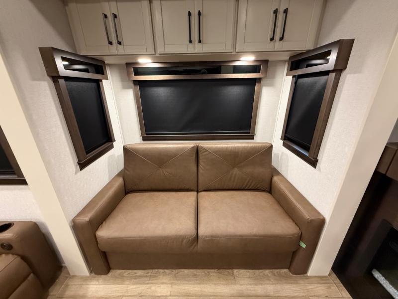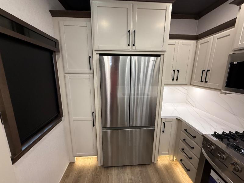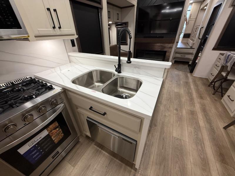 The Forest River RiverStone fifth wheels and toy haulers are luxurious units that have it all! You'll find an automatic six-point hydraulic level-up system to keep your unit in place, and there is preparation for a four-camera observation system. The TravlFi Journey XTR 4G/LTE router and WiFi extender will help you stay connected to the outside world, and you'll never have to overpack again since the Splendid “Astral” stackable washer and dryer will let you clean the small amount of clothes you've brought with you. Another high luxury is the Fischer Paykal dishwasher which will allow you to spend more time enjoying your camp life and less time cleaning up. Each unit is built with an LCI Road Armour suspension system, dual-pane frameless windows, a full docking station, a 200W solar panel, and a BMPro touch control system.