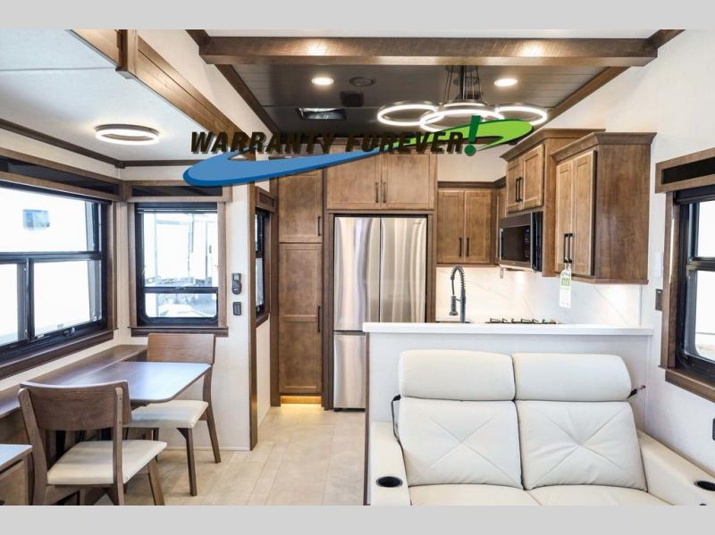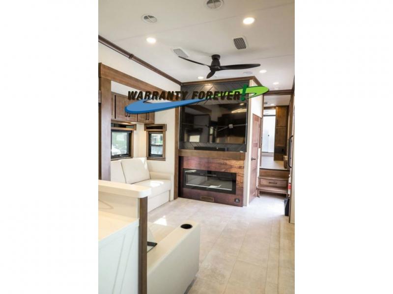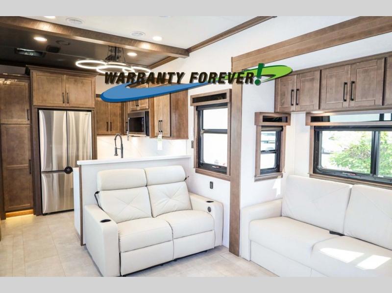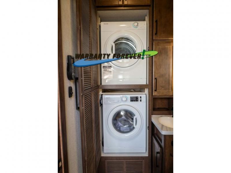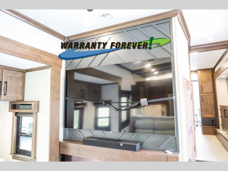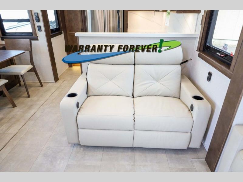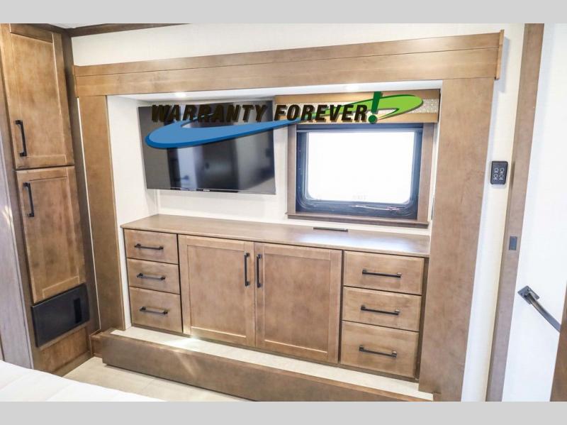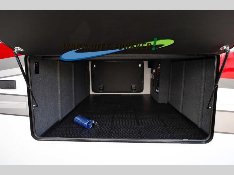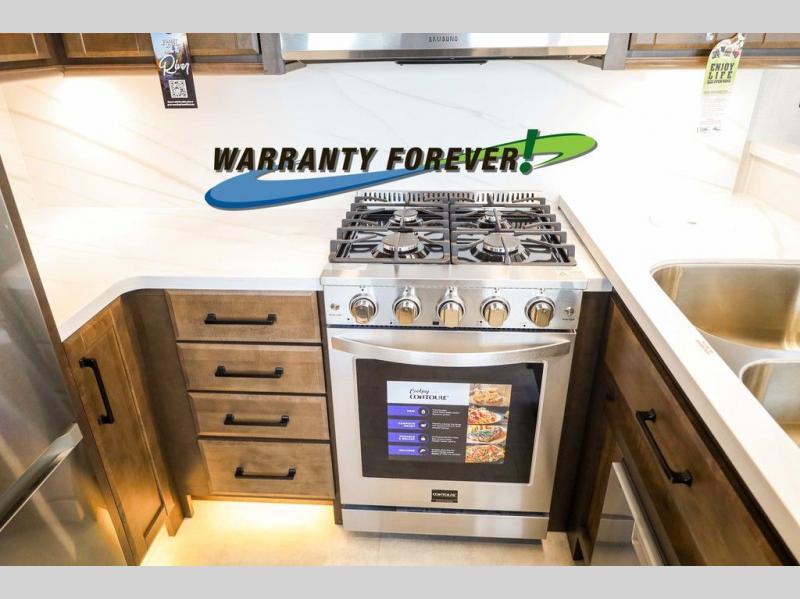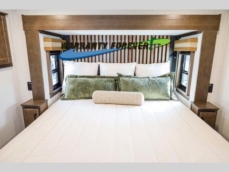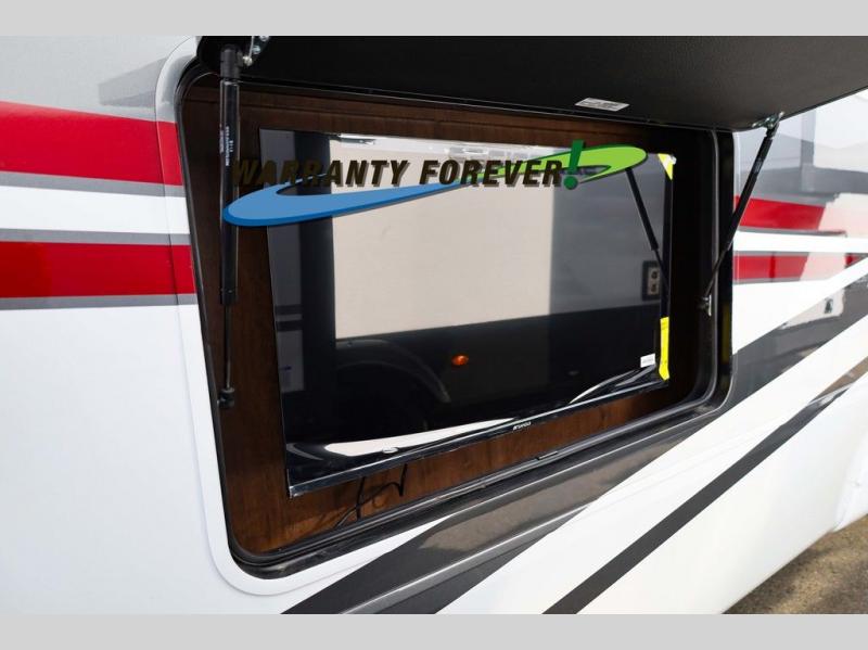 The Forest River RiverStone fifth wheels and toy haulers are luxurious units that have it all! You'll find an automatic six-point hydraulic level-up system to keep your unit in place, and there is preparation for a four-camera observation system. The TravlFi Journey XTR 4G/LTE router and WiFi extender will help you stay connected to the outside world, and you'll never have to overpack again since the Splendid “Astral” stackable washer and dryer will let you clean the small amount of clothes you've brought with you. Another high luxury is the Fischer Paykal dishwasher which will allow you to spend more time enjoying your camp life and less time cleaning up. Each unit is built with an LCI Road Armour suspension system, dual-pane frameless windows, a full docking station, a 200W solar panel, and a BMPro touch control system.