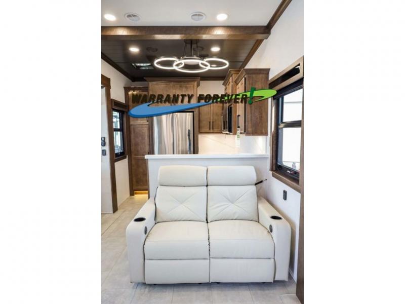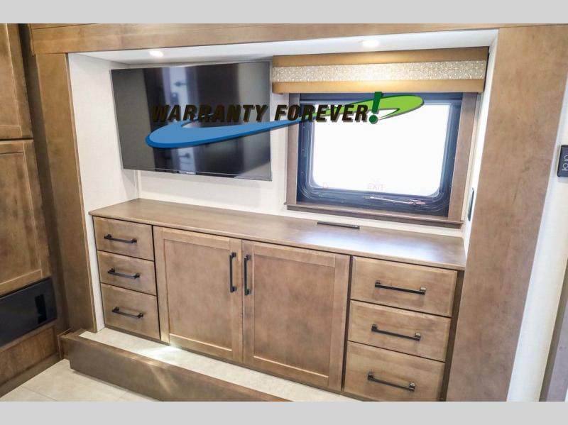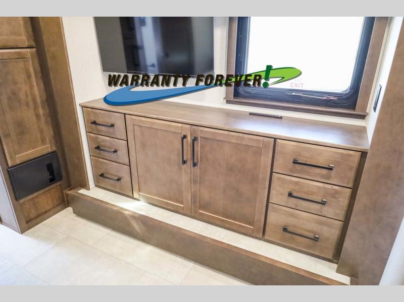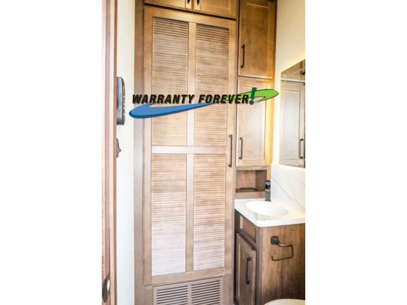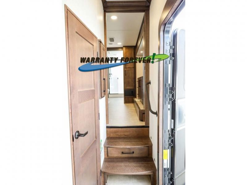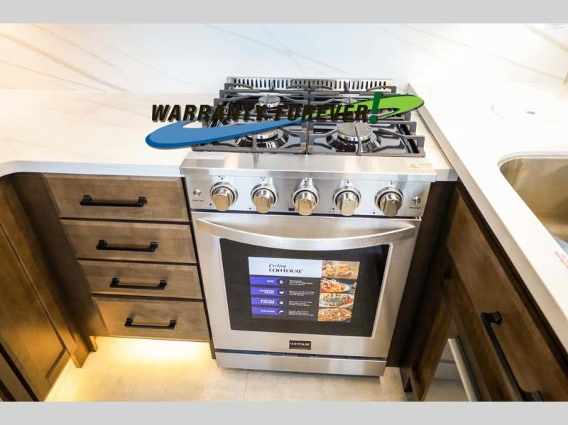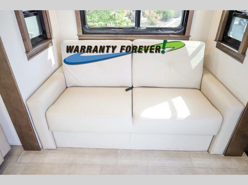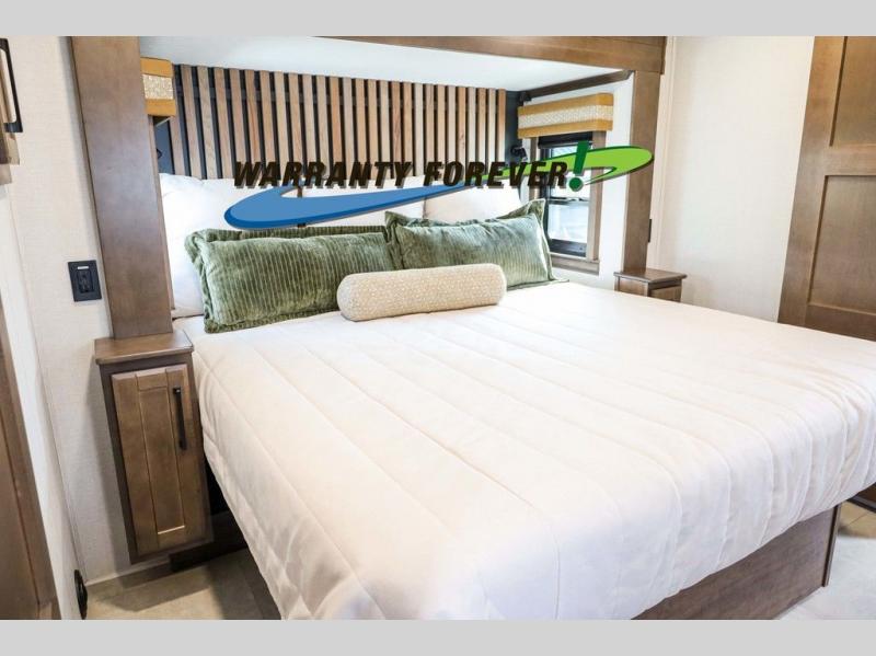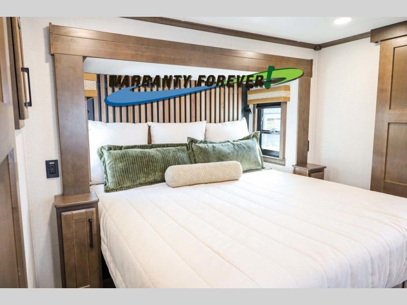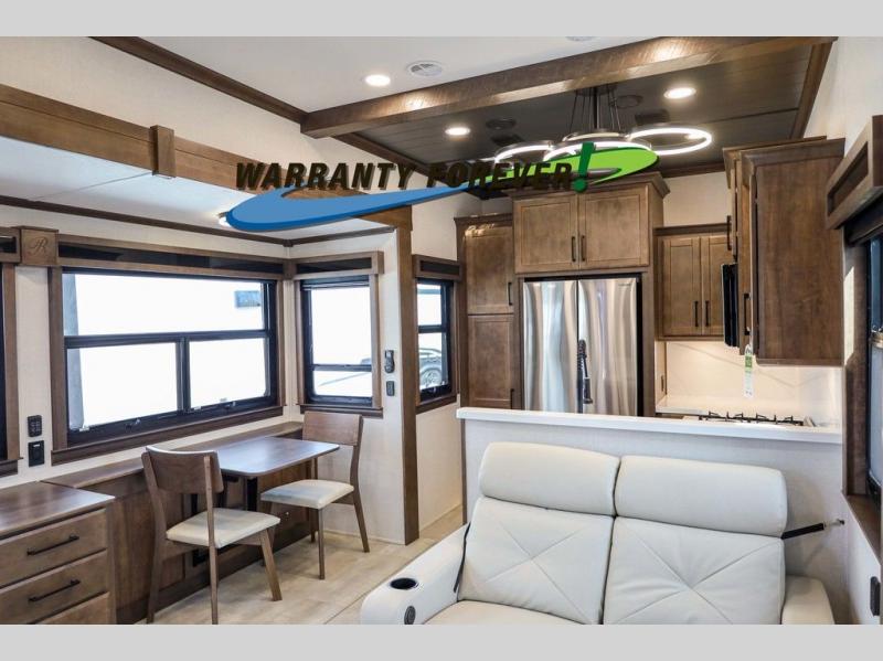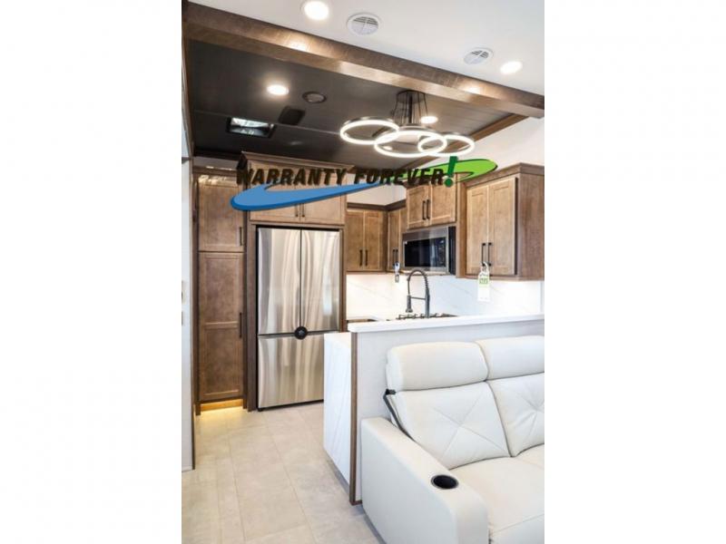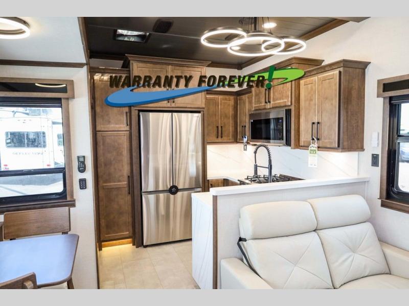 The Forest River RiverStone fifth wheels and toy haulers are luxurious units that have it all! You'll find an automatic six-point hydraulic level-up system to keep your unit in place, and there is preparation for a four-camera observation system. The TravlFi Journey XTR 4G/LTE router and WiFi extender will help you stay connected to the outside world, and you'll never have to overpack again since the Splendid “Astral” stackable washer and dryer will let you clean the small amount of clothes you've brought with you. Another high luxury is the Fischer Paykal dishwasher which will allow you to spend more time enjoying your camp life and less time cleaning up. Each unit is built with an LCI Road Armour suspension system, dual-pane frameless windows, a full docking station, a 200W solar panel, and a BMPro touch control system.