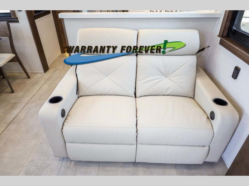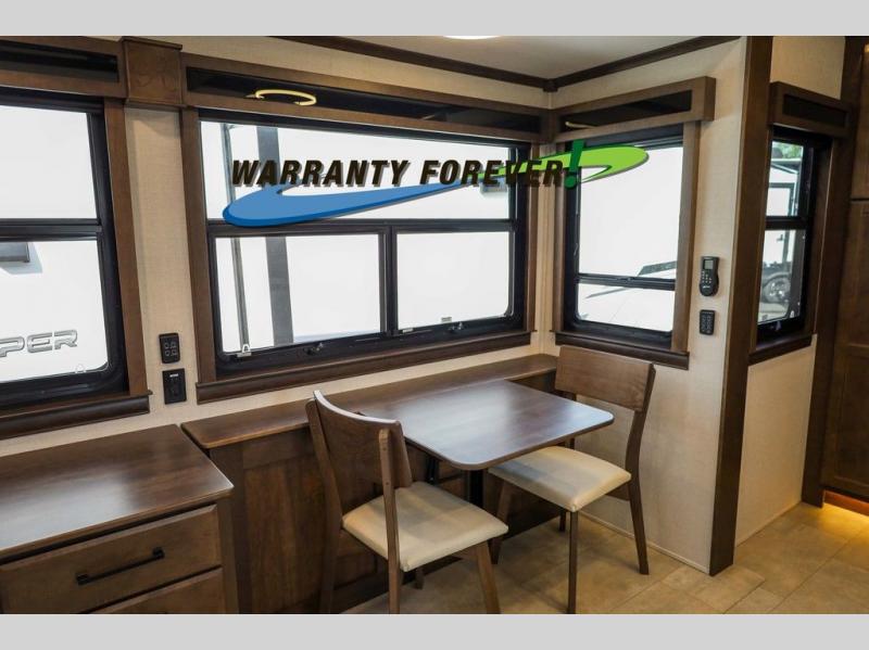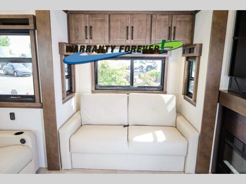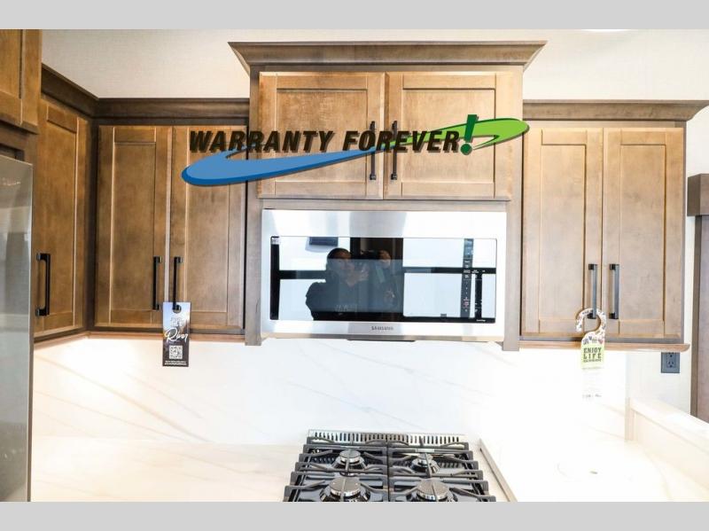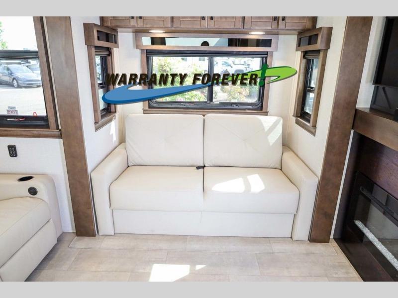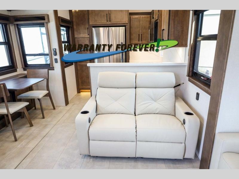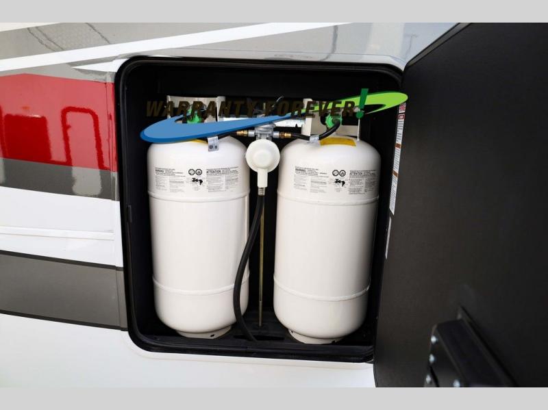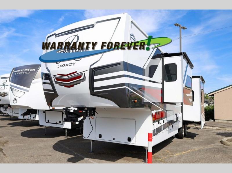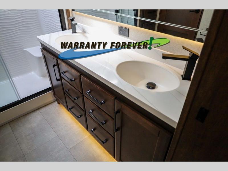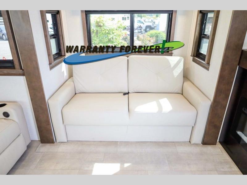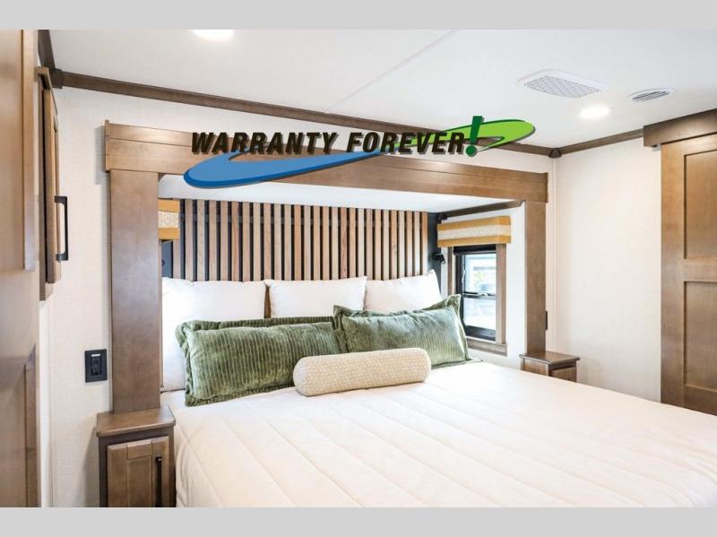 The Forest River RiverStone fifth wheels and toy haulers are luxurious units that have it all! You'll find an automatic six-point hydraulic level-up system to keep your unit in place, and there is preparation for a four-camera observation system. The TravlFi Journey XTR 4G/LTE router and WiFi extender will help you stay connected to the outside world, and you'll never have to overpack again since the Splendid “Astral” stackable washer and dryer will let you clean the small amount of clothes you've brought with you. Another high luxury is the Fischer Paykal dishwasher which will allow you to spend more time enjoying your camp life and less time cleaning up. Each unit is built with an LCI Road Armour suspension system, dual-pane frameless windows, a full docking station, a 200W solar panel, and a BMPro touch control system.