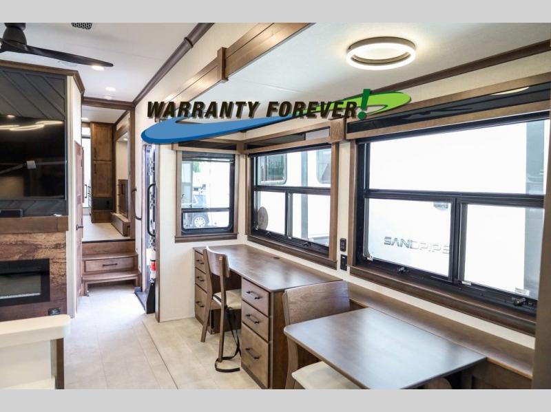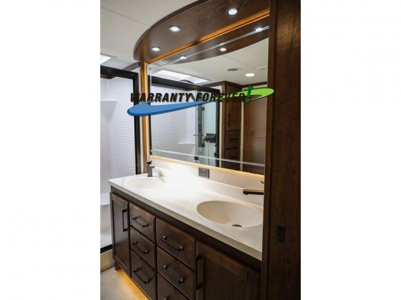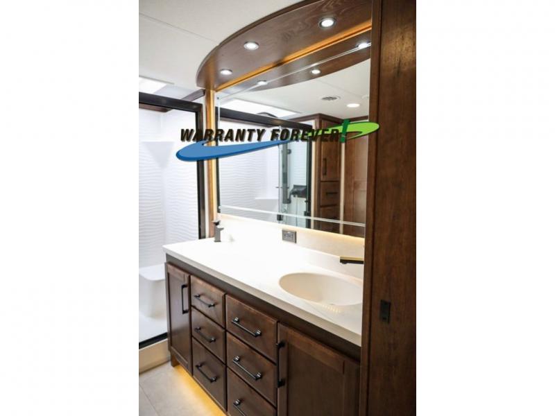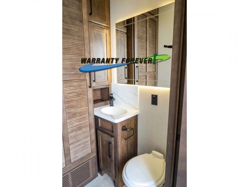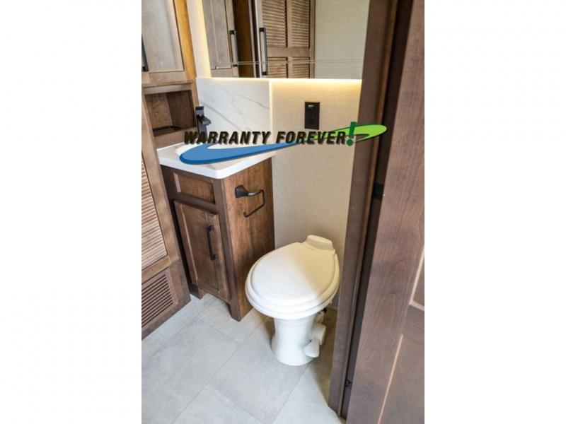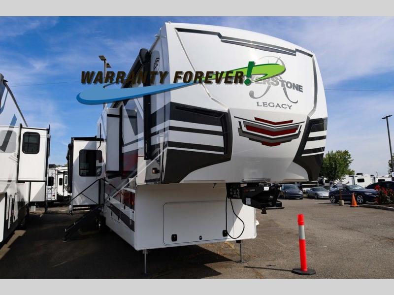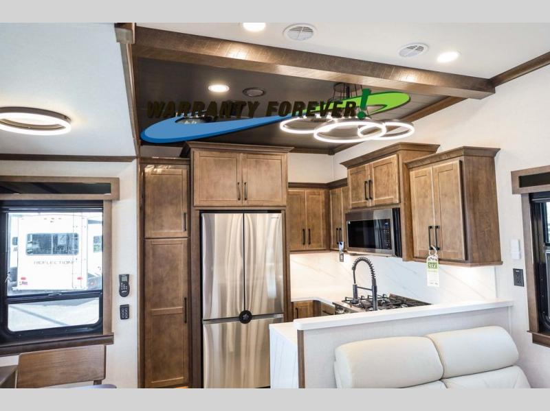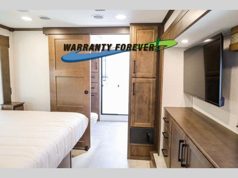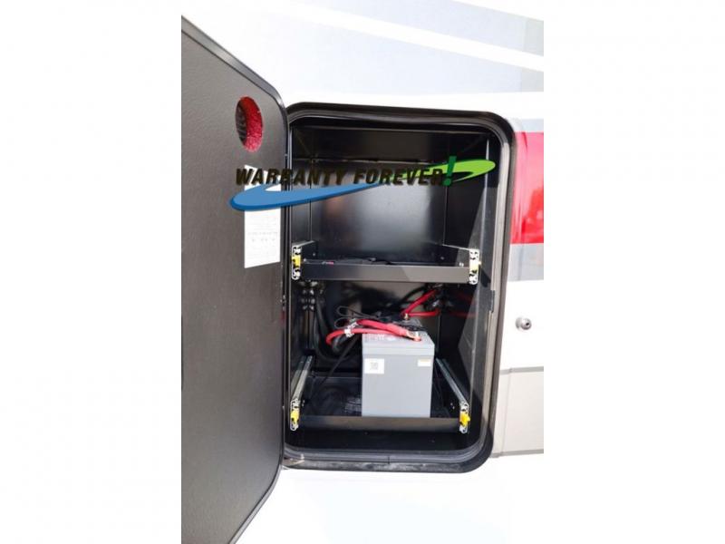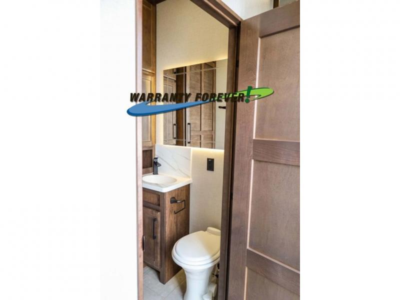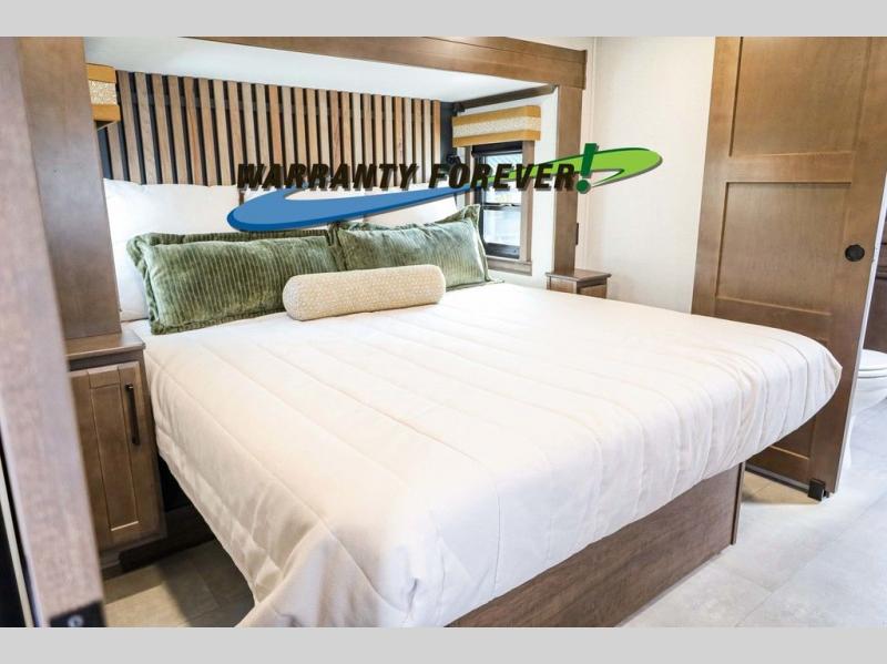 The Forest River RiverStone fifth wheels and toy haulers are luxurious units that have it all! You'll find an automatic six-point hydraulic level-up system to keep your unit in place, and there is preparation for a four-camera observation system. The TravlFi Journey XTR 4G/LTE router and WiFi extender will help you stay connected to the outside world, and you'll never have to overpack again since the Splendid “Astral” stackable washer and dryer will let you clean the small amount of clothes you've brought with you. Another high luxury is the Fischer Paykal dishwasher which will allow you to spend more time enjoying your camp life and less time cleaning up. Each unit is built with an LCI Road Armour suspension system, dual-pane frameless windows, a full docking station, a 200W solar panel, and a BMPro touch control system.
