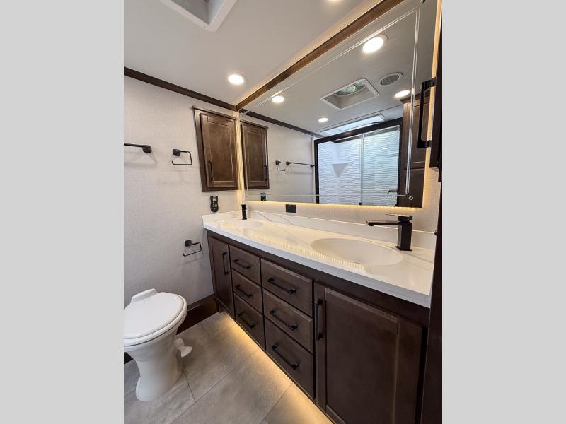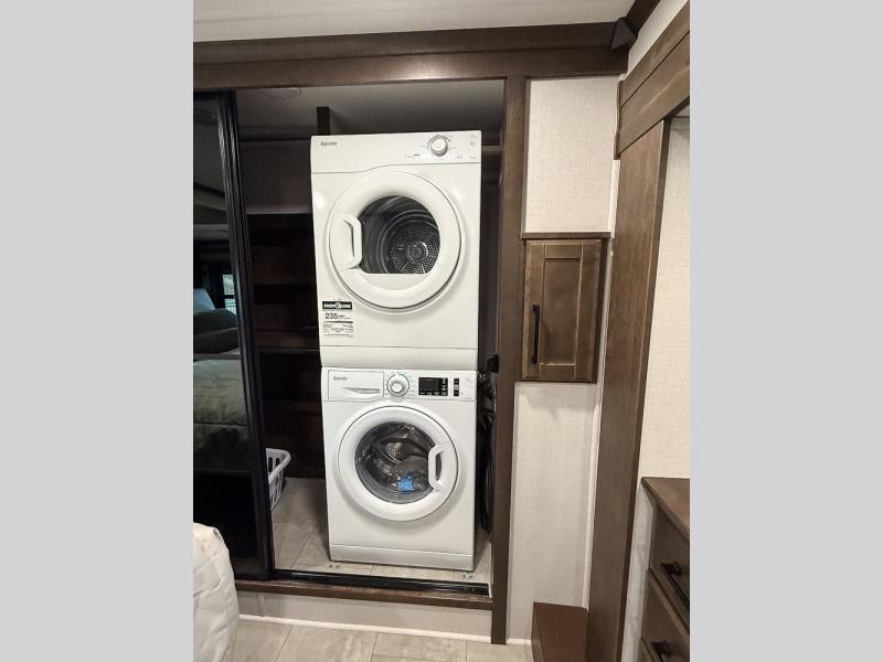 The Forest River RiverStone fifth wheels and toy haulers are luxurious units that have it all! You'll find an automatic six-point hydraulic level-up system to keep your unit in place, and there is preparation for a four-camera observation system. The TravlFi Journey XTR 4G/LTE router and WiFi extender will help you stay connected to the outside world, and you'll never have to overpack again since the Splendid “Astral” stackable washer and dryer will let you clean the small amount of clothes you've brought with you. Another high luxury is the Fischer Paykal dishwasher which will allow you to spend more time enjoying your camp life and less time cleaning up. Each unit is built with a LCI Road Armour suspension system, dual-pane frameless windows, a full docking station, a 200W solar panel, and a BMPro touch control system.