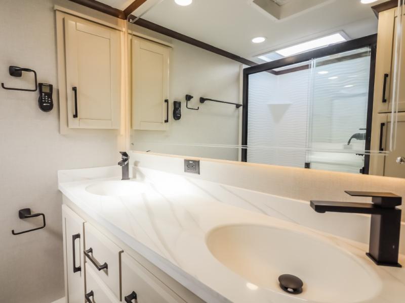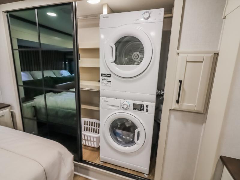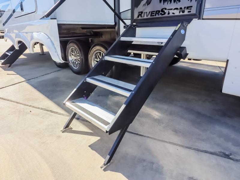 The Forest River RiverStone fifth wheels and toy haulers are luxurious units that have it all! You'll find an automatic six-point hydraulic level-up system to keep your unit in place, and there is preparation for a four-camera observation system. The TravlFi Journey XTR 4G/LTE router and WiFi extender will help you stay connected to the outside world, and you'll never have to overpack again since the Splendid “Astral” stackable washer and dryer will let you clean the small amount of clothes you've brought with you. Another high luxury is the Fischer Paykal dishwasher which will allow you to spend more time enjoying your camp life and less time cleaning up. Each unit is built with a LCI Road Armour suspension system, dual-pane frameless windows, a full docking station, a 200W solar panel, and a BMPro touch control system.