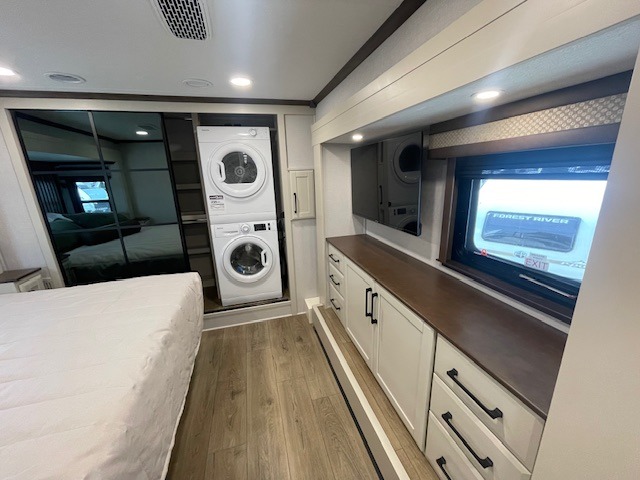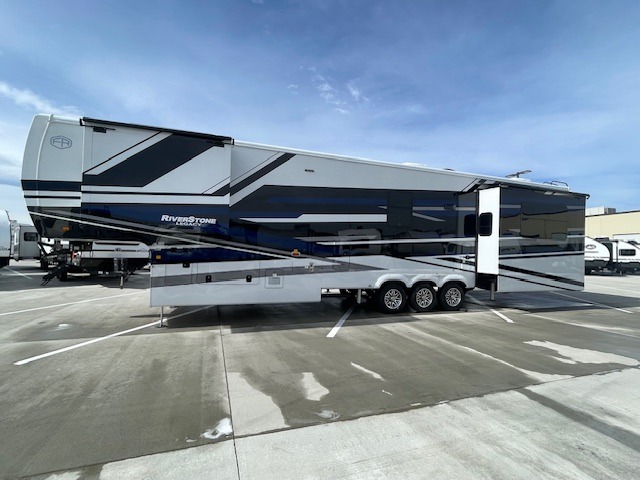 The Forest River RiverStone fifth wheels and toy haulers are luxurious units that have it all! You'll find an automatic six-point hydraulic level-up system to keep your unit in place, and there is preparation for a four-camera observation system. The TravlFi Journey XTR 4G/LTE router and WiFi extender will help you stay connected to the outside world, and you'll never have to overpack again since the Splendid “Astral” stackable washer and dryer will let you clean the small amount of clothes you've brought with you. Another high luxury is the Fischer Paykal dishwasher which will allow you to spend more time enjoying your camp life and less time cleaning up. Each unit is built with a LCI Road Armour suspension system, dual-pane frameless windows, a full docking station, a 200W solar panel, and a BMPro touch control system.