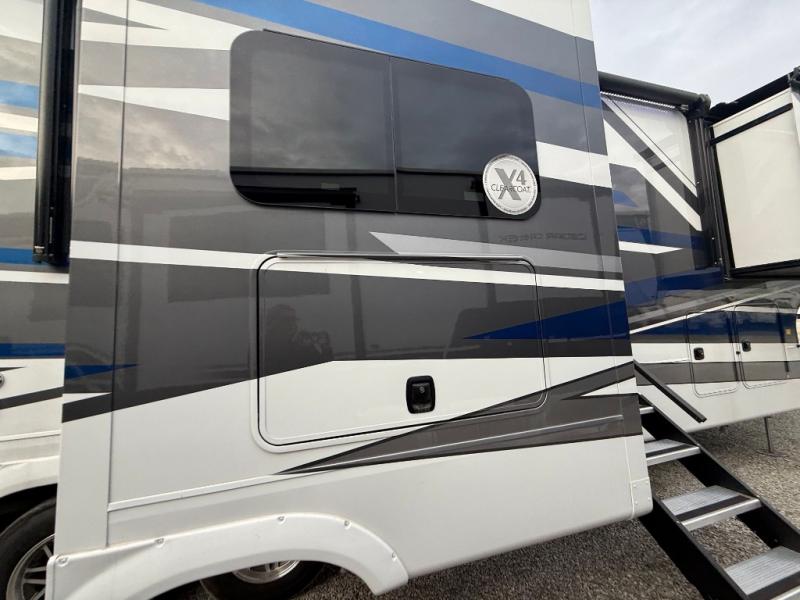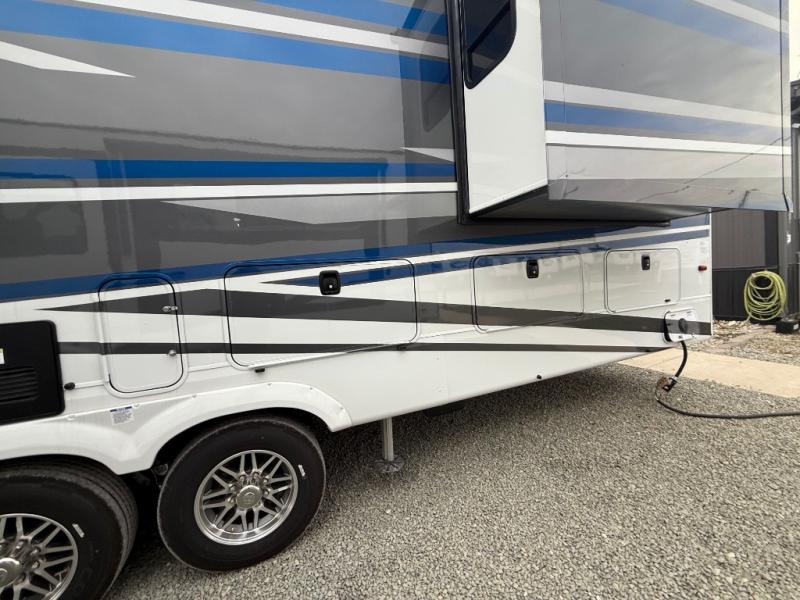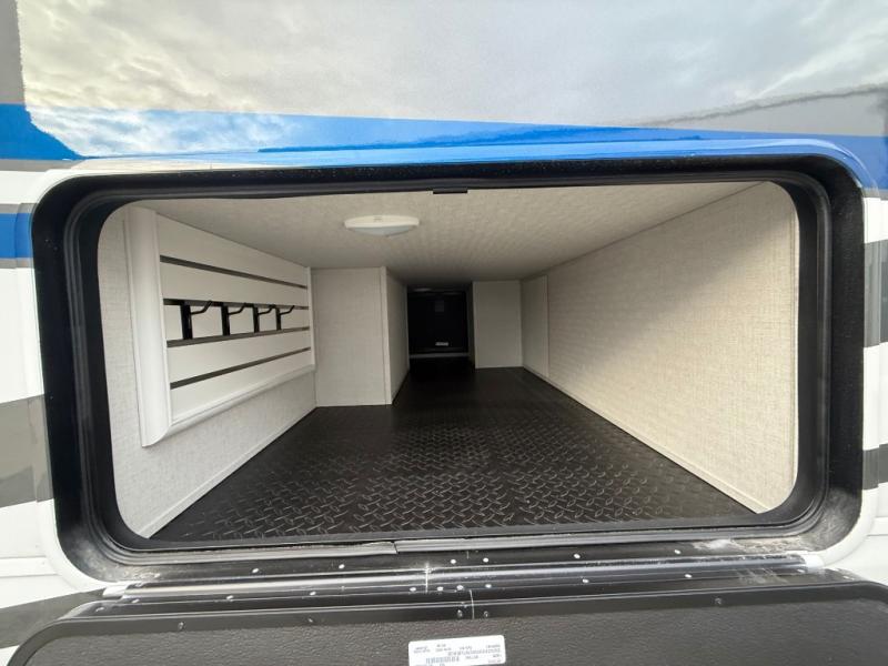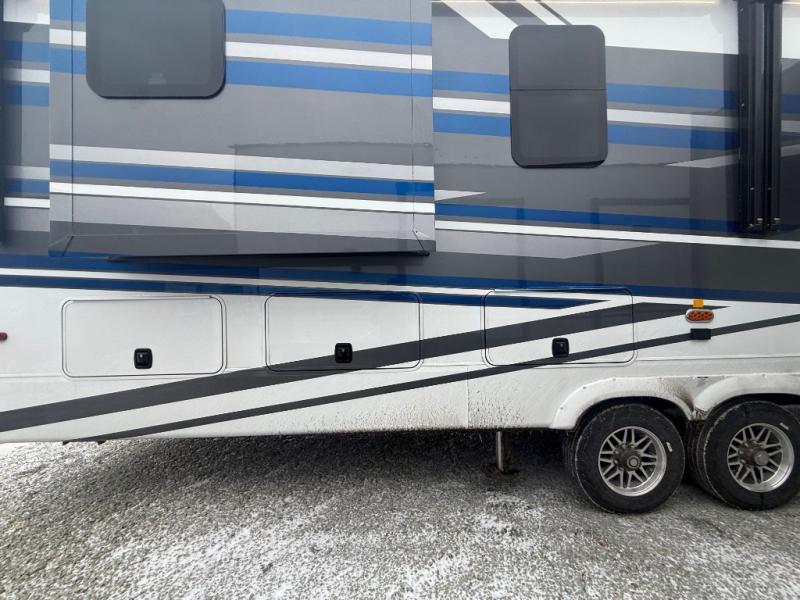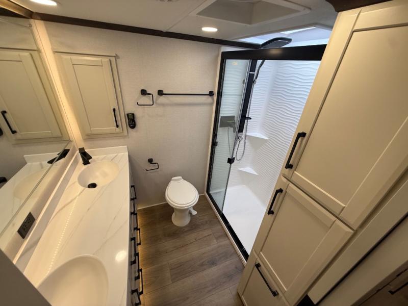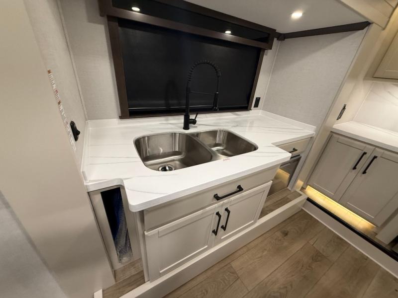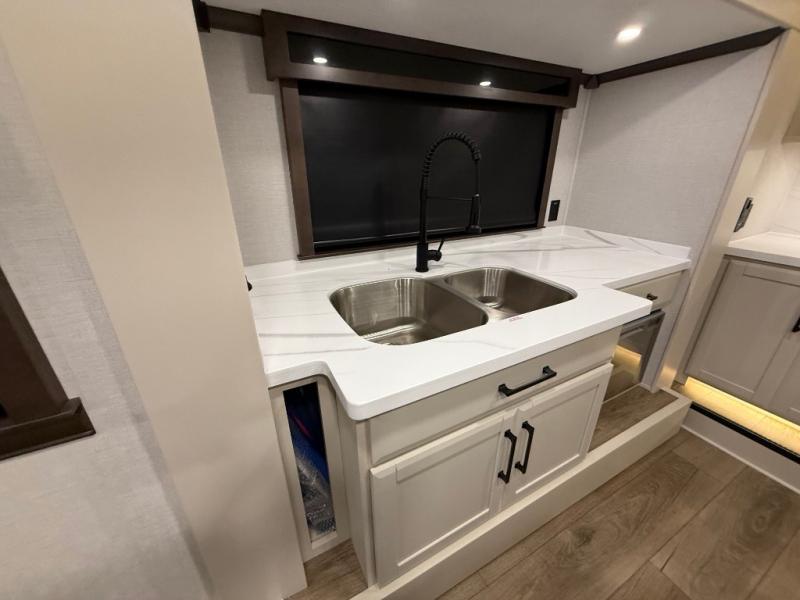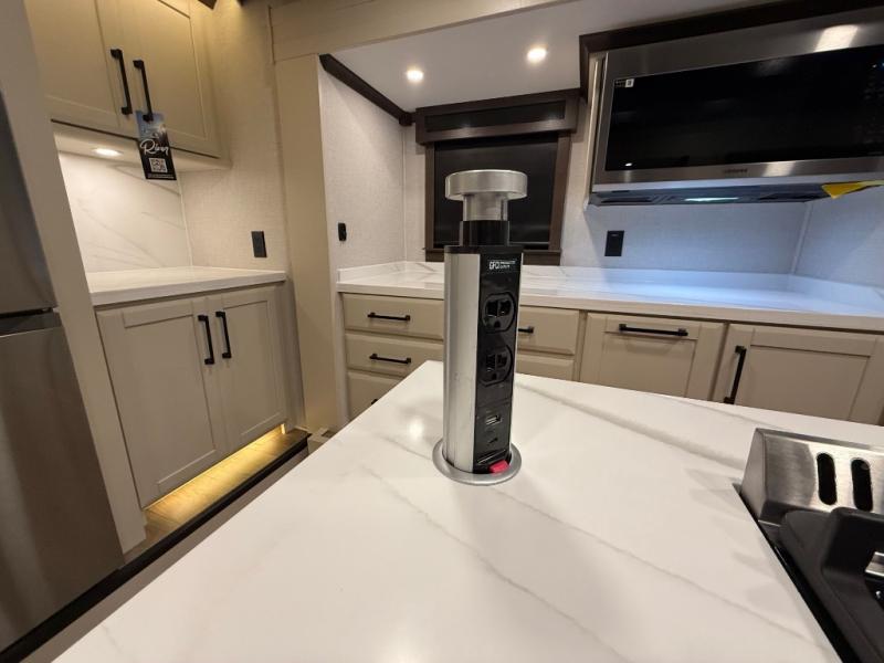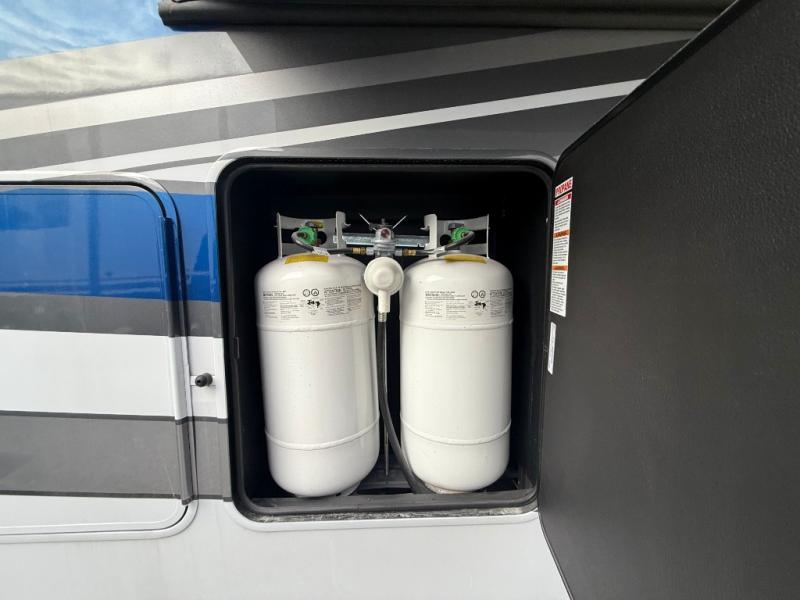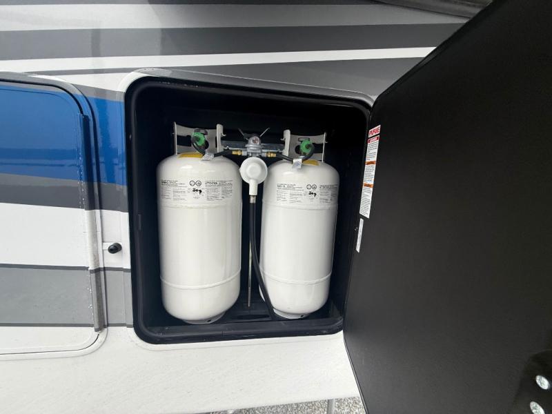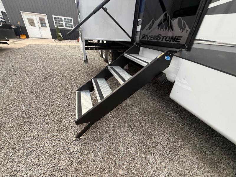 The Forest River RiverStone fifth wheels and toy haulers are luxurious units that have it all! You'll find an automatic six-point hydraulic level-up system to keep your unit in place, and there is preparation for a four-camera observation system. The TravlFi Journey XTR 4G/LTE router and WiFi extender will help you stay connected to the outside world, and you'll never have to overpack again since the Splendid “Astral” stackable washer and dryer will let you clean the small amount of clothes you've brought with you. Another high luxury is the Fischer Paykal dishwasher which will allow you to spend more time enjoying your camp life and less time cleaning up. Each unit is built with a LCI Road Armour suspension system, dual-pane frameless windows, a full docking station, a 200W solar panel, and a BMPro touch control system.
