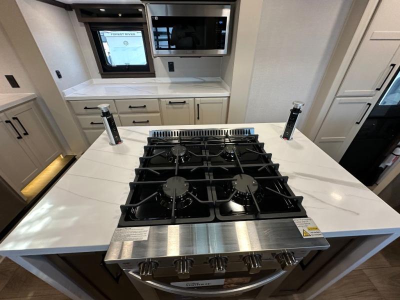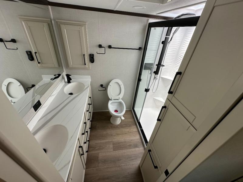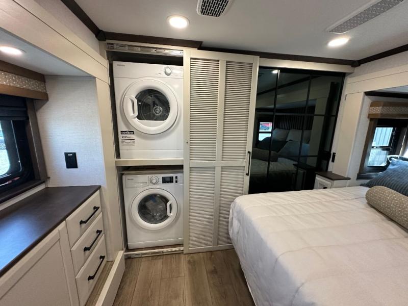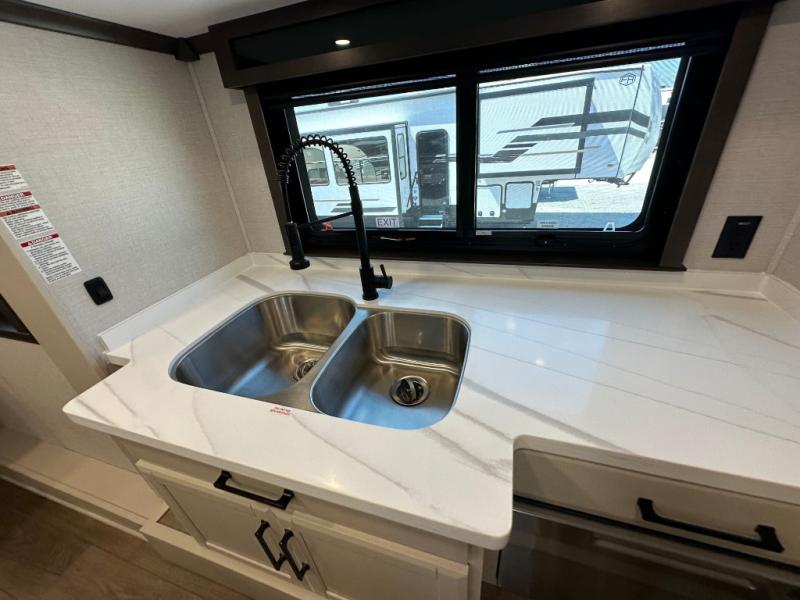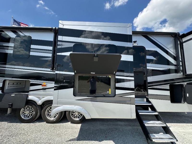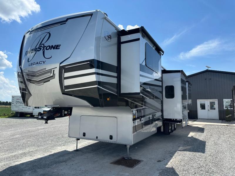 The Forest River RiverStone fifth wheels and toy haulers are luxurious units that have it all! You'll find an automatic six-point hydraulic level-up system to keep your unit in place, and there is preparation for a four-camera observation system. The TravlFi Journey XTR 4G/LTE router and WiFi extender will help you stay connected to the outside world, and you'll never have to overpack again since the Splendid “Astral” stackable washer and dryer will let you clean the small amount of clothes you've brought with you. Another high luxury is the Fischer Paykal dishwasher which will allow you to spend more time enjoying your camp life and less time cleaning up. Each unit is built with a LCI Road Armour suspension system, dual-pane frameless windows, a full docking station, a 200W solar panel, and a BMPro touch control system.