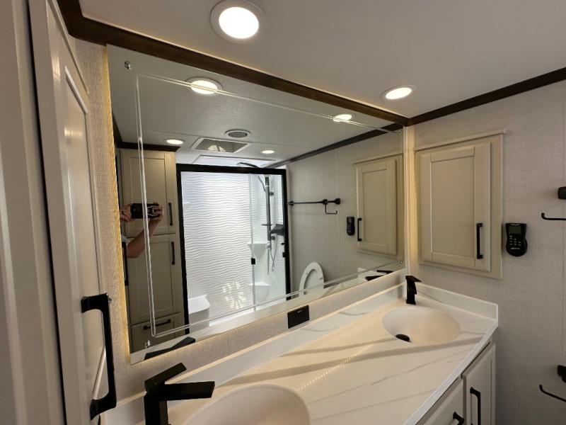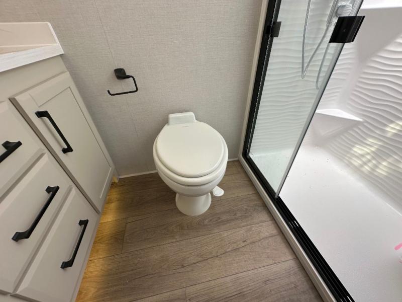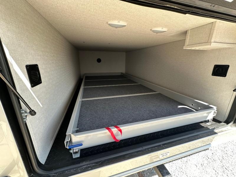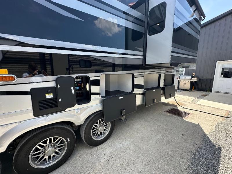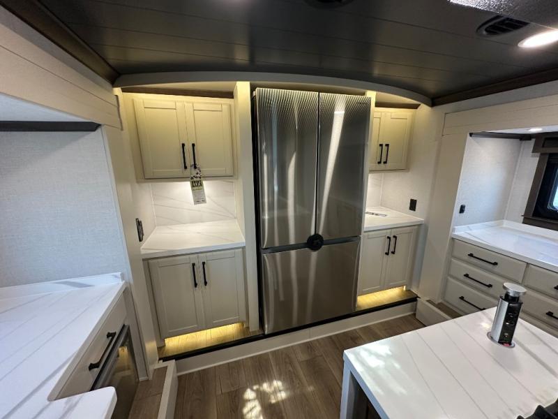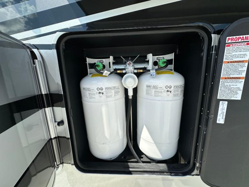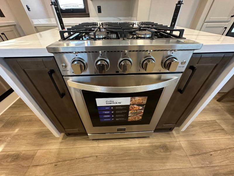 The Forest River RiverStone fifth wheels and toy haulers are luxurious units that have it all! You'll find an automatic six-point hydraulic level-up system to keep your unit in place, and there is preparation for a four-camera observation system. The TravlFi Journey XTR 4G/LTE router and WiFi extender will help you stay connected to the outside world, and you'll never have to overpack again since the Splendid “Astral” stackable washer and dryer will let you clean the small amount of clothes you've brought with you. Another high luxury is the Fischer Paykal dishwasher which will allow you to spend more time enjoying your camp life and less time cleaning up. Each unit is built with a LCI Road Armour suspension system, dual-pane frameless windows, a full docking station, a 200W solar panel, and a BMPro touch control system.