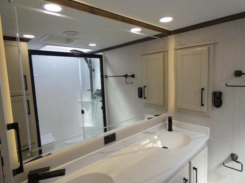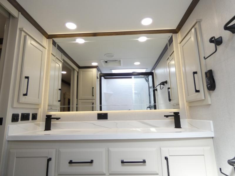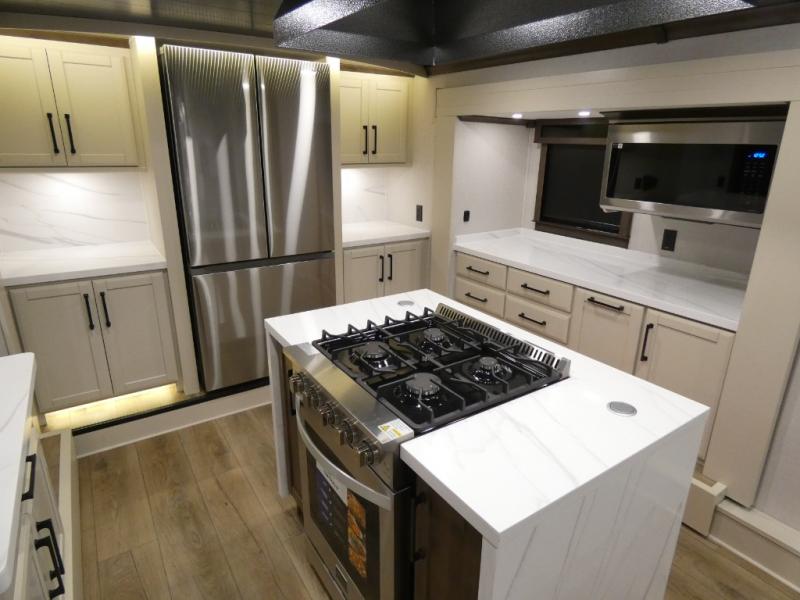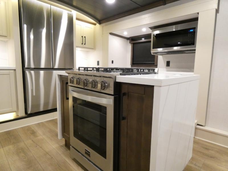 The Forest River RiverStone fifth wheels and toy haulers are luxurious units that have it all! You'll find an automatic six-point hydraulic level-up system to keep your unit in place, and there is preparation for a four-camera observation system. The TravlFi Journey XTR 4G/LTE router and WiFi extender will help you stay connected to the outside world, and you'll never have to overpack again since the Splendid “Astral” stackable washer and dryer will let you clean the small amount of clothes you've brought with you. Another high luxury is the Fischer Paykal dishwasher which will allow you to spend more time enjoying your camp life and less time cleaning up. Each unit is built with a LCI Road Armour suspension system, dual-pane frameless windows, a full docking station, a 200W solar panel, and a BMPro touch control system.