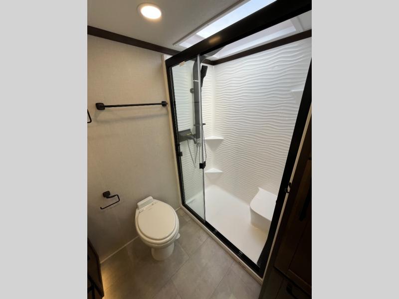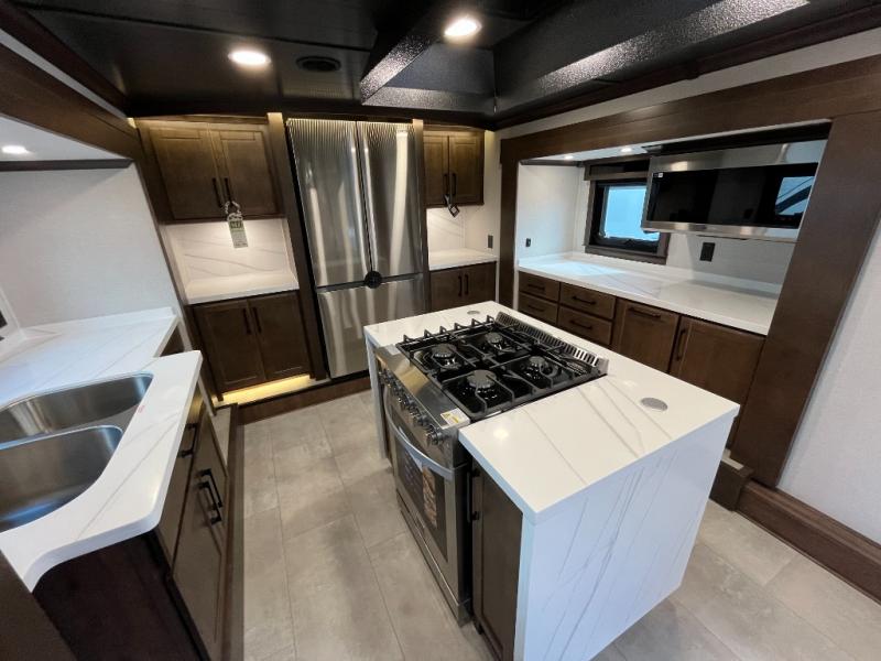 The Forest River RiverStone fifth wheels and toy haulers are luxurious units that have it all! You'll find an automatic six-point hydraulic level-up system to keep your unit in place, and there is preparation for a four-camera observation system. The TravlFi Journey XTR 4G/LTE router and WiFi extender will help you stay connected to the outside world, and you'll never have to overpack again since the Splendid “Astral” stackable washer and dryer will let you clean the small amount of clothes you've brought with you. Another high luxury is the Fischer Paykal dishwasher which will allow you to spend more time enjoying your camp life and less time cleaning up. Each unit is built with a LCI Road Armour suspension system, dual-pane frameless windows, a full docking station, a 200W solar panel, and a BMPro touch control system.
