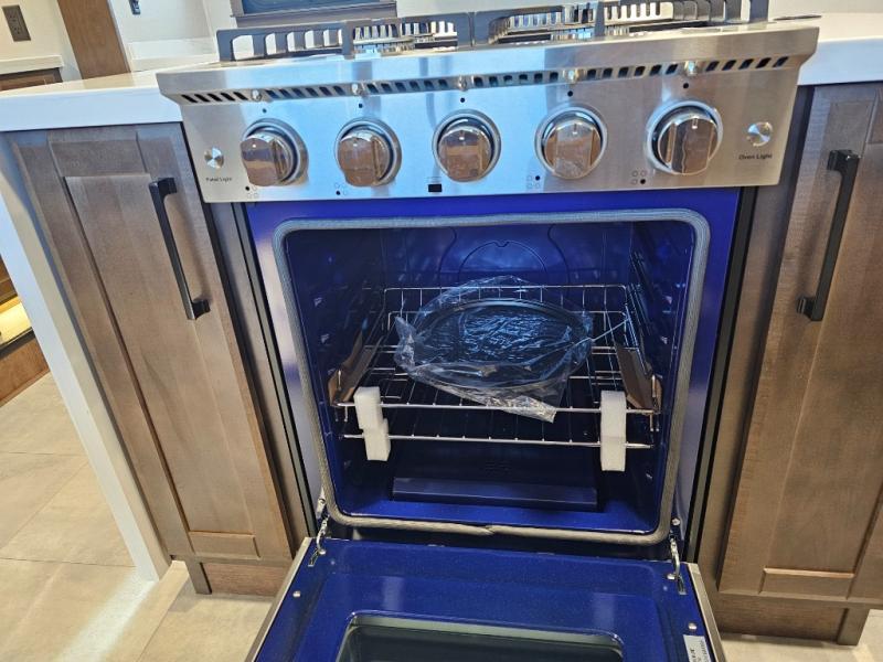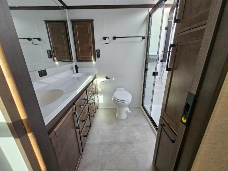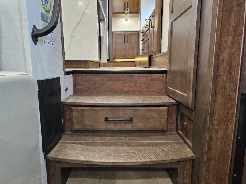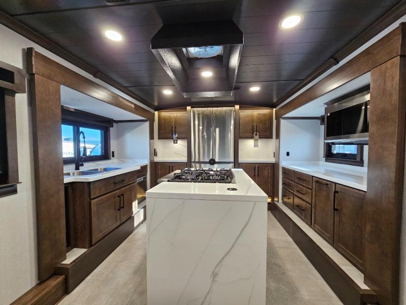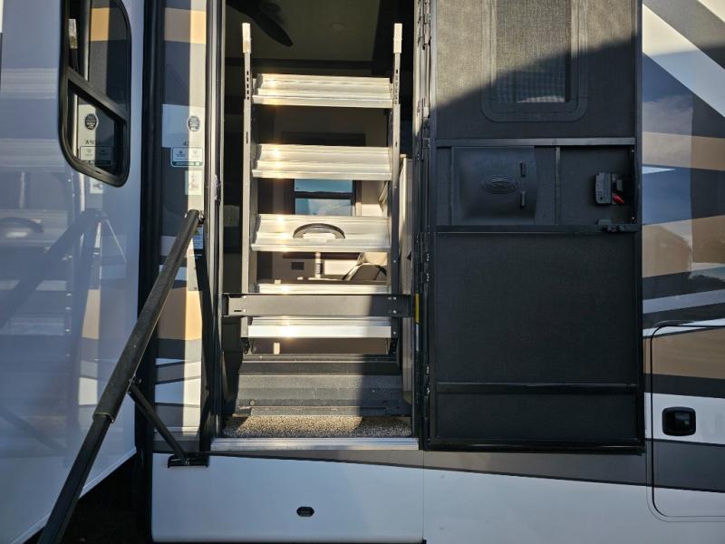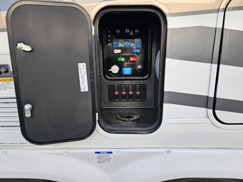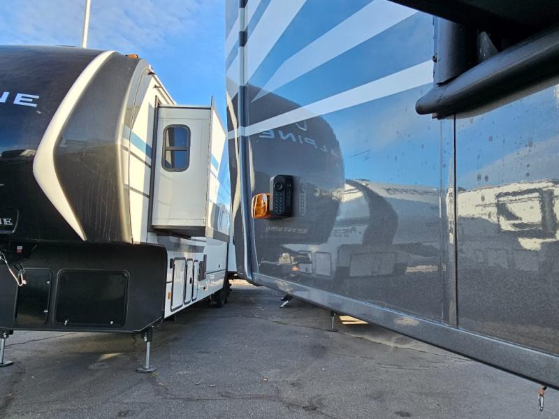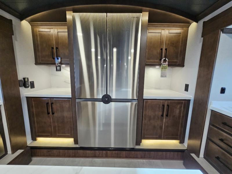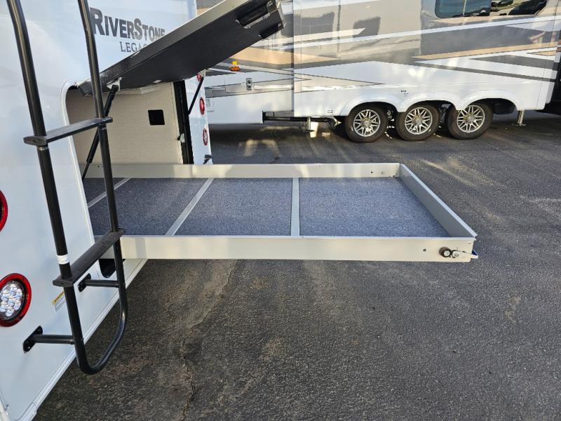 The Forest River RiverStone fifth wheels and toy haulers are luxurious units that have it all! You'll find an automatic six-point hydraulic level-up system to keep your unit in place, and there is preparation for a four-camera observation system. The TravlFi Journey XTR 4G/LTE router and WiFi extender will help you stay connected to the outside world, and you'll never have to overpack again since the Splendid “Astral” stackable washer and dryer will let you clean the small amount of clothes you've brought with you. Another high luxury is the Fischer Paykal dishwasher which will allow you to spend more time enjoying your camp life and less time cleaning up. Each unit is built with a LCI Road Armour suspension system, dual-pane frameless windows, a full docking station, a 200W solar panel, and a BMPro touch control system.