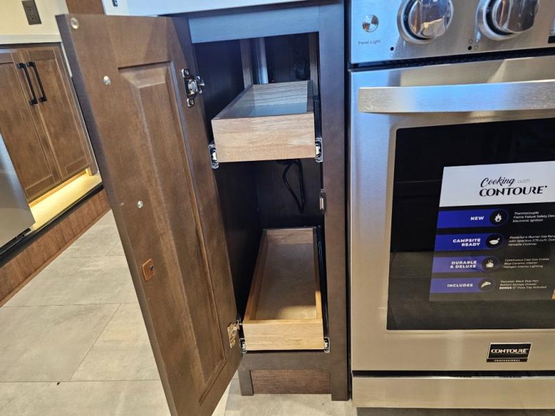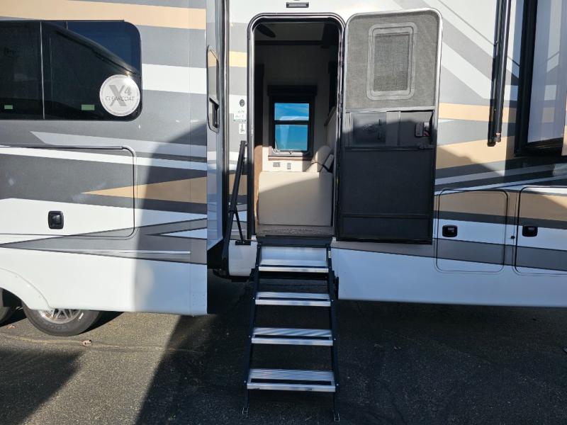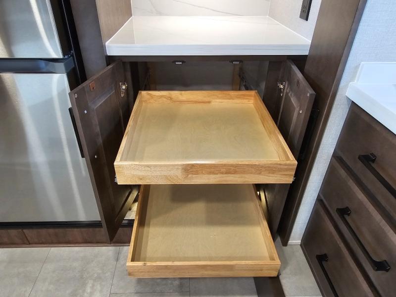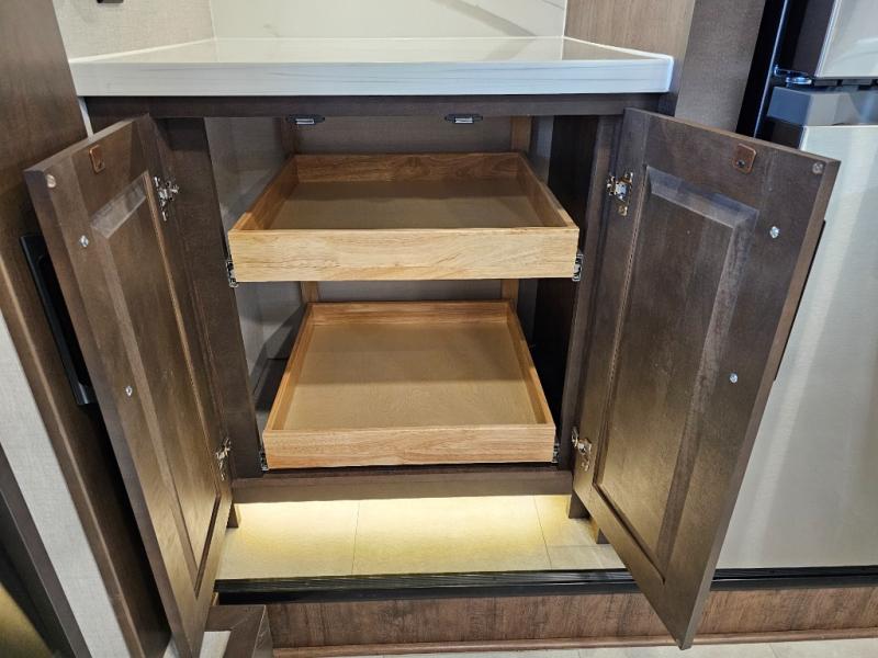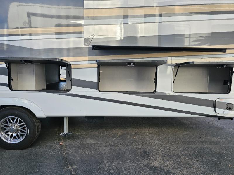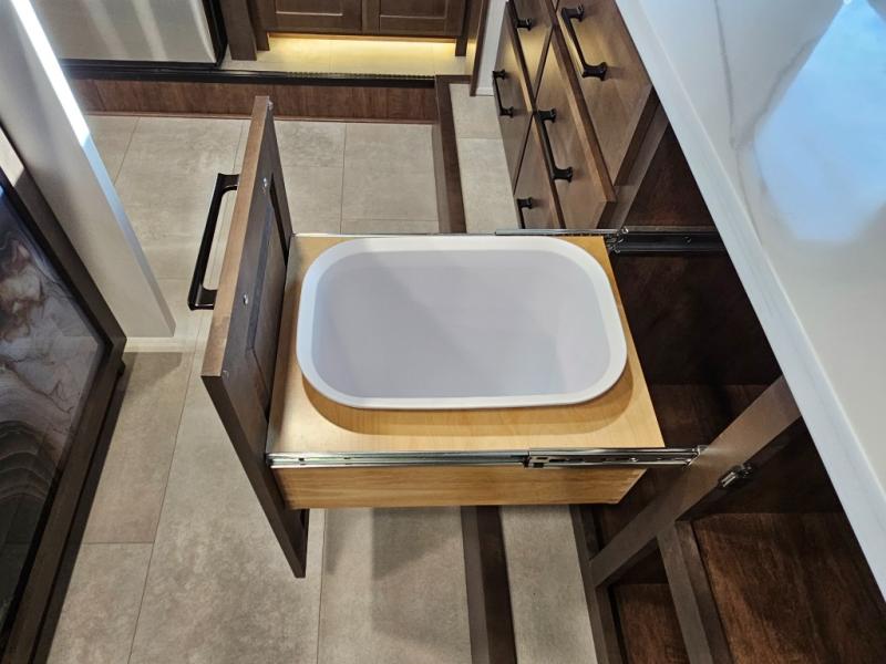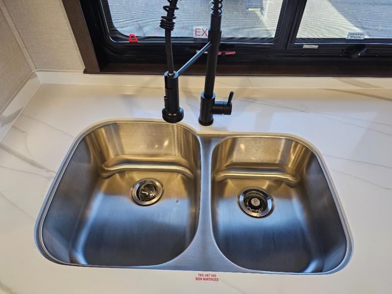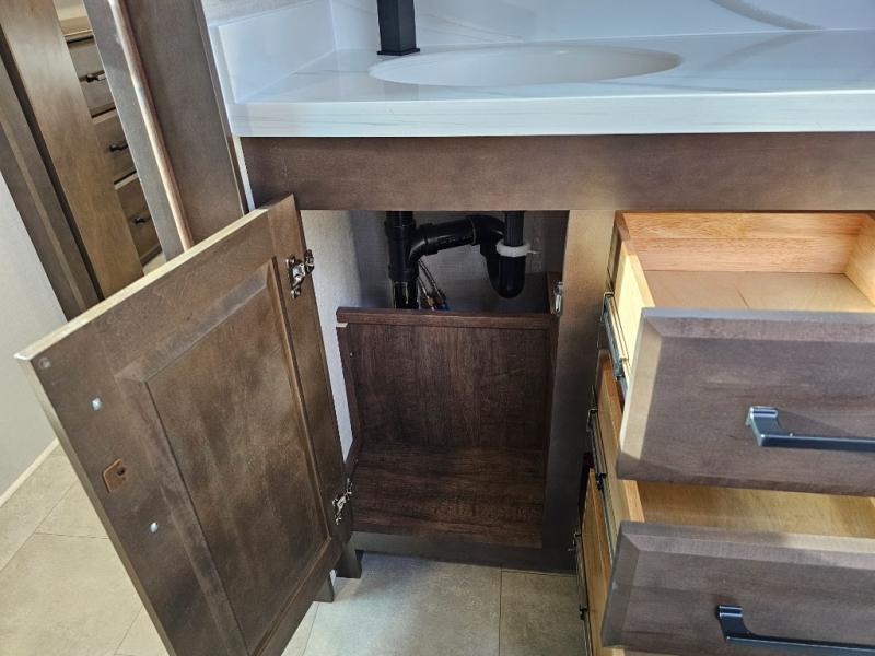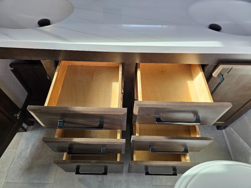 The Forest River RiverStone fifth wheels and toy haulers are luxurious units that have it all! You'll find an automatic six-point hydraulic level-up system to keep your unit in place, and there is preparation for a four-camera observation system. The TravlFi Journey XTR 4G/LTE router and WiFi extender will help you stay connected to the outside world, and you'll never have to overpack again since the Splendid “Astral” stackable washer and dryer will let you clean the small amount of clothes you've brought with you. Another high luxury is the Fischer Paykal dishwasher which will allow you to spend more time enjoying your camp life and less time cleaning up. Each unit is built with a LCI Road Armour suspension system, dual-pane frameless windows, a full docking station, a 200W solar panel, and a BMPro touch control system.