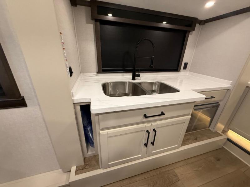 The Forest River RiverStone fifth wheels and toy haulers are luxurious units that have it all! You'll find an automatic six-point hydraulic level-up system to keep your unit in place, and there is preparation for a four-camera observation system. The TravlFi Journey XTR 4G/LTE router and WiFi extender will help you stay connected to the outside world, and you'll never have to overpack again since the Splendid “Astral” stackable washer and dryer will let you clean the small amount of clothes you've brought with you. Another high luxury is the Fischer Paykal dishwasher which will allow you to spend more time enjoying your camp life and less time cleaning up. Each unit is built with a LCI Road Armour suspension system, dual-pane frameless windows, a full docking station, a 200W solar panel, and a BMPro touch control system.