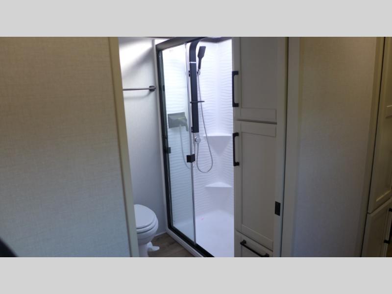 The Forest River RiverStone fifth wheels and toy haulers are luxurious units that have it all! You'll find an automatic six-point hydraulic level-up system to keep your unit in place, and there is preparation for a four-camera observation system. The TravlFi Journey XTR 4G/LTE router and WiFi extender will help you stay connected to the outside world, and you'll never have to overpack again since the Splendid “Astral” stackable washer and dryer will let you clean the small amount of clothes you've brought with you. Another high luxury is the Fischer Paykal dishwasher which will allow you to spend more time enjoying your camp life and less time cleaning up. Each unit is built with a LCI Road Armour suspension system, dual-pane frameless windows, a full docking station, a 200W solar panel, and a BMPro touch control system.
