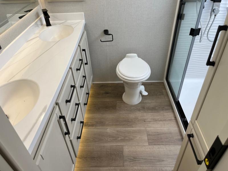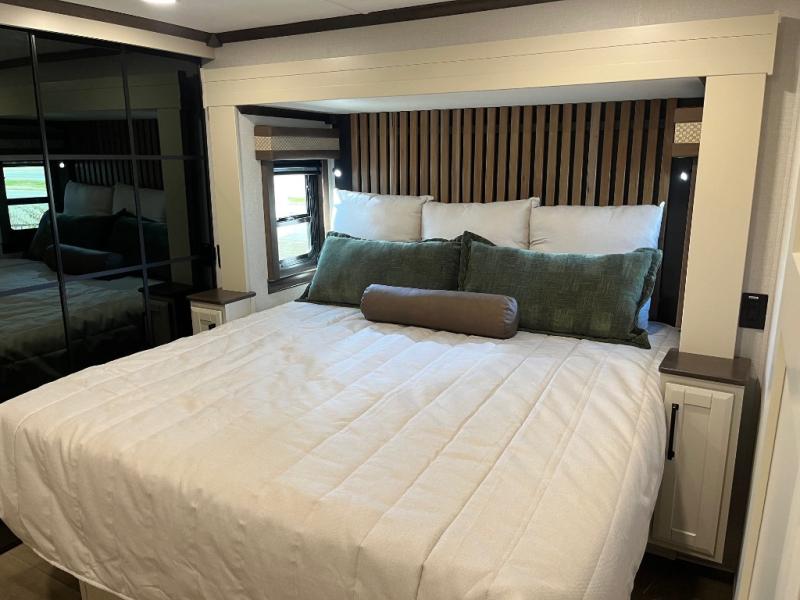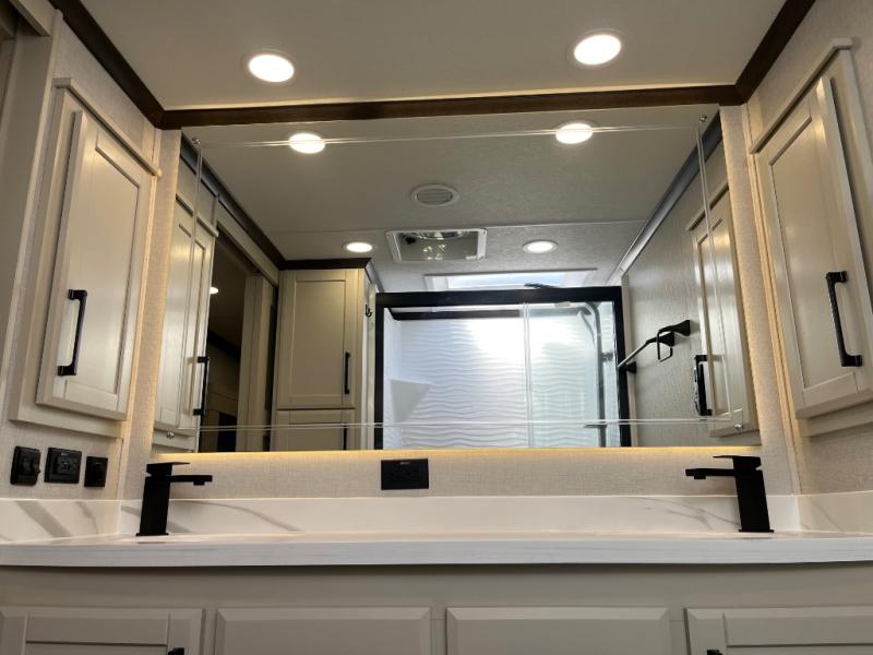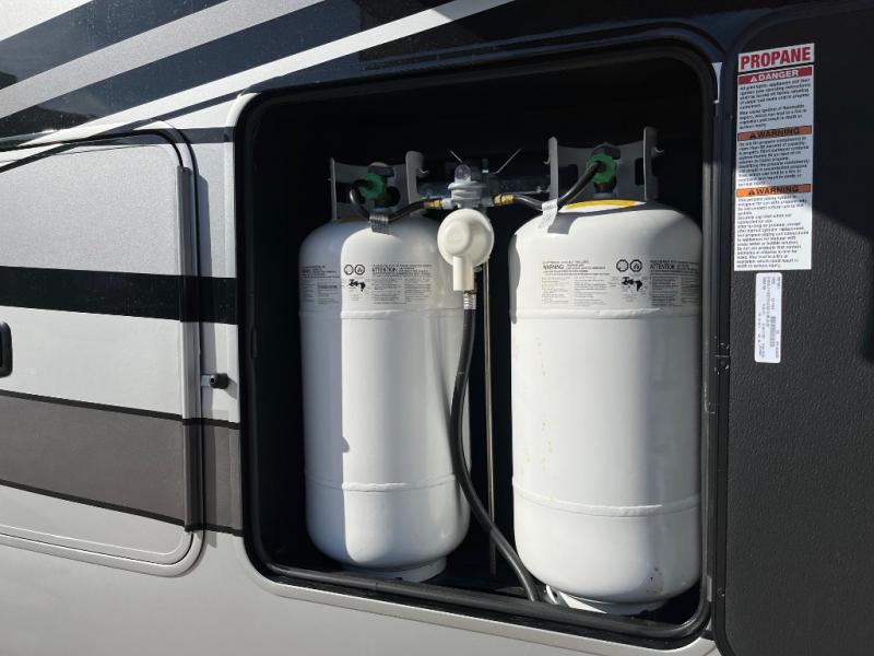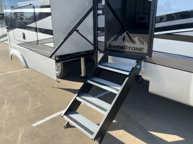 The Forest River RiverStone fifth wheels and toy haulers are luxurious units that have it all! You'll find an automatic six-point hydraulic level-up system to keep your unit in place, and there is preparation for a four-camera observation system. The TravlFi Journey XTR 4G/LTE router and WiFi extender will help you stay connected to the outside world, and you'll never have to overpack again since the Splendid “Astral” stackable washer and dryer will let you clean the small amount of clothes you've brought with you. Another high luxury is the Fischer Paykal dishwasher which will allow you to spend more time enjoying your camp life and less time cleaning up. Each unit is built with a LCI Road Armour suspension system, dual-pane frameless windows, a full docking station, a 200W solar panel, and a BMPro touch control system.