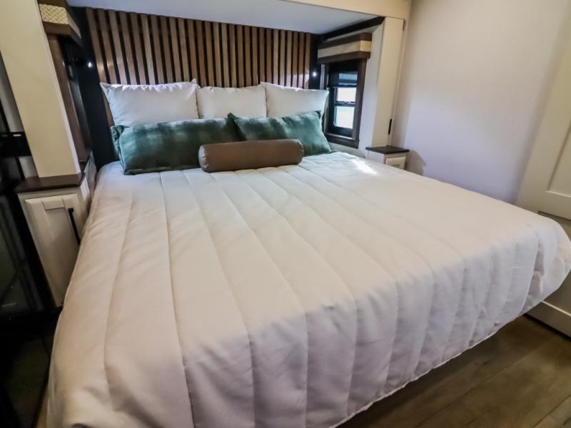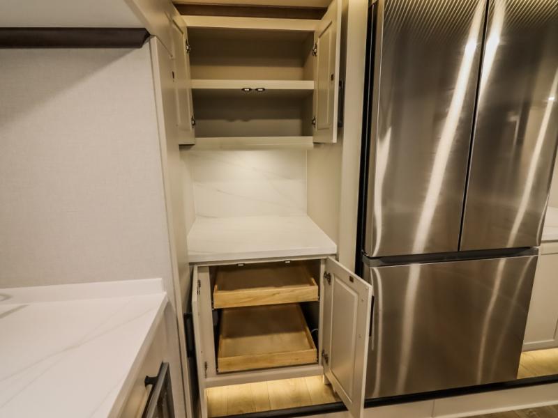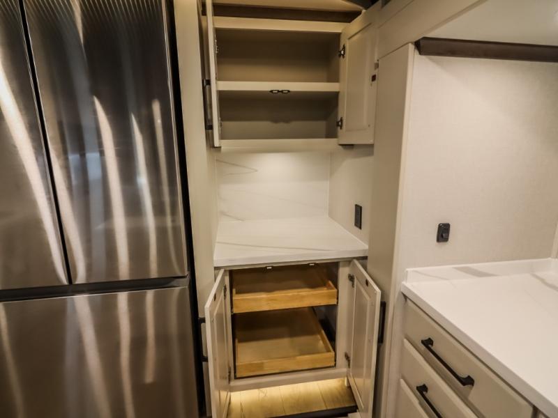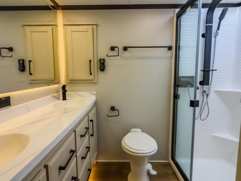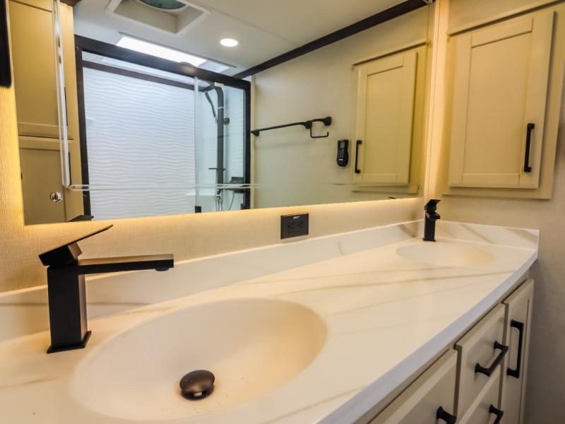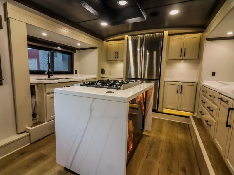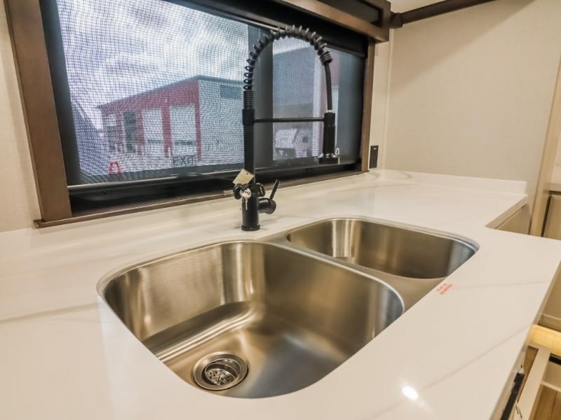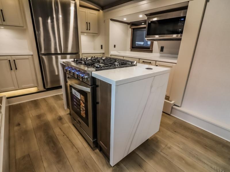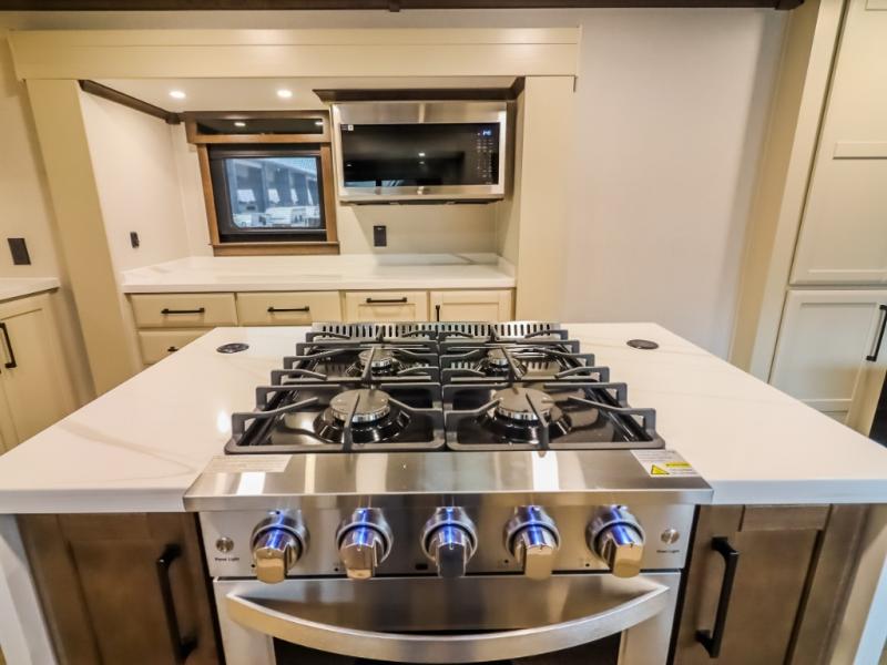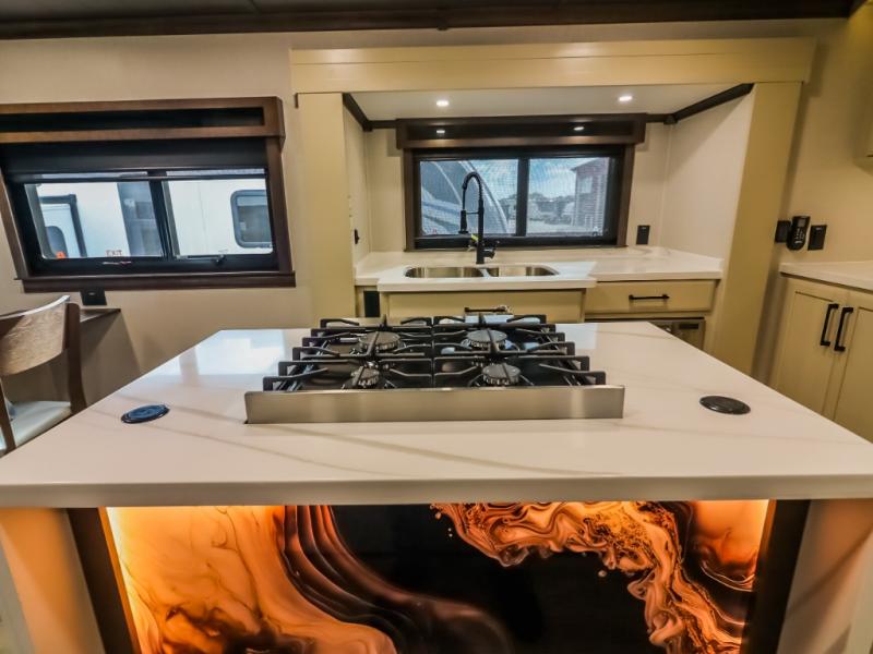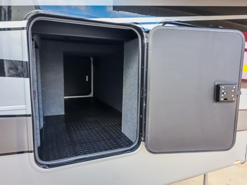 The Forest River RiverStone fifth wheels and toy haulers are luxurious units that have it all! You'll find an automatic six-point hydraulic level-up system to keep your unit in place, and there is preparation for a four-camera observation system. The TravlFi Journey XTR 4G/LTE router and WiFi extender will help you stay connected to the outside world, and you'll never have to overpack again since the Splendid “Astral” stackable washer and dryer will let you clean the small amount of clothes you've brought with you. Another high luxury is the Fischer Paykal dishwasher which will allow you to spend more time enjoying your camp life and less time cleaning up. Each unit is built with a LCI Road Armour suspension system, dual-pane frameless windows, a full docking station, a 200W solar panel, and a BMPro touch control system.