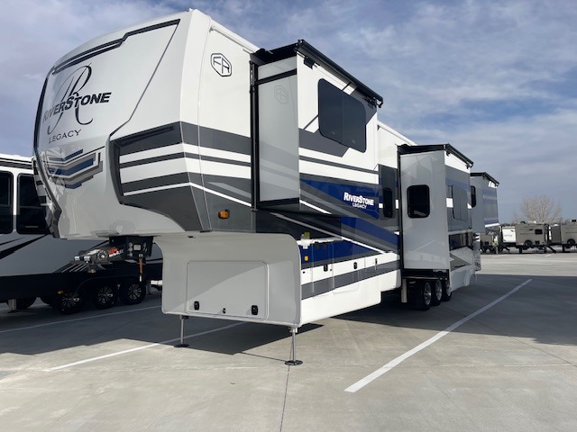 The Forest River RiverStone fifth wheels and toy haulers are luxurious units that have it all! You'll find an automatic six-point hydraulic level-up system to keep your unit in place, and there is preparation for a four-camera observation system. The TravlFi Journey XTR 4G/LTE router and WiFi extender will help you stay connected to the outside world, and you'll never have to overpack again since the Splendid “Astral” stackable washer and dryer will let you clean the small amount of clothes you've brought with you. Another high luxury is the Fischer Paykal dishwasher which will allow you to spend more time enjoying your camp life and less time cleaning up. Each unit is built with a LCI Road Armour suspension system, dual-pane frameless windows, a full docking station, a 200W solar panel, and a BMPro touch control system.