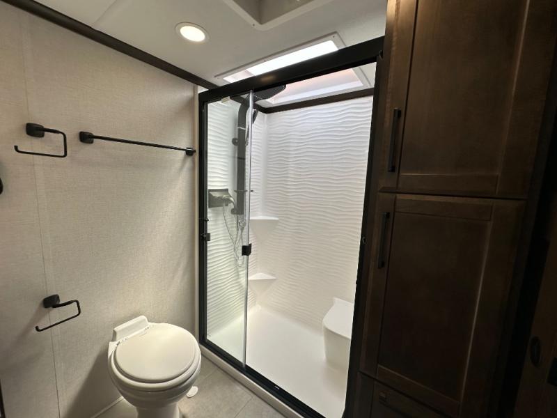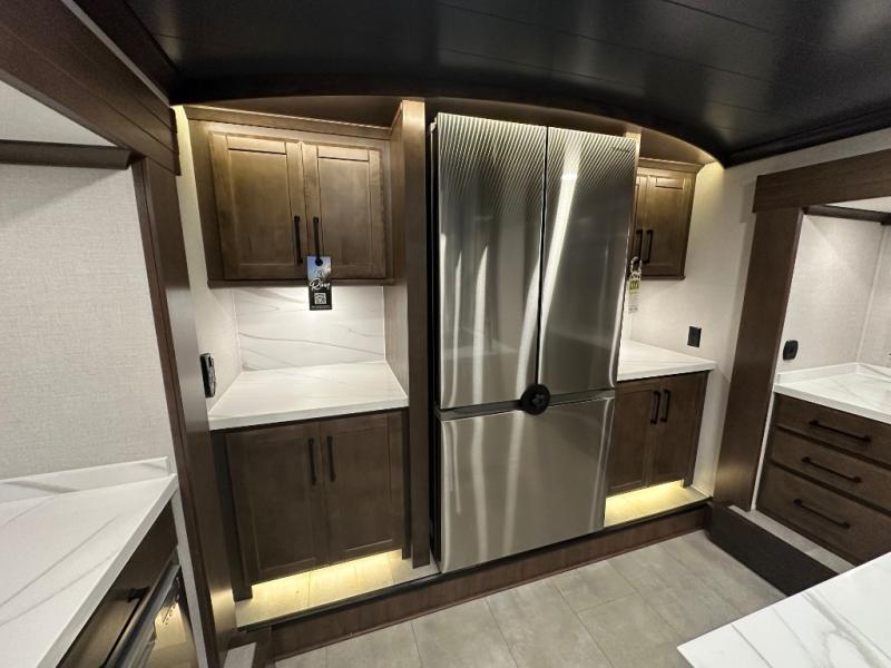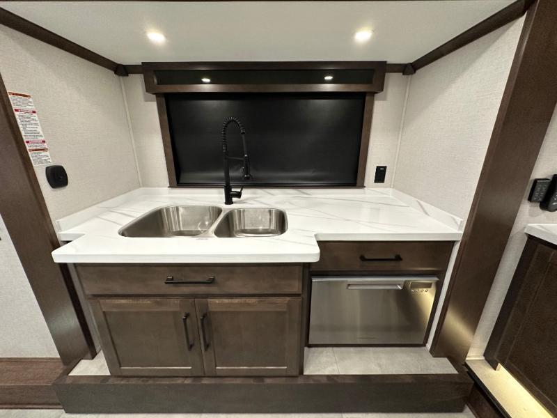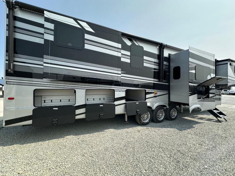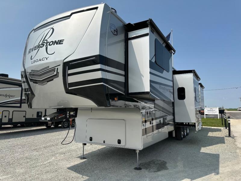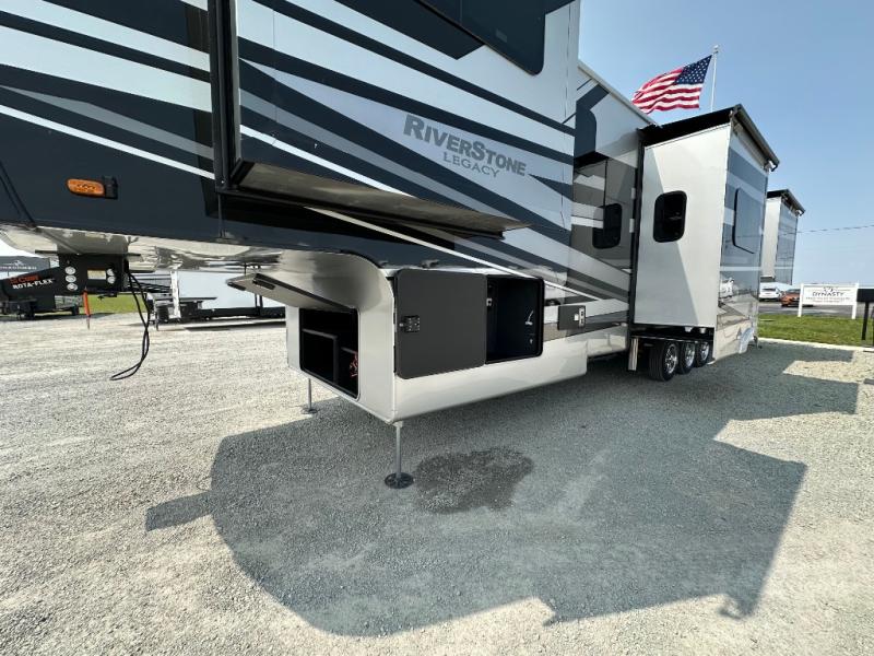 The Forest River RiverStone fifth wheels and toy haulers are luxurious units that have it all! You'll find an automatic six-point hydraulic level-up system to keep your unit in place, and there is preparation for a four-camera observation system. The TravlFi Journey XTR 4G/LTE router and WiFi extender will help you stay connected to the outside world, and you'll never have to overpack again since the Splendid “Astral” stackable washer and dryer will let you clean the small amount of clothes you've brought with you. Another high luxury is the Fischer Paykal dishwasher which will allow you to spend more time enjoying your camp life and less time cleaning up. Each unit is built with a LCI Road Armour suspension system, dual-pane frameless windows, a full docking station, a 200W solar panel, and a BMPro touch control system.