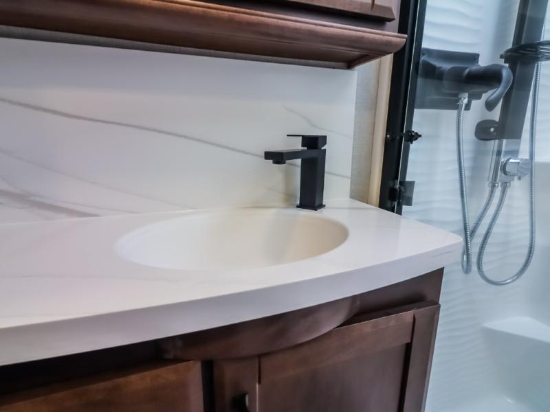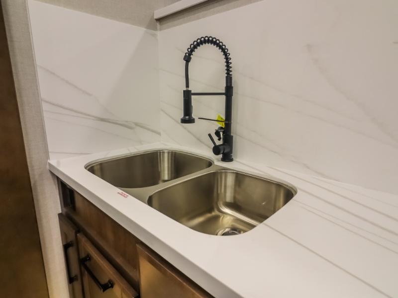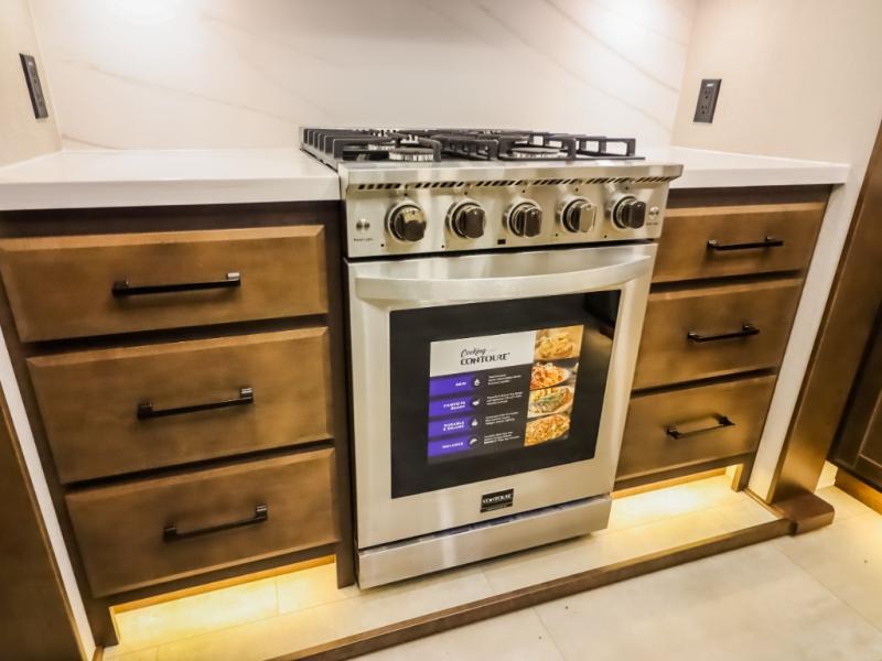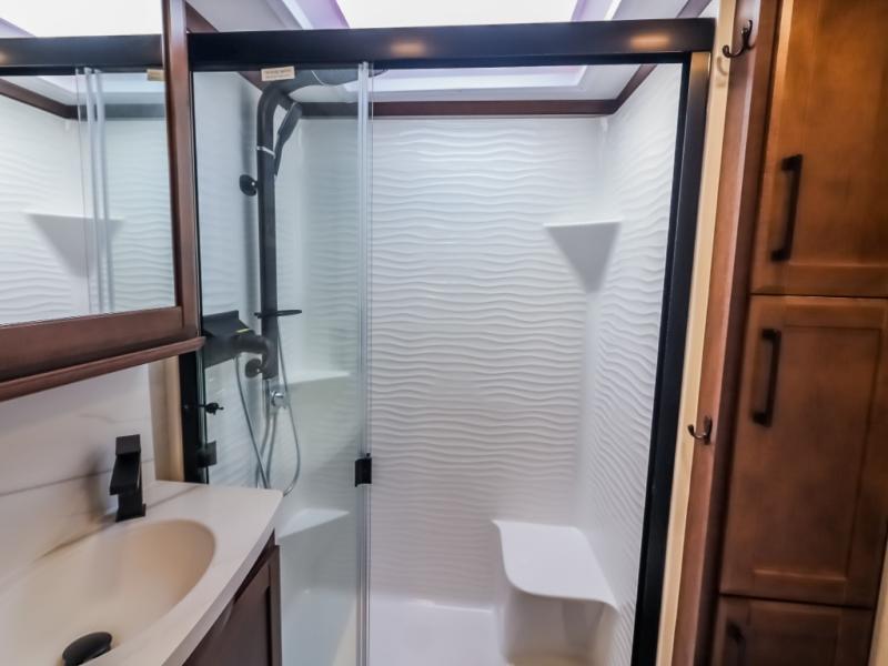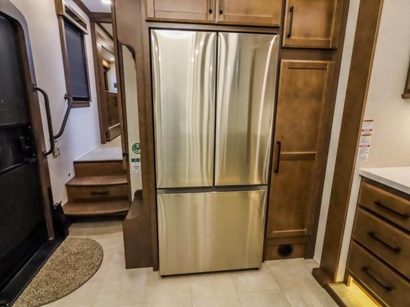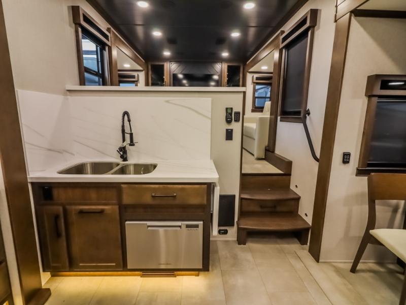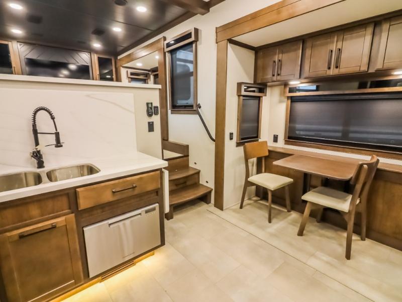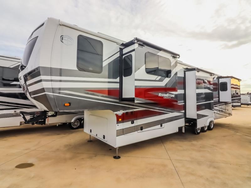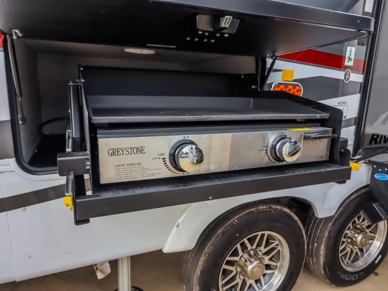 The Forest River RiverStone fifth wheels and toy haulers are luxurious units that have it all! You'll find an automatic six-point hydraulic level-up system to keep your unit in place, and there is preparation for a four-camera observation system. The TravlFi Journey XTR 4G/LTE router and WiFi extender will help you stay connected to the outside world, and you'll never have to overpack again since the Splendid “Astral” stackable washer and dryer will let you clean the small amount of clothes you've brought with you. Another high luxury is the Fischer Paykal dishwasher which will allow you to spend more time enjoying your camp life and less time cleaning up. Each unit is built with a LCI Road Armour suspension system, dual-pane frameless windows, a full docking station, a 200W solar panel, and a BMPro touch control system.