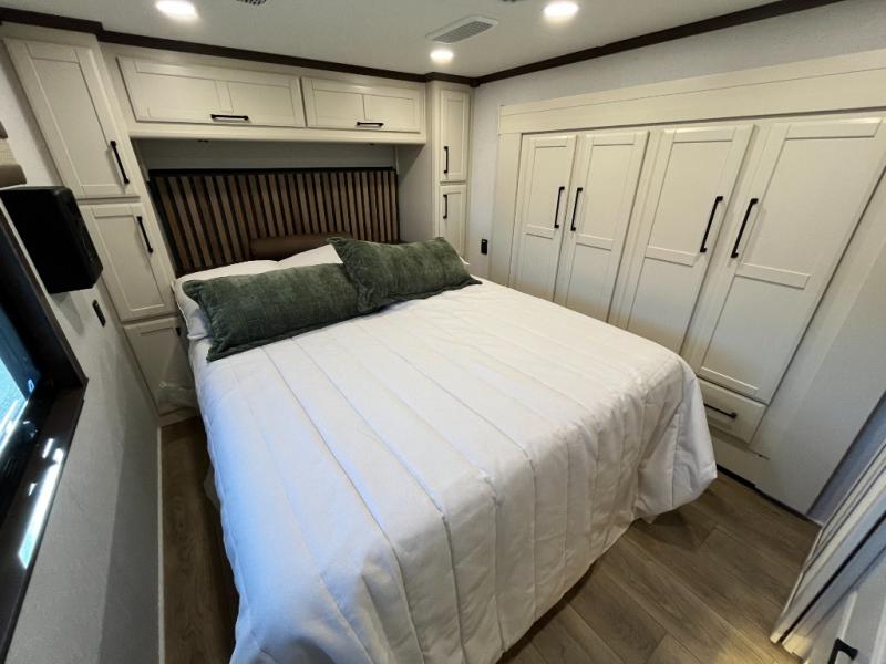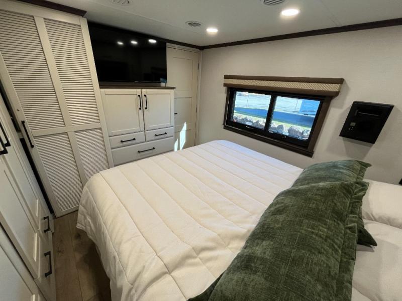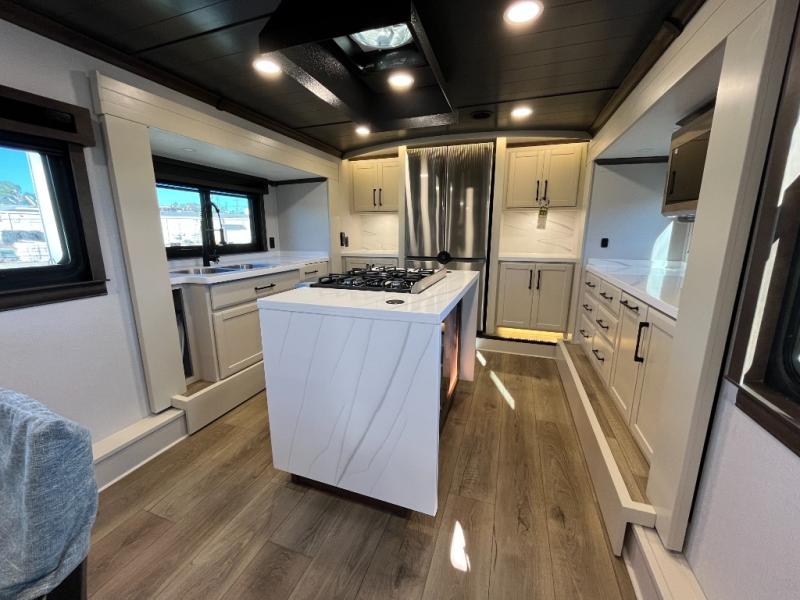 The Forest River RiverStone fifth wheels and toy haulers are luxurious units that have it all! You'll find an automatic six-point hydraulic level-up system to keep your unit in place, and there is preparation for a four-camera observation system. The TravlFi Journey XTR 4G/LTE router and WiFi extender will help you stay connected to the outside world, and you'll never have to overpack again since the Splendid “Astral” stackable washer and dryer will let you clean the small amount of clothes you've brought with you. Another high luxury is the Fischer Paykal dishwasher which will allow you to spend more time enjoying your camp life and less time cleaning up. Each unit is built with a LCI Road Armour suspension system, dual-pane frameless windows, a full docking station, a 200W solar panel, and a BMPro touch control system.