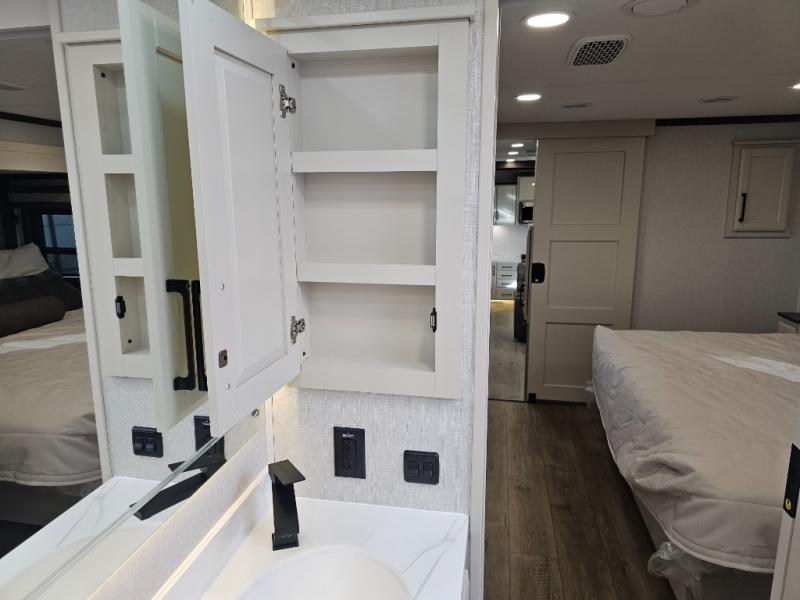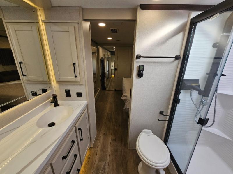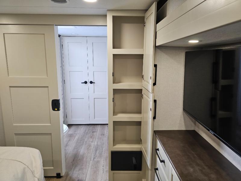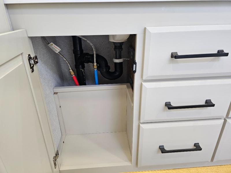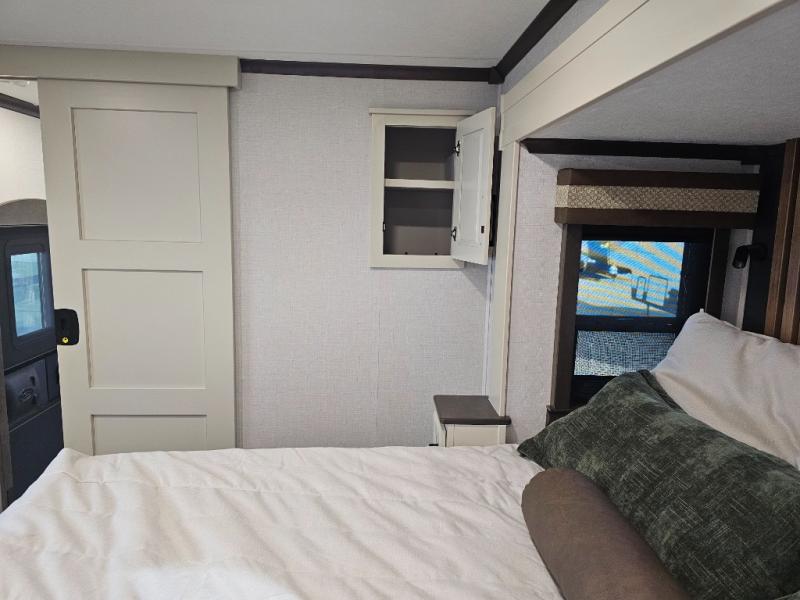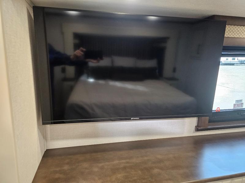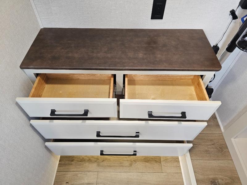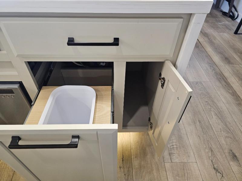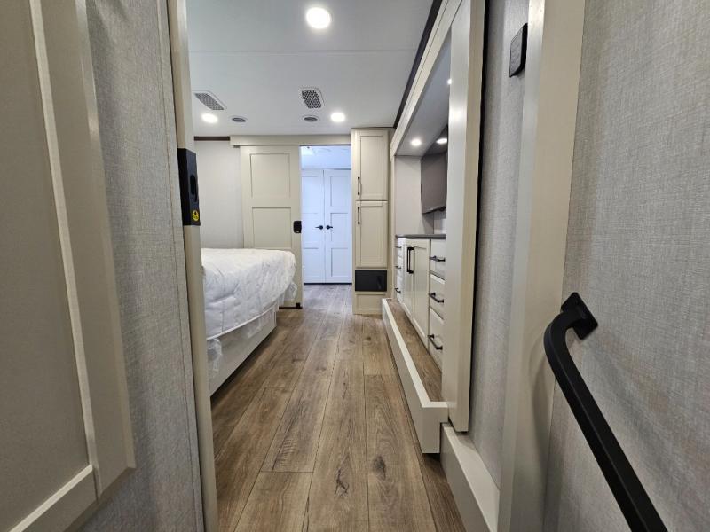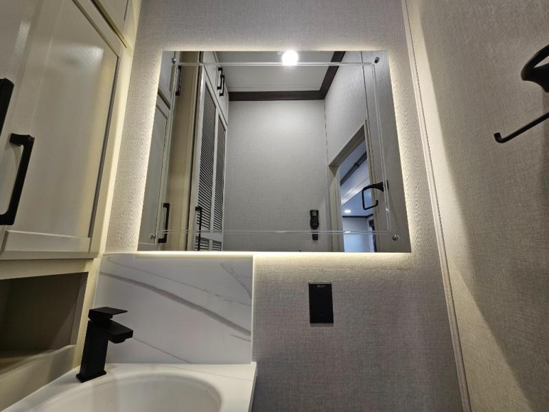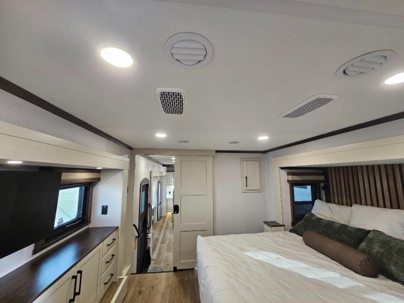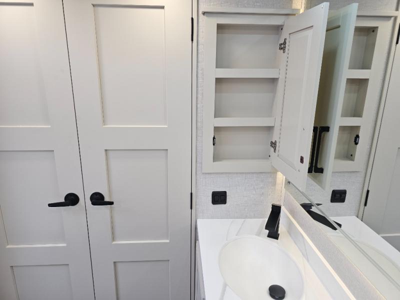 The RiverStone 43BFC isn't just another fifth wheel... it's a residential retreat designed for travelers who want every journey to feel like home. This impressive floor has a designated high-end kitchen space with tons of room, a large pantry, ample counter space and a lovely french door refrigerator will make for unforgettable meals on the go. You can also enjoy a great time with your partner and enjoy all the free time you want at the large sectional sofa you'll never want to leave! After enjoying the living room you will be fascinated by the primary bedroom suite that delivers a quiet, comfortable and spacious sanctuary featuring a dresser and dedicated shoe storage to organize all your personal belongings.