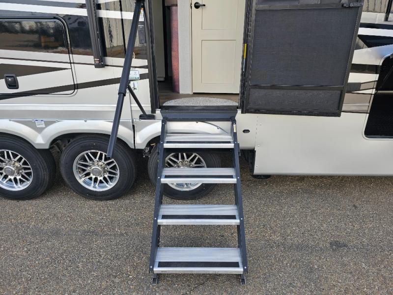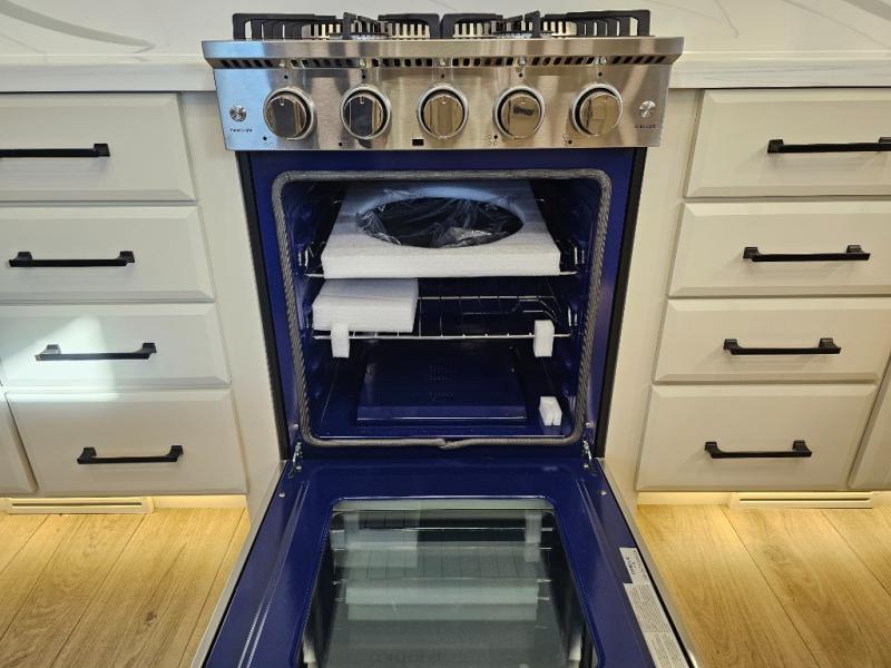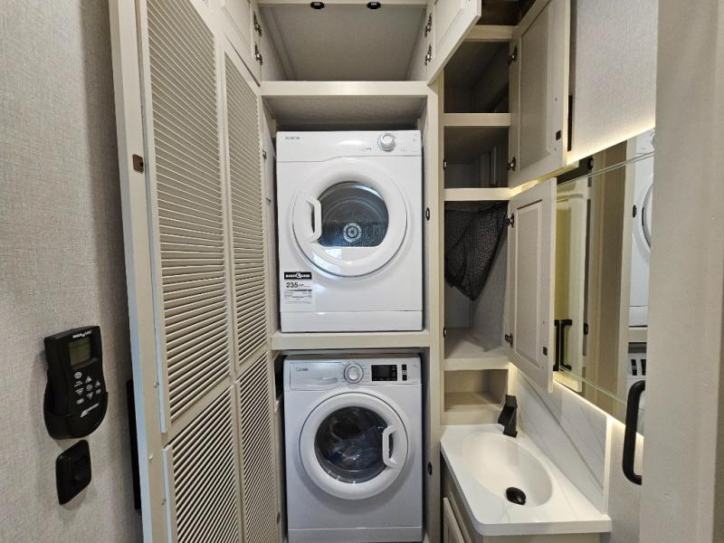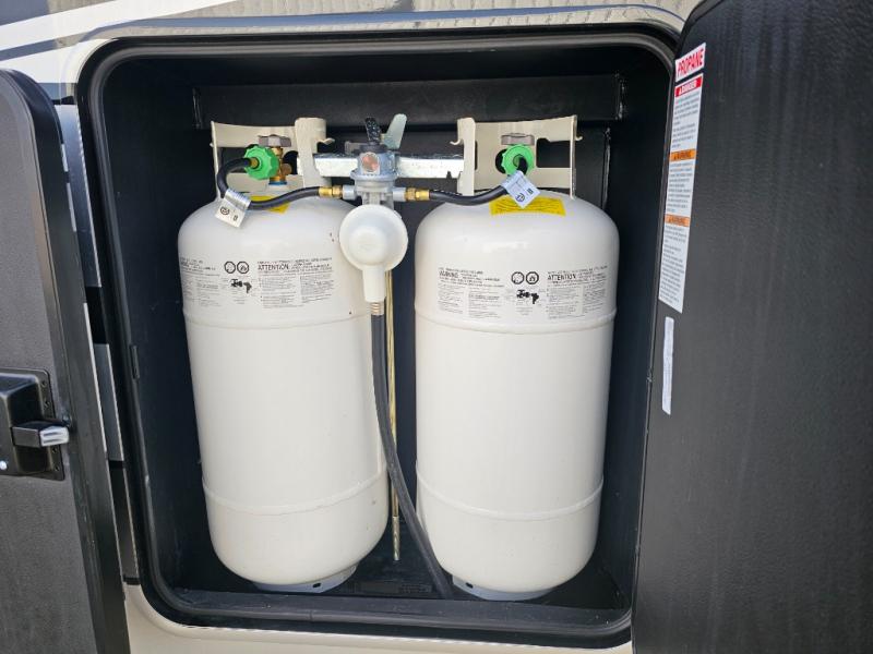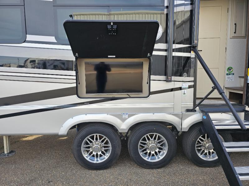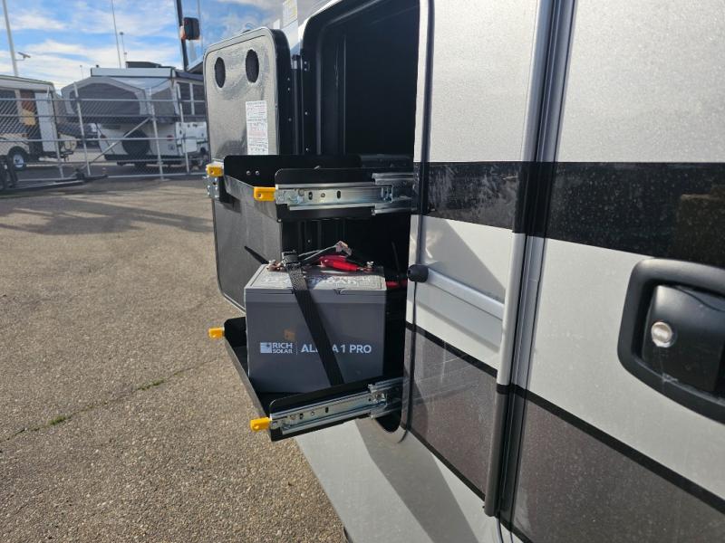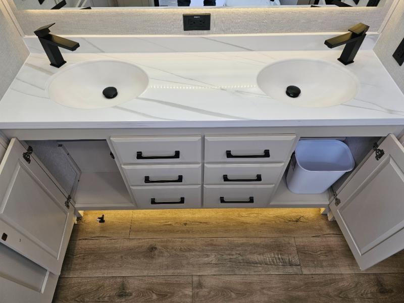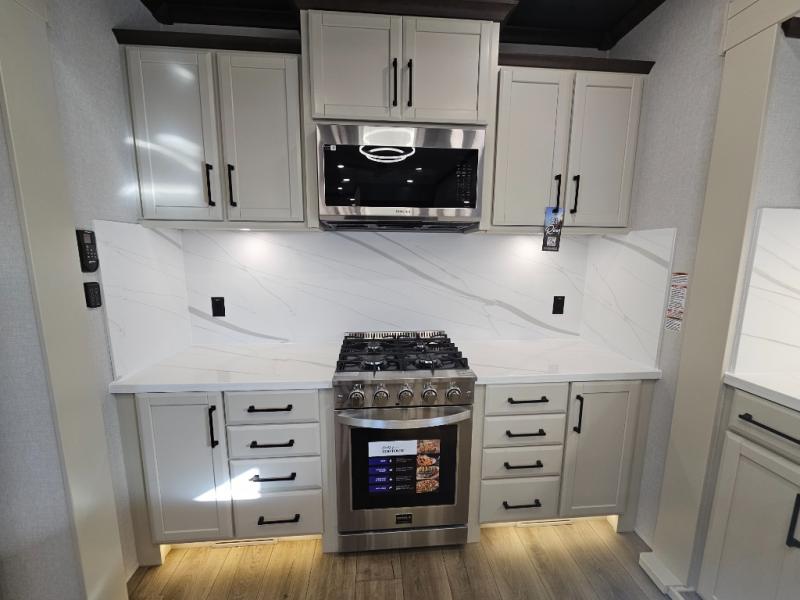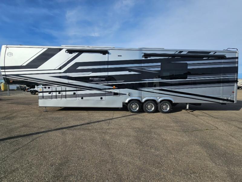The Forest River RiverStone fifth wheels and toy haulers are luxurious units that have it all! You'll find an automatic six-point hydraulic level-up system to keep your unit in place, and there is preparation for a four-camera observation system. The TravlFi Journey XTR 4G/LTE router and WiFi extender will help you stay connected to the outside world, and you'll never have to overpack again since the Splendid “Astral” stackable washer and dryer will let you clean the small amount of clothes you've brought with you. Another high luxury is the Fischer Paykal dishwasher which will allow you to spend more time enjoying your camp life and less time cleaning up. Each unit is built with an LCI Road Armour suspension system, dual-pane frameless windows, a full docking station, a 200W solar panel, and a BMPro touch control system.