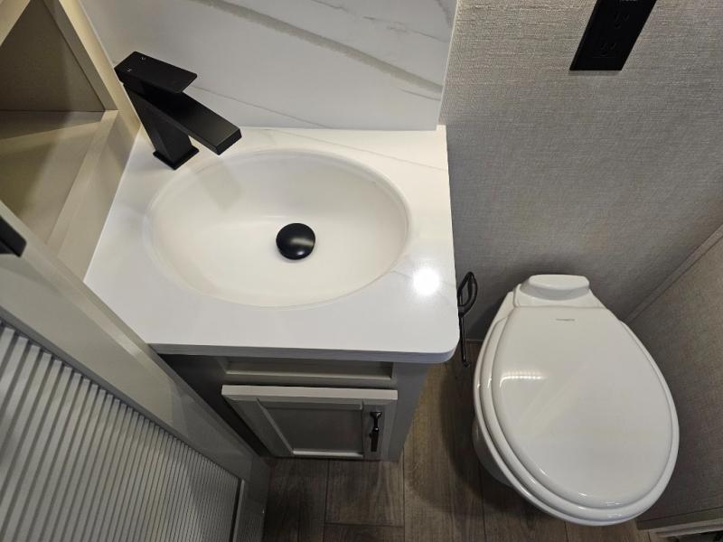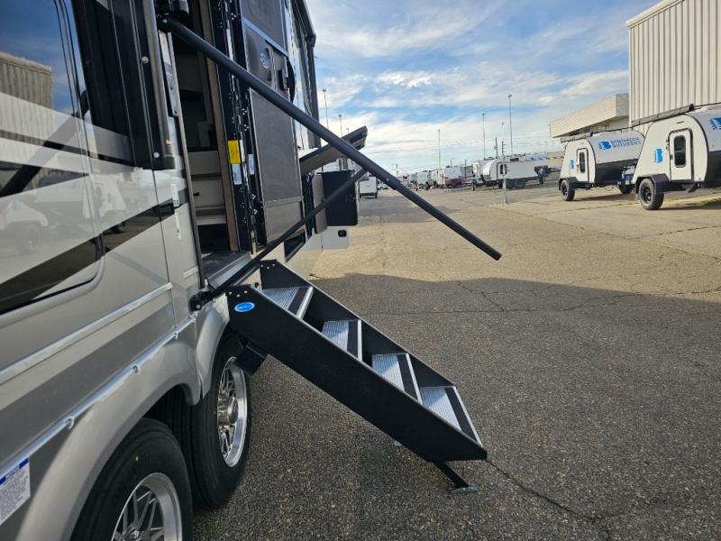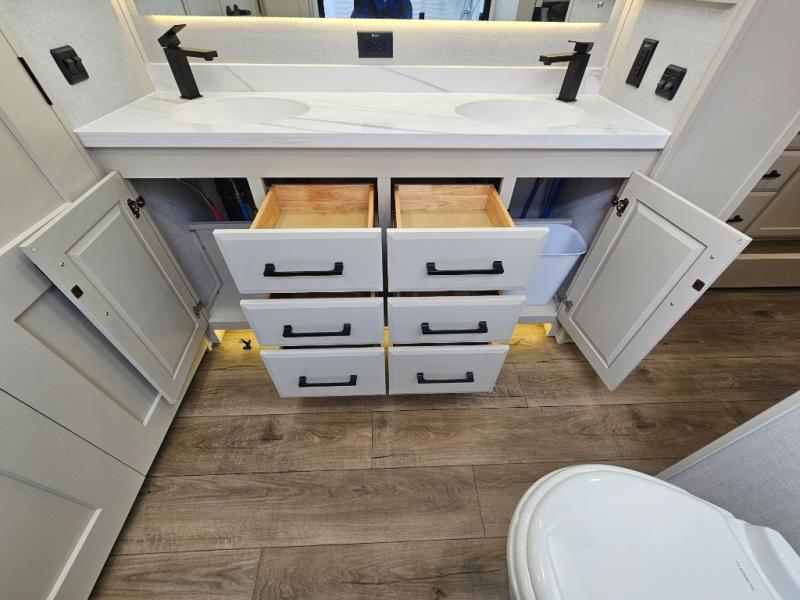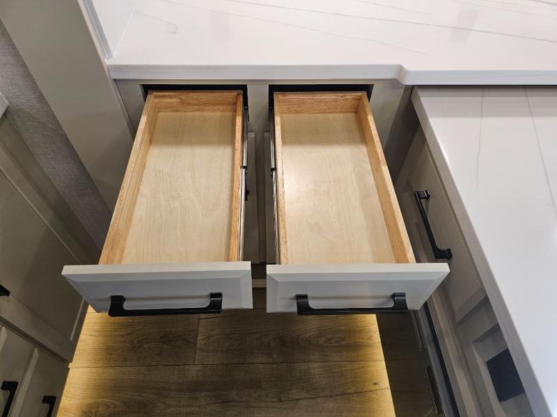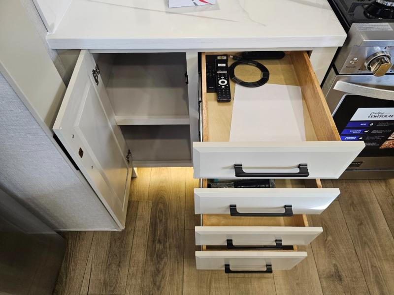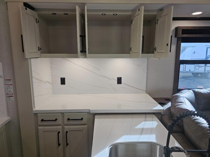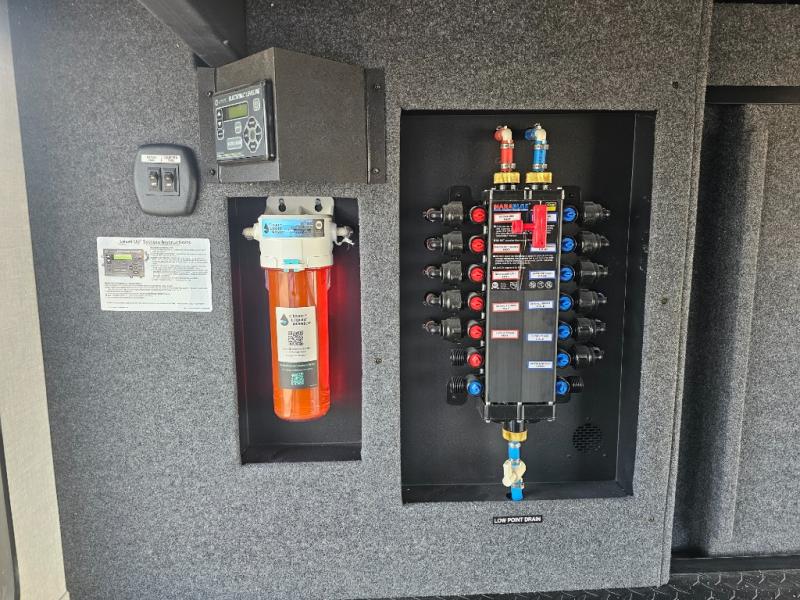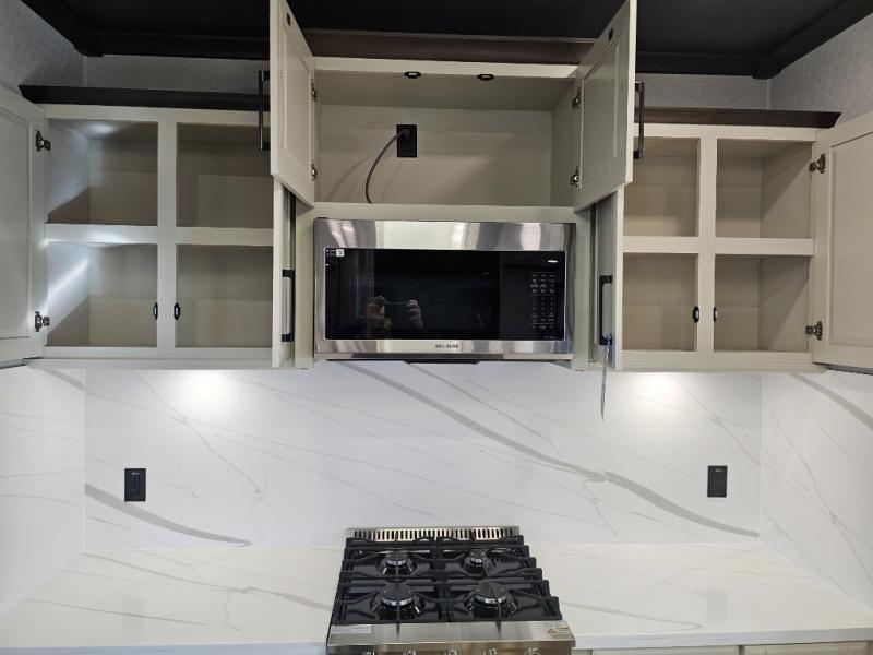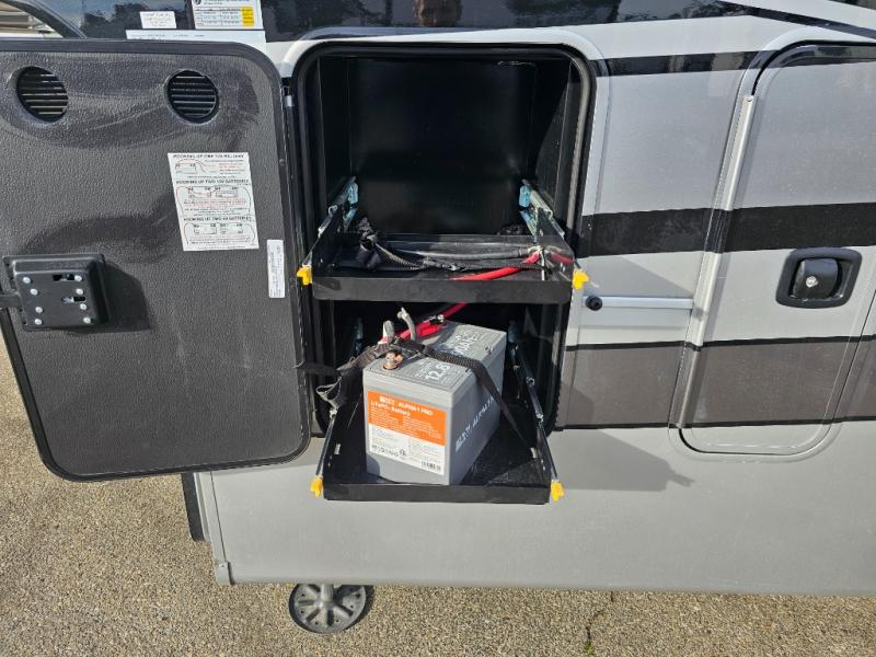 The Forest River RiverStone fifth wheels and toy haulers are luxurious units that have it all! You'll find an automatic six-point hydraulic level-up system to keep your unit in place, and there is preparation for a four-camera observation system. The TravlFi Journey XTR 4G/LTE router and WiFi extender will help you stay connected to the outside world, and you'll never have to overpack again since the Splendid “Astral” stackable washer and dryer will let you clean the small amount of clothes you've brought with you. Another high luxury is the Fischer Paykal dishwasher which will allow you to spend more time enjoying your camp life and less time cleaning up. Each unit is built with an LCI Road Armour suspension system, dual-pane frameless windows, a full docking station, a 200W solar panel, and a BMPro touch control system.