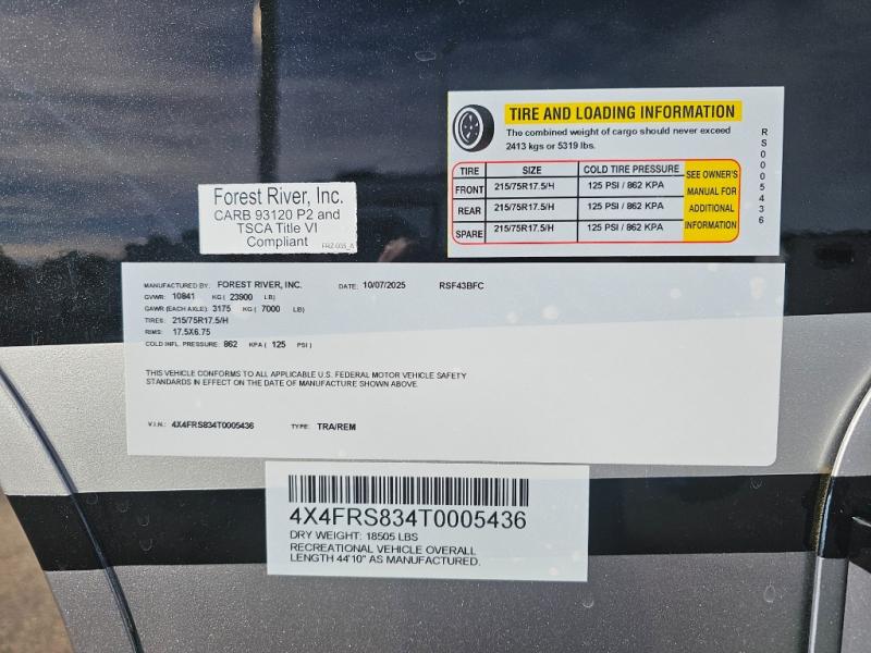 New 2026 Forest River RV RiverStone 43BFC Fifth Wheel