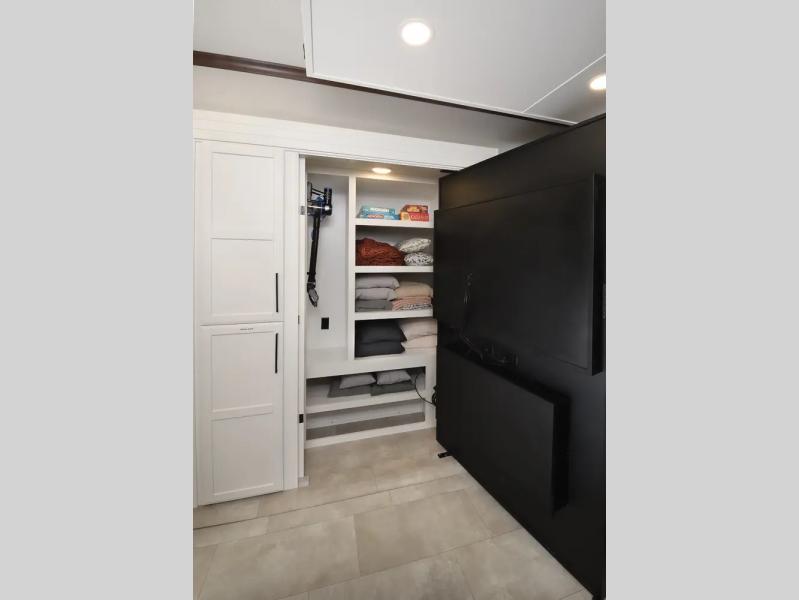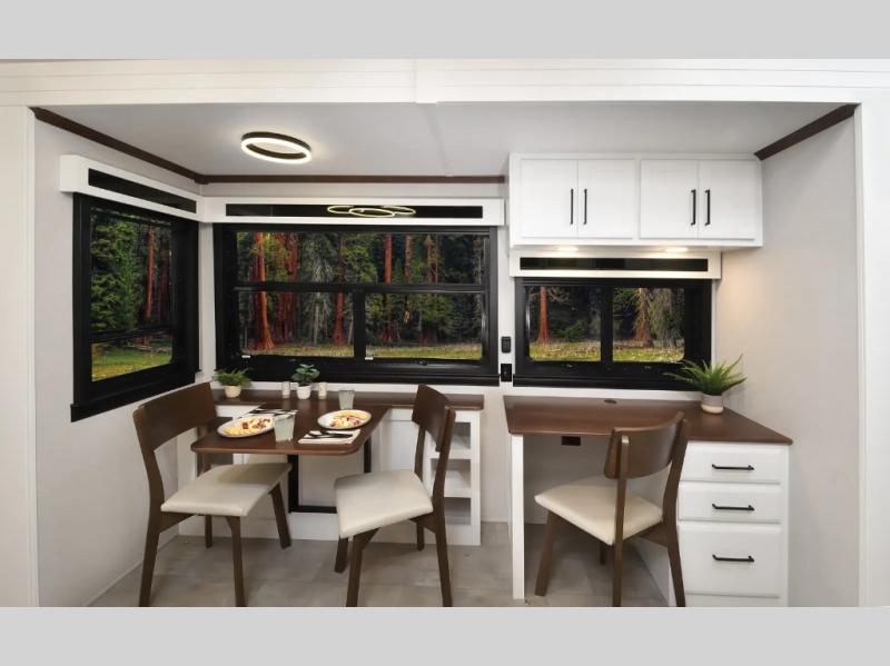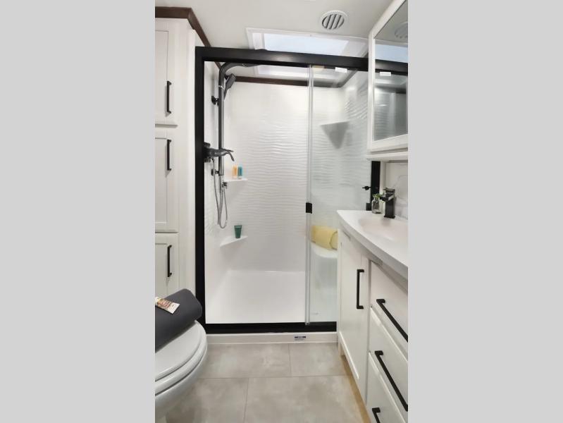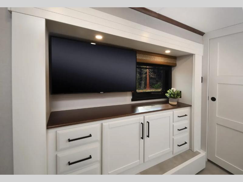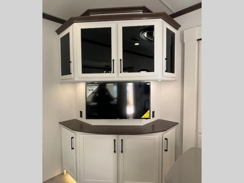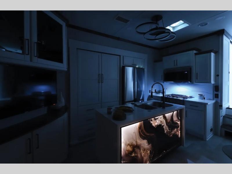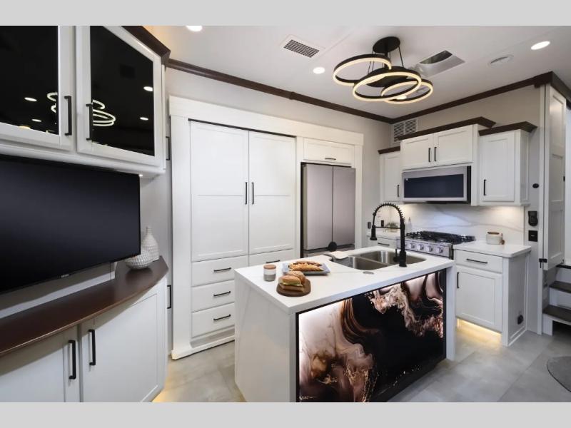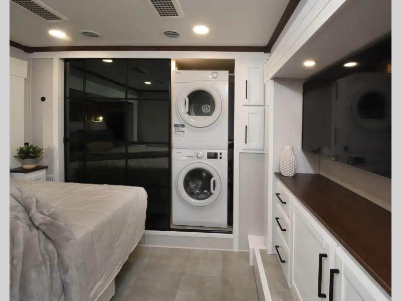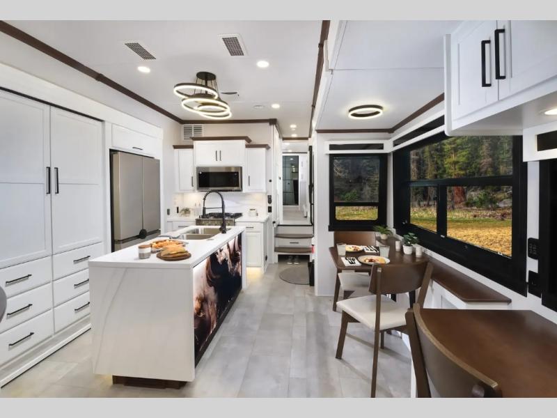 The Forest River RiverStone fifth wheels and toy haulers are luxurious units that have it all! You'll find an automatic six-point hydraulic level-up system to keep your unit in place, and there is preparation for a four-camera observation system. The King Wi-Fi Max router and omni-directional Wi-Fi antenna/extender will help you stay connected to the outside world, and you'll never have to overpack again since the Splendid “Astral” stackable washer and dryer will let you clean the small amount of clothes you've brought with you. Another high luxury is the Fischer Paykal dishwasher which will allow you to spend more time enjoying your camp life and less time cleaning up. Each unit is built with a Trail-Aire Road Armour suspension system, dual-pane frameless windows, a full docking station, a 190W solar panel, and a Firefly integrated touch control system.