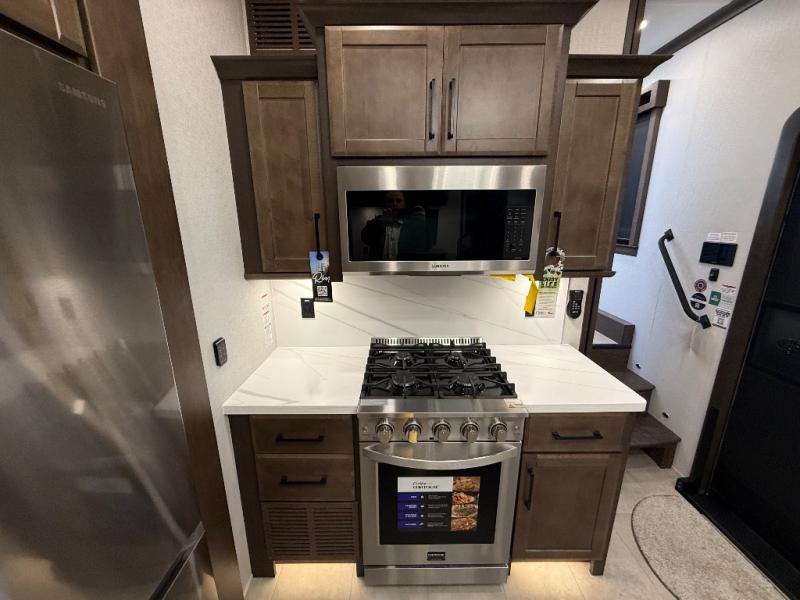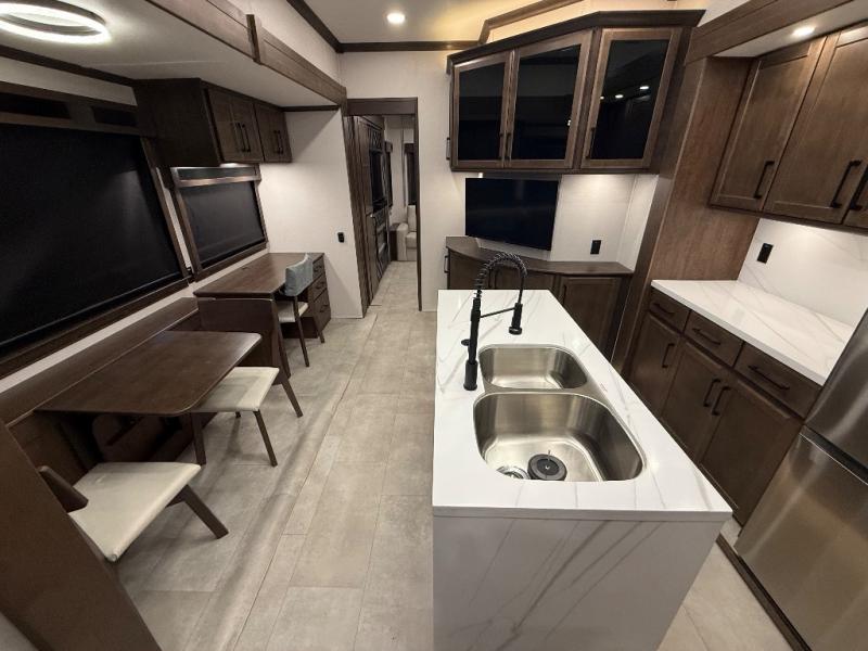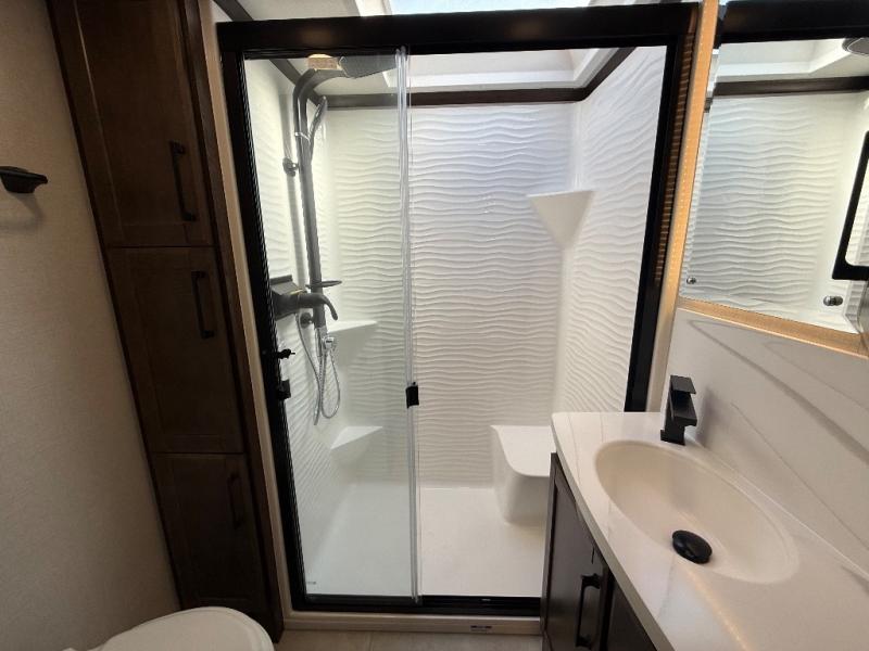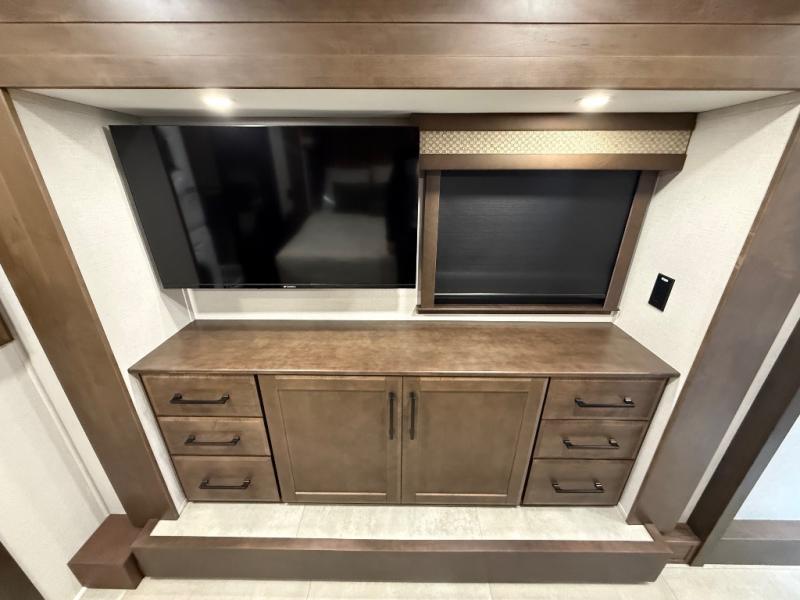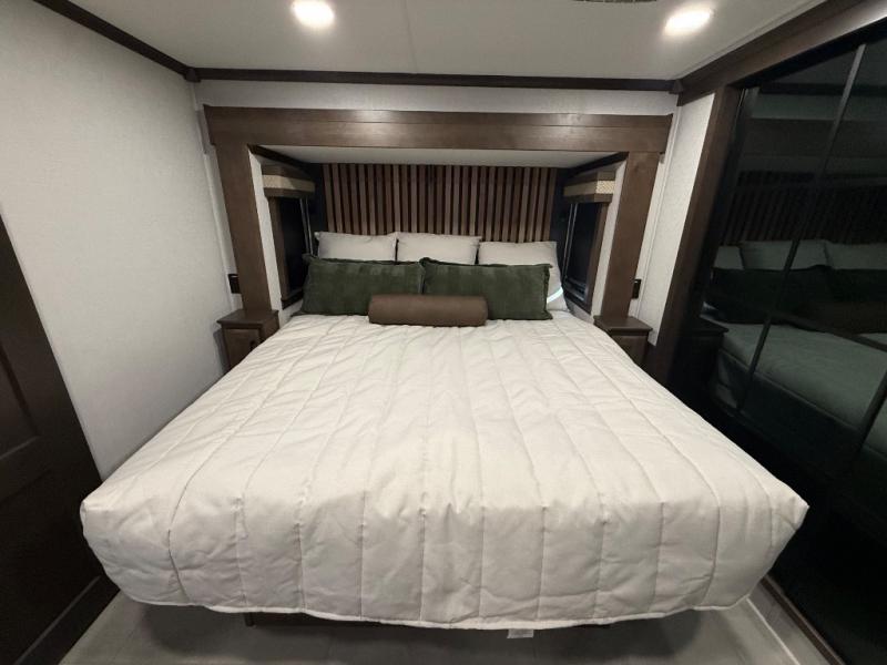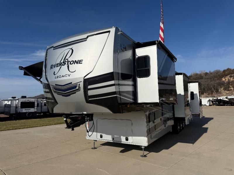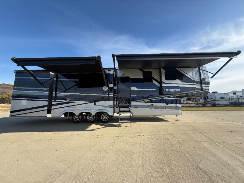 The Forest River RiverStone fifth wheels and toy haulers are luxurious units that have it all! You'll find an automatic six-point hydraulic level-up system to keep your unit in place, and there is preparation for a four-camera observation system. The TravlFi Journey XTR 4G/LTE router and WiFi extender will help you stay connected to the outside world, and you'll never have to overpack again since the Splendid “Astral” stackable washer and dryer will let you clean the small amount of clothes you've brought with you. Another high luxury is the Fischer Paykal dishwasher which will allow you to spend more time enjoying your camp life and less time cleaning up. Each unit is built with a LCI Road Armour suspension system, dual-pane frameless windows, a full docking station, a 200W solar panel, and a BMPro touch control system.