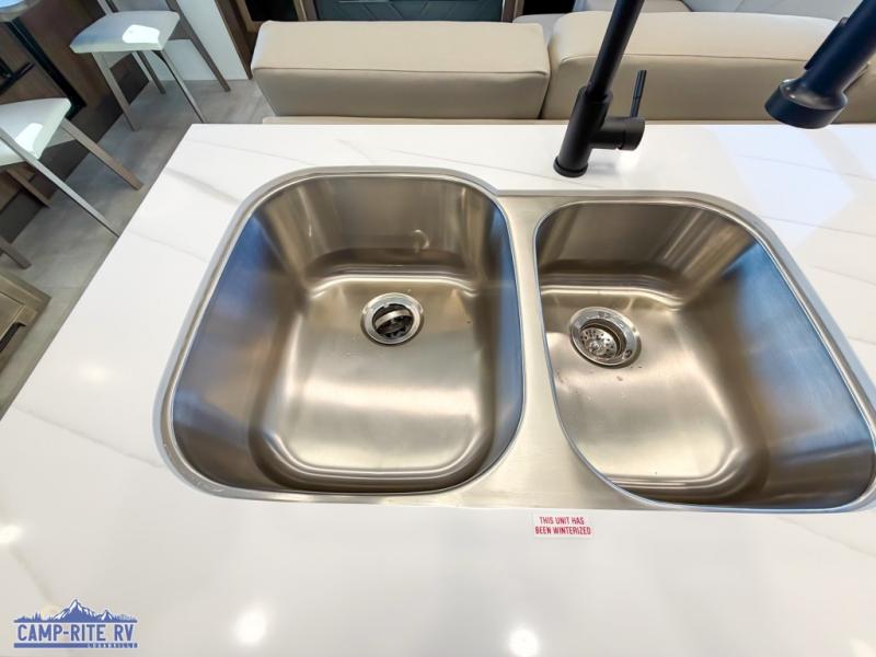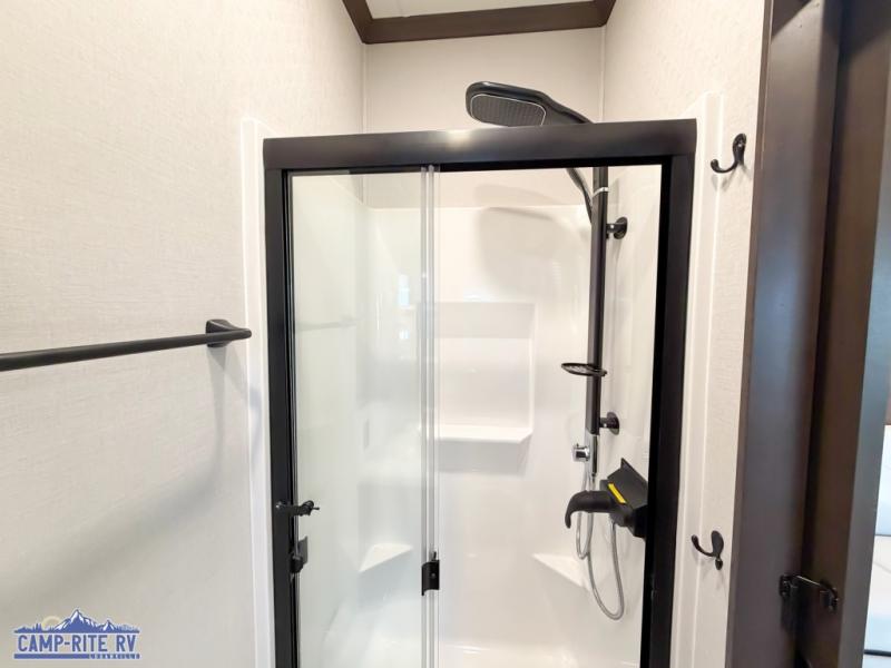 The Forest River RiverStone fifth wheels and toy haulers are luxurious units that have it all! You'll find an automatic six-point hydraulic level-up system to keep your unit in place, and there is preparation for a four-camera observation system. The TravlFi Journey XTR 4G/LTE router and WiFi extender will help you stay connected to the outside world, and you'll never have to overpack again since the Splendid “Astral” stackable washer and dryer will let you clean the small amount of clothes you've brought with you. Another high luxury is the Fischer Paykal dishwasher which will allow you to spend more time enjoying your camp life and less time cleaning up. Each unit is built with an LCI Road Armour suspension system, dual-pane frameless windows, a full docking station, a 200W solar panel, and a BMPro touch control system.