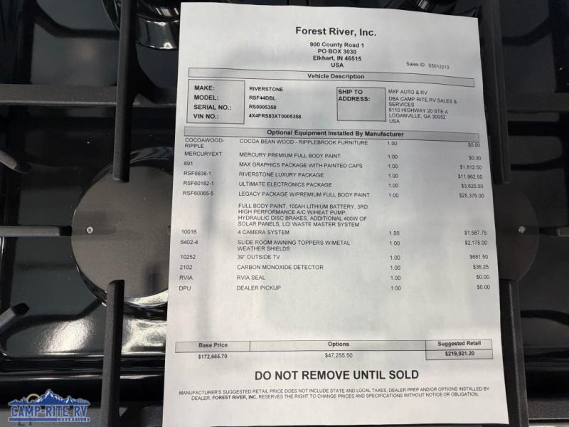 Forest River RiverStone fifth wheel 44DBL highlights: