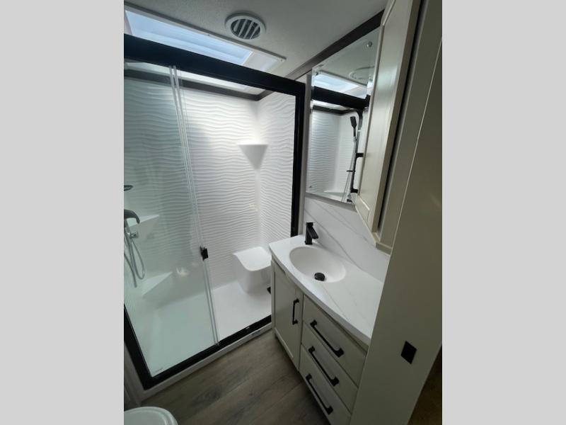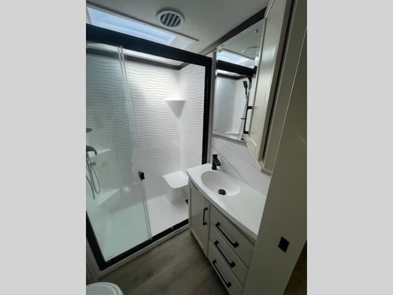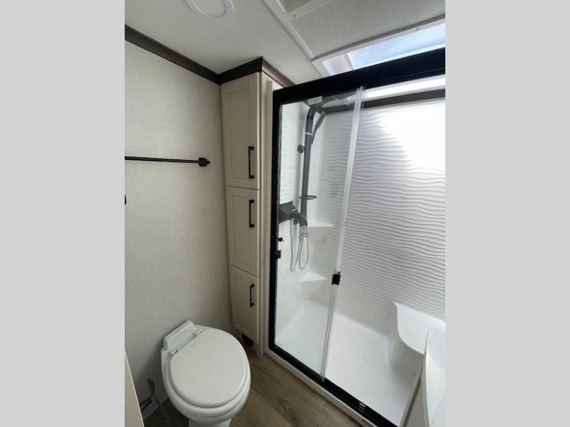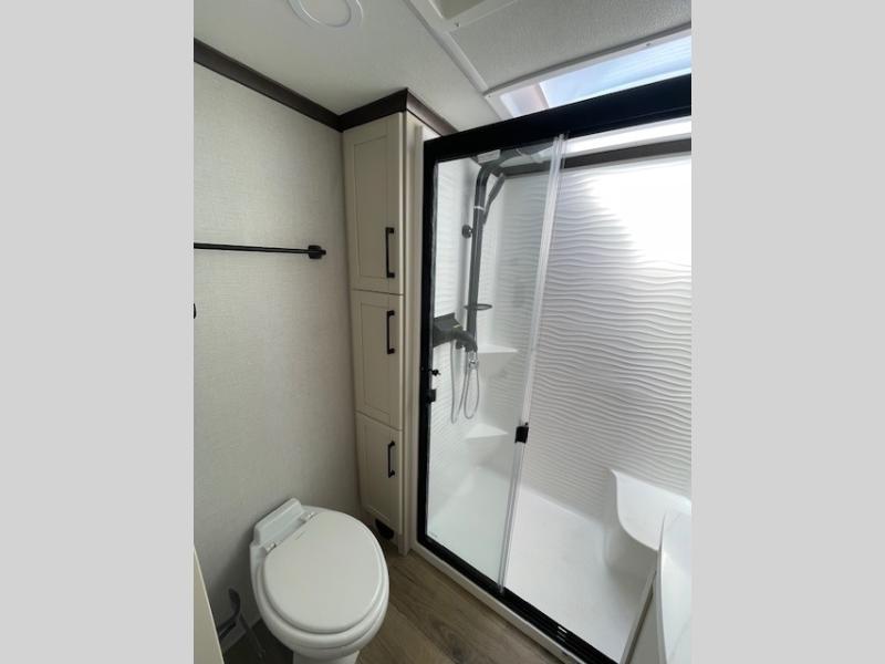 The Forest River RiverStone fifth wheels and toy haulers are luxurious units that have it all! You'll find an automatic six-point hydraulic level-up system to keep your unit in place, and there is preparation for a four-camera observation system. The TravlFi Journey XTR 4G/LTE router and WiFi extender will help you stay connected to the outside world, and you'll never have to overpack again since the Splendid “Astral” stackable washer and dryer will let you clean the small amount of clothes you've brought with you. Another high luxury is the Fischer Paykal dishwasher which will allow you to spend more time enjoying your camp life and less time cleaning up. Each unit is built with an LCI Road Armour suspension system, dual-pane frameless windows, a full docking station, a 200W solar panel, and a BMPro touch control system.