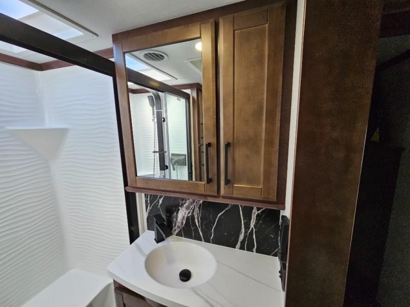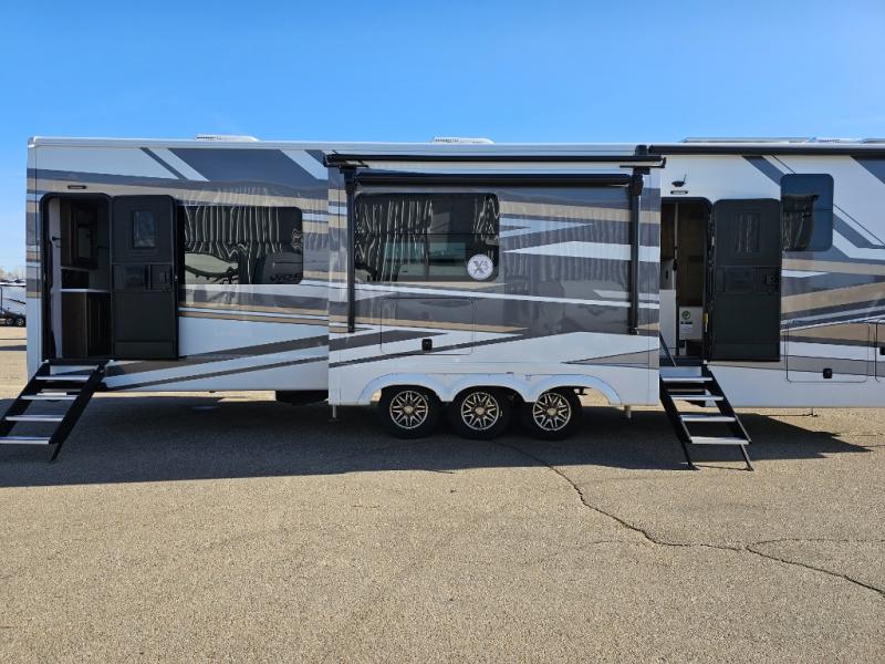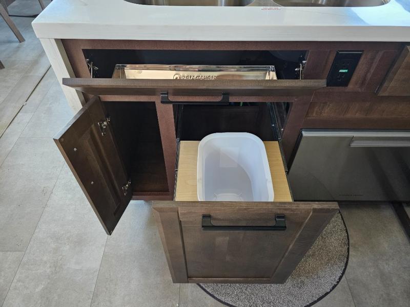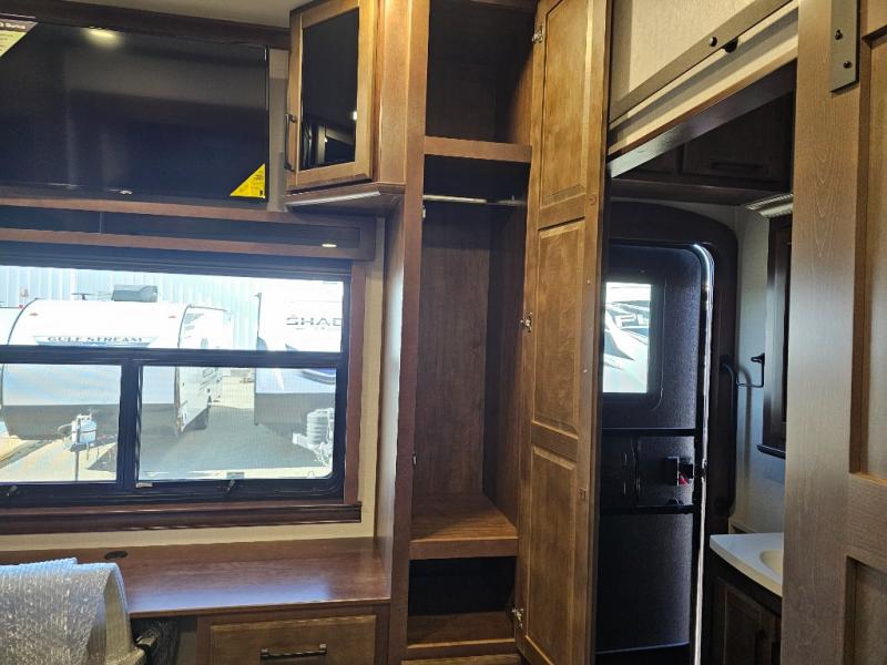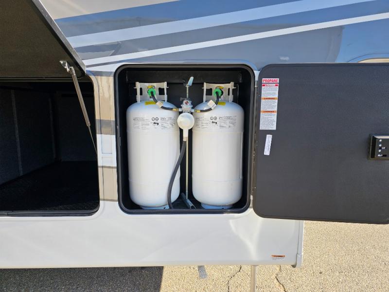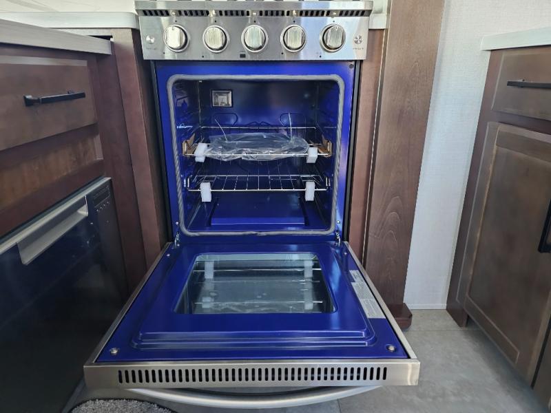 The Forest River RiverStone fifth wheels and toy haulers are luxurious units that have it all! You'll find an automatic six-point hydraulic level-up system to keep your unit in place, and there is preparation for a four-camera observation system. The TravlFi Journey XTR 4G/LTE router and WiFi extender will help you stay connected to the outside world, and you'll never have to overpack again since the Splendid “Astral” stackable washer and dryer will let you clean the small amount of clothes you've brought with you. Another high luxury is the Fischer Paykal dishwasher which will allow you to spend more time enjoying your camp life and less time cleaning up. Each unit is built with an LCI Road Armour suspension system, dual-pane frameless windows, a full docking station, a 200W solar panel, and a BMPro touch control system.