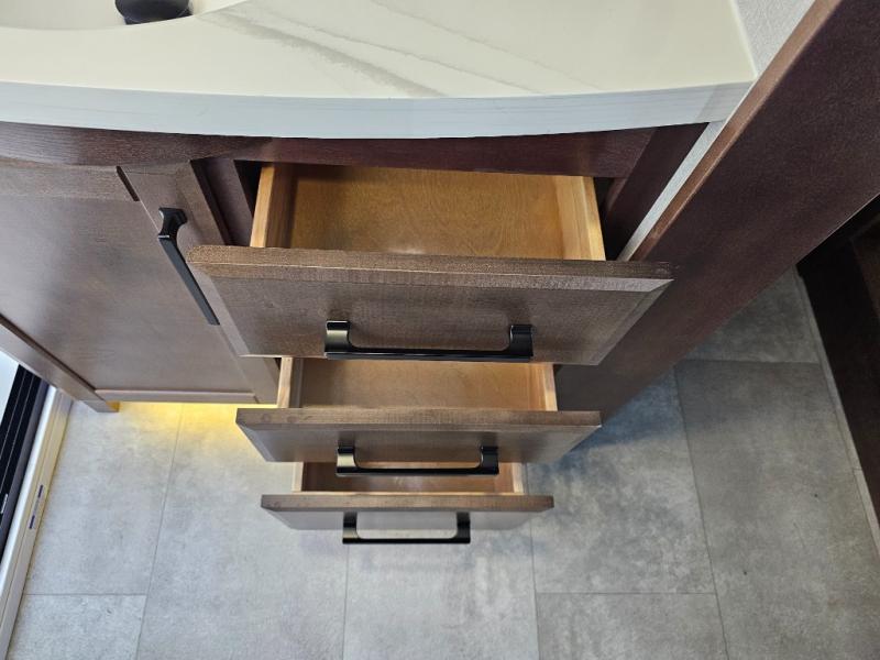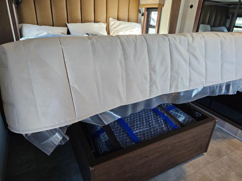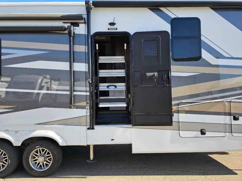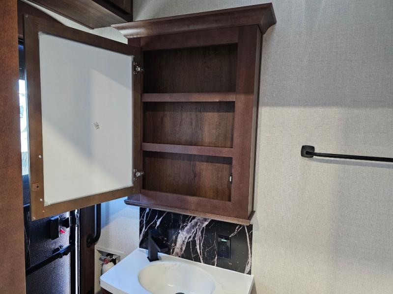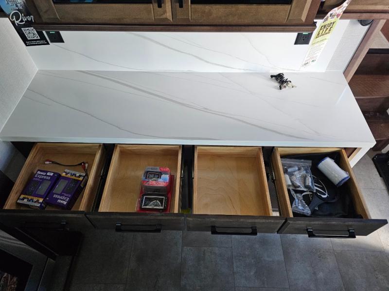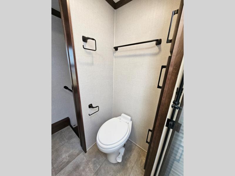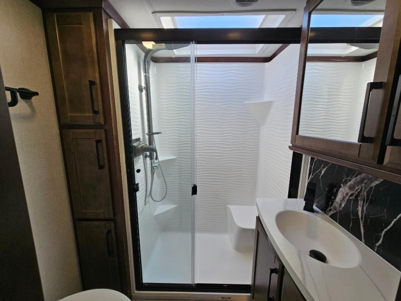 The Forest River RiverStone fifth wheels and toy haulers are luxurious units that have it all! You'll find an automatic six-point hydraulic level-up system to keep your unit in place, and there is preparation for a four-camera observation system. The TravlFi Journey XTR 4G/LTE router and WiFi extender will help you stay connected to the outside world, and you'll never have to overpack again since the Splendid “Astral” stackable washer and dryer will let you clean the small amount of clothes you've brought with you. Another high luxury is the Fischer Paykal dishwasher which will allow you to spend more time enjoying your camp life and less time cleaning up. Each unit is built with an LCI Road Armour suspension system, dual-pane frameless windows, a full docking station, a 200W solar panel, and a BMPro touch control system.