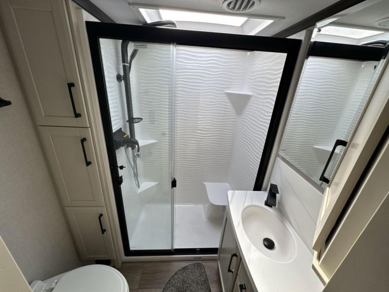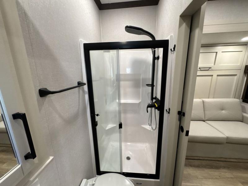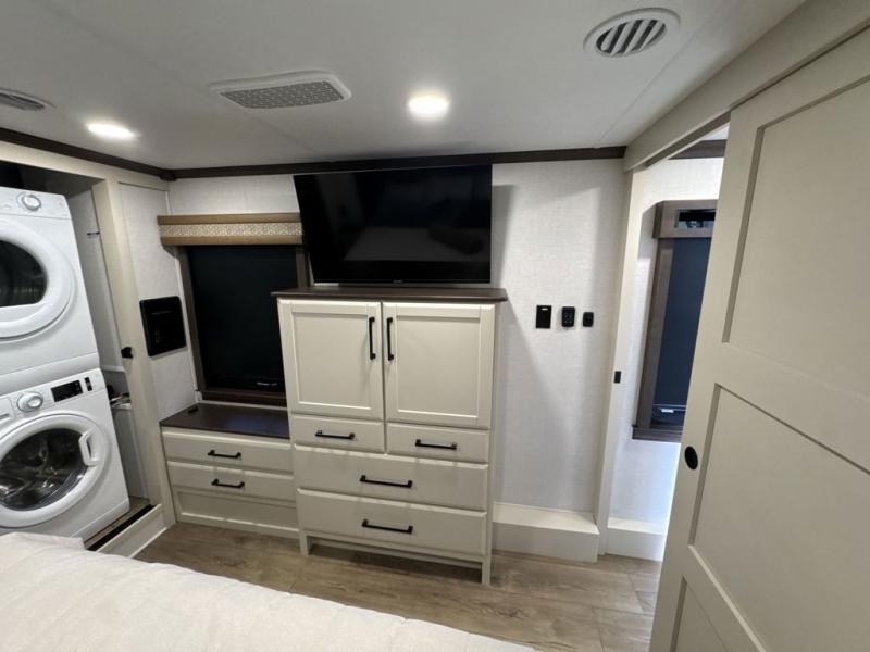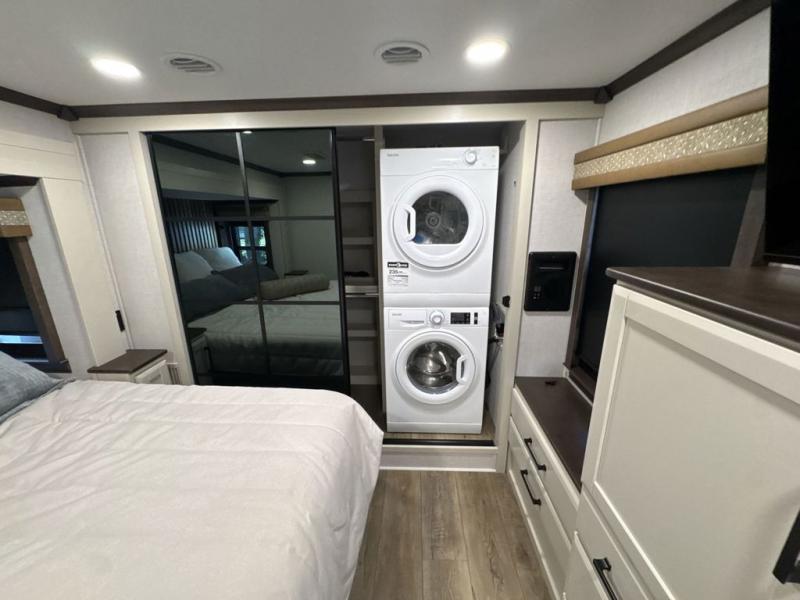 The Forest River RiverStone fifth wheels and toy haulers are luxurious units that have it all! You'll find an automatic six-point hydraulic level-up system to keep your unit in place, and there is preparation for a four-camera observation system. The TravlFi Journey XTR 4G/LTE router and WiFi extender will help you stay connected to the outside world, and you'll never have to overpack again since the Splendid “Astral” stackable washer and dryer will let you clean the small amount of clothes you've brought with you. Another high luxury is the Fischer Paykal dishwasher which will allow you to spend more time enjoying your camp life and less time cleaning up. Each unit is built with an LCI Road Armour suspension system, dual-pane frameless windows, a full docking station, a 200W solar panel, and a BMPro touch control system.