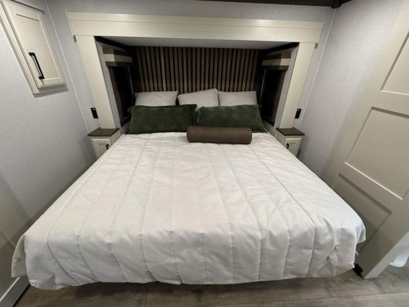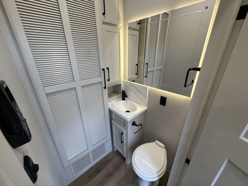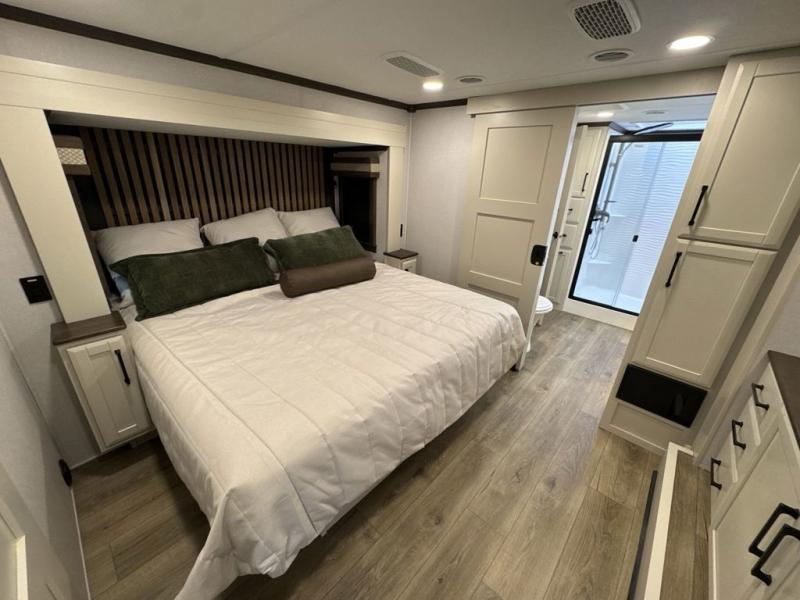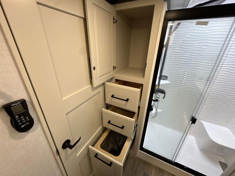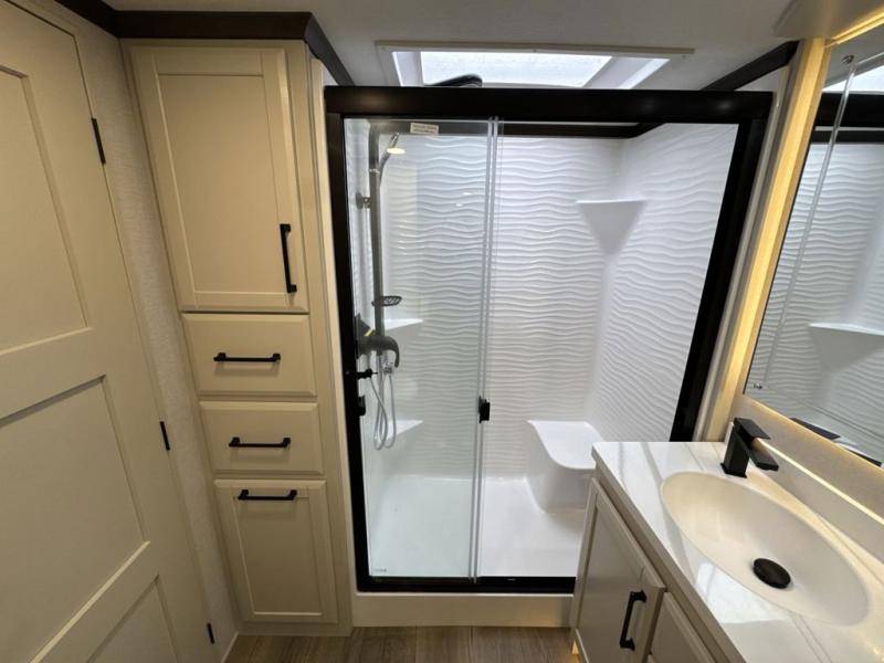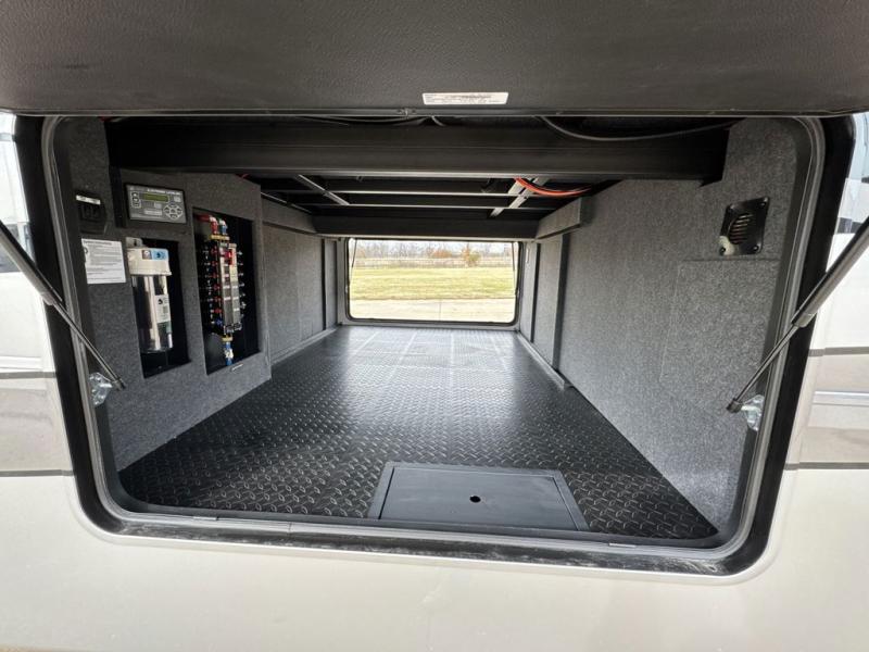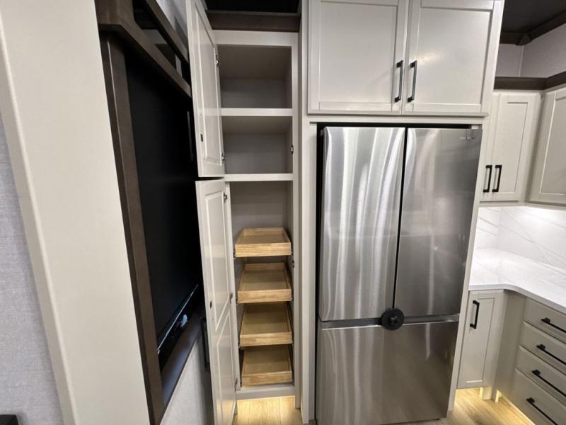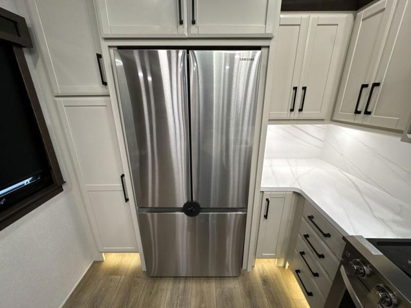 The Forest River RiverStone fifth wheels and toy haulers are luxurious units that have it all! You'll find an automatic six-point hydraulic level-up system to keep your unit in place, and there is preparation for a four-camera observation system. The TravlFi Journey XTR 4G/LTE router and WiFi extender will help you stay connected to the outside world, and you'll never have to overpack again since the Splendid “Astral” stackable washer and dryer will let you clean the small amount of clothes you've brought with you. Another high luxury is the Fischer Paykal dishwasher which will allow you to spend more time enjoying your camp life and less time cleaning up. Each unit is built with an LCI Road Armour suspension system, dual-pane frameless windows, a full docking station, a 200W solar panel, and a BMPro touch control system.