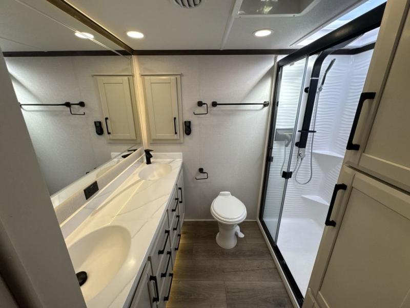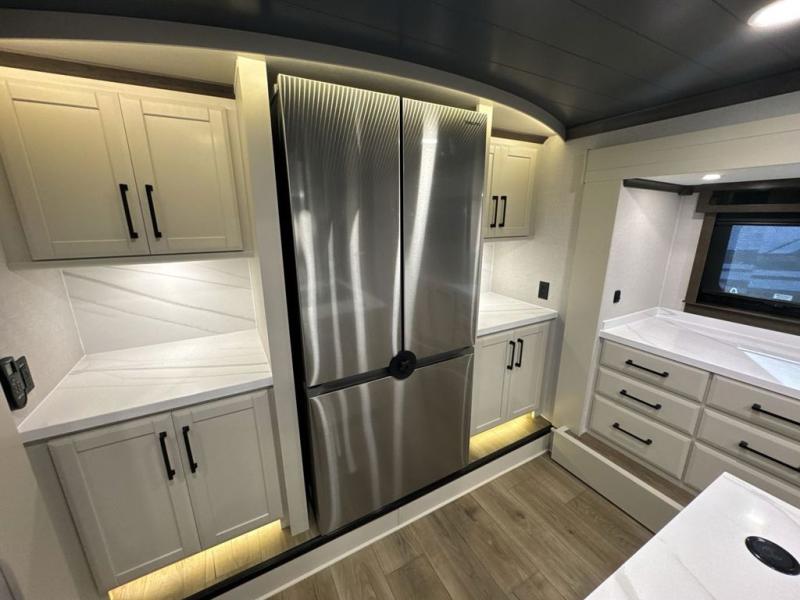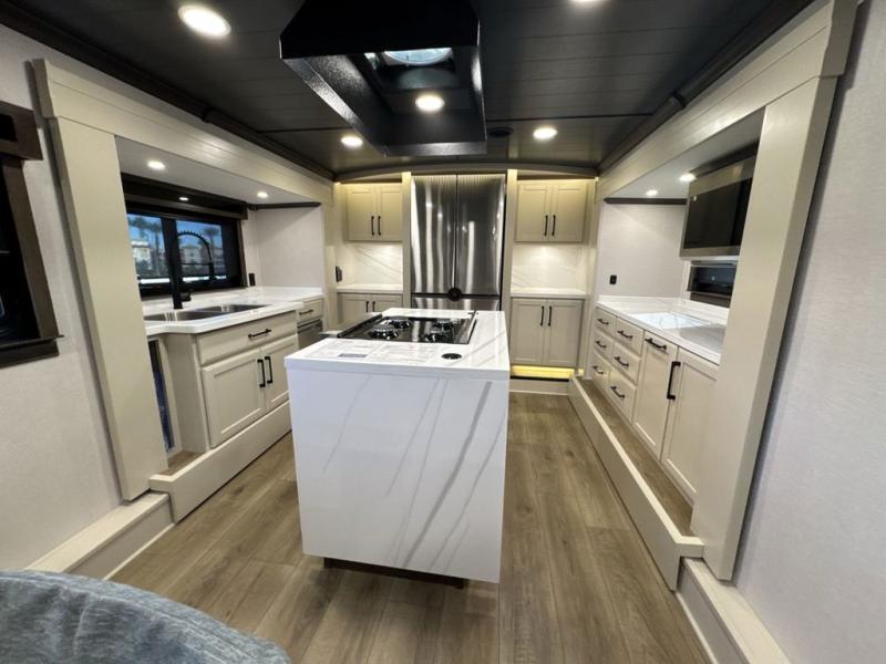 The Forest River RiverStone fifth wheels and toy haulers are luxurious units that have it all! You'll find an automatic six-point hydraulic level-up system to keep your unit in place, and there is preparation for a four-camera observation system. The TravlFi Journey XTR 4G/LTE router and WiFi extender will help you stay connected to the outside world, and you'll never have to overpack again since the Splendid “Astral” stackable washer and dryer will let you clean the small amount of clothes you've brought with you. Another high luxury is the Fischer Paykal dishwasher which will allow you to spend more time enjoying your camp life and less time cleaning up. Each unit is built with a LCI Road Armour suspension system, dual-pane frameless windows, a full docking station, a 200W solar panel, and a BMPro touch control system.