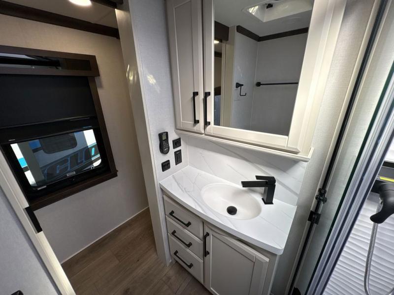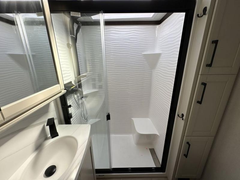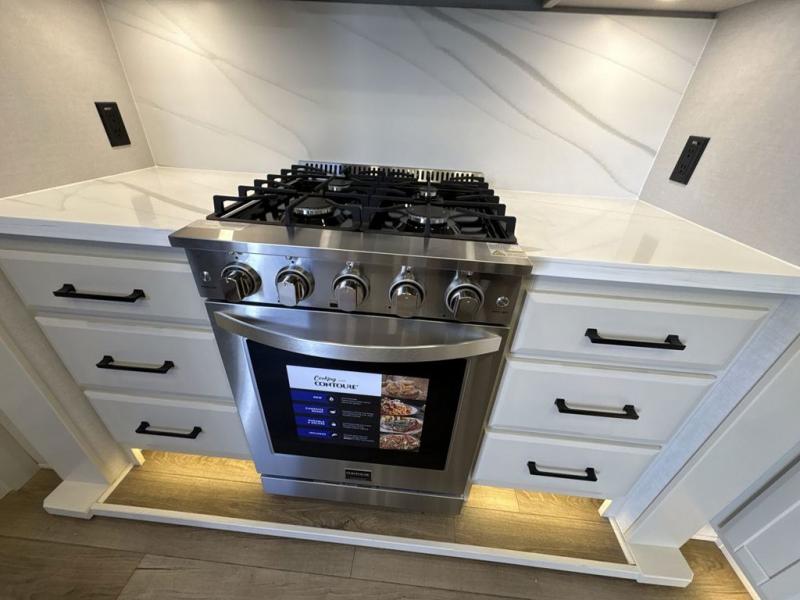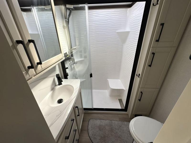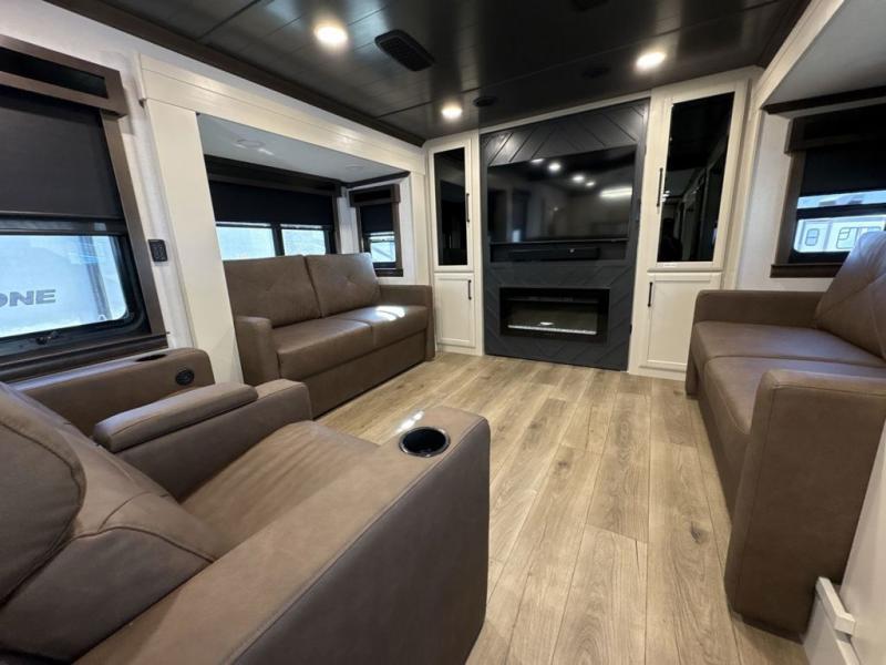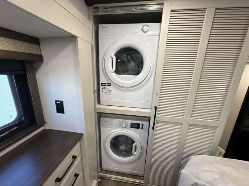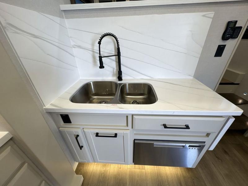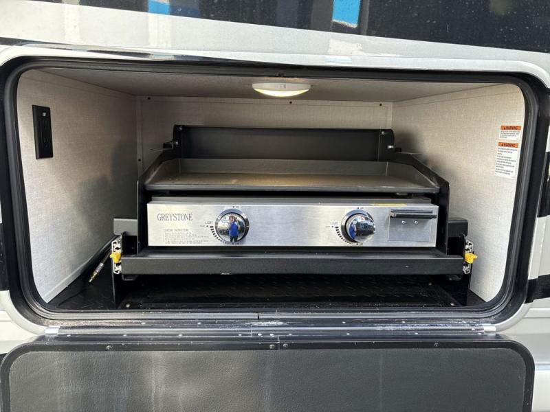 The Forest River RiverStone fifth wheels and toy haulers are luxurious units that have it all! You'll find an automatic six-point hydraulic level-up system to keep your unit in place, and there is preparation for a four-camera observation system. The TravlFi Journey XTR 4G/LTE router and WiFi extender will help you stay connected to the outside world, and you'll never have to overpack again since the Splendid “Astral” stackable washer and dryer will let you clean the small amount of clothes you've brought with you. Another high luxury is the Fischer Paykal dishwasher which will allow you to spend more time enjoying your camp life and less time cleaning up. Each unit is built with a LCI Road Armour suspension system, dual-pane frameless windows, a full docking station, a 200W solar panel, and a BMPro touch control system.